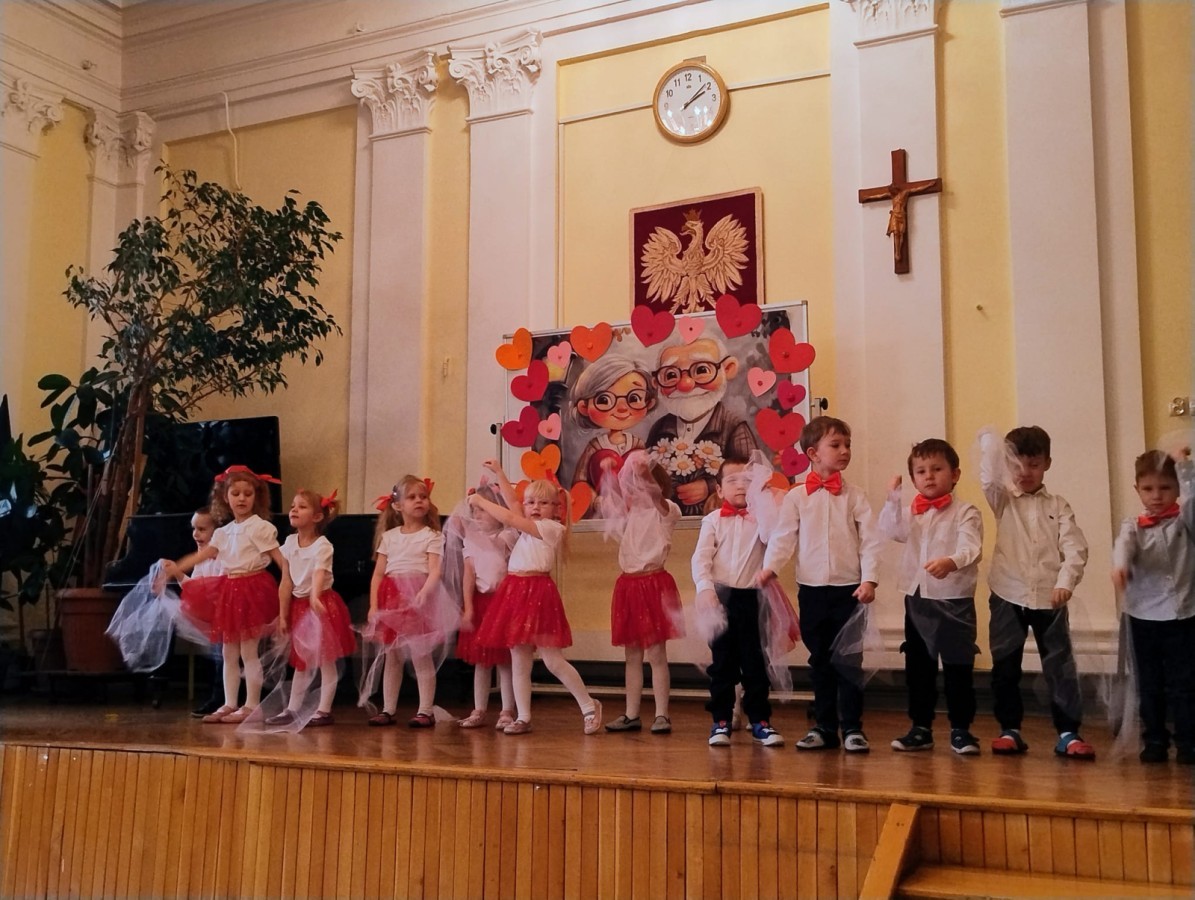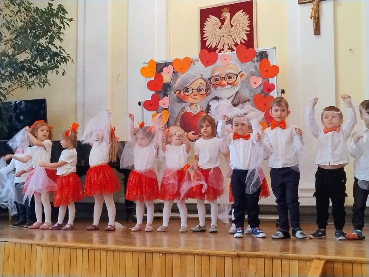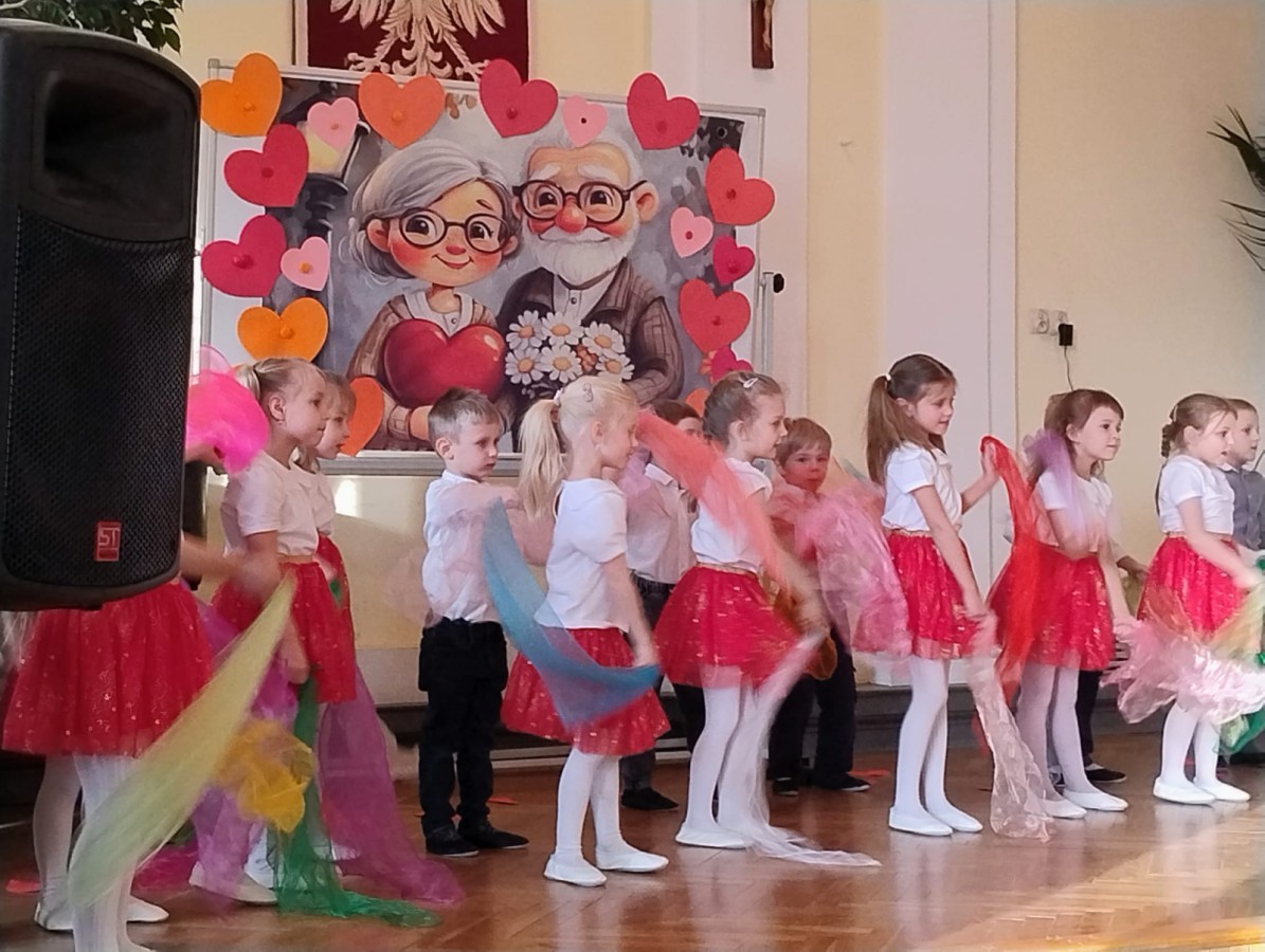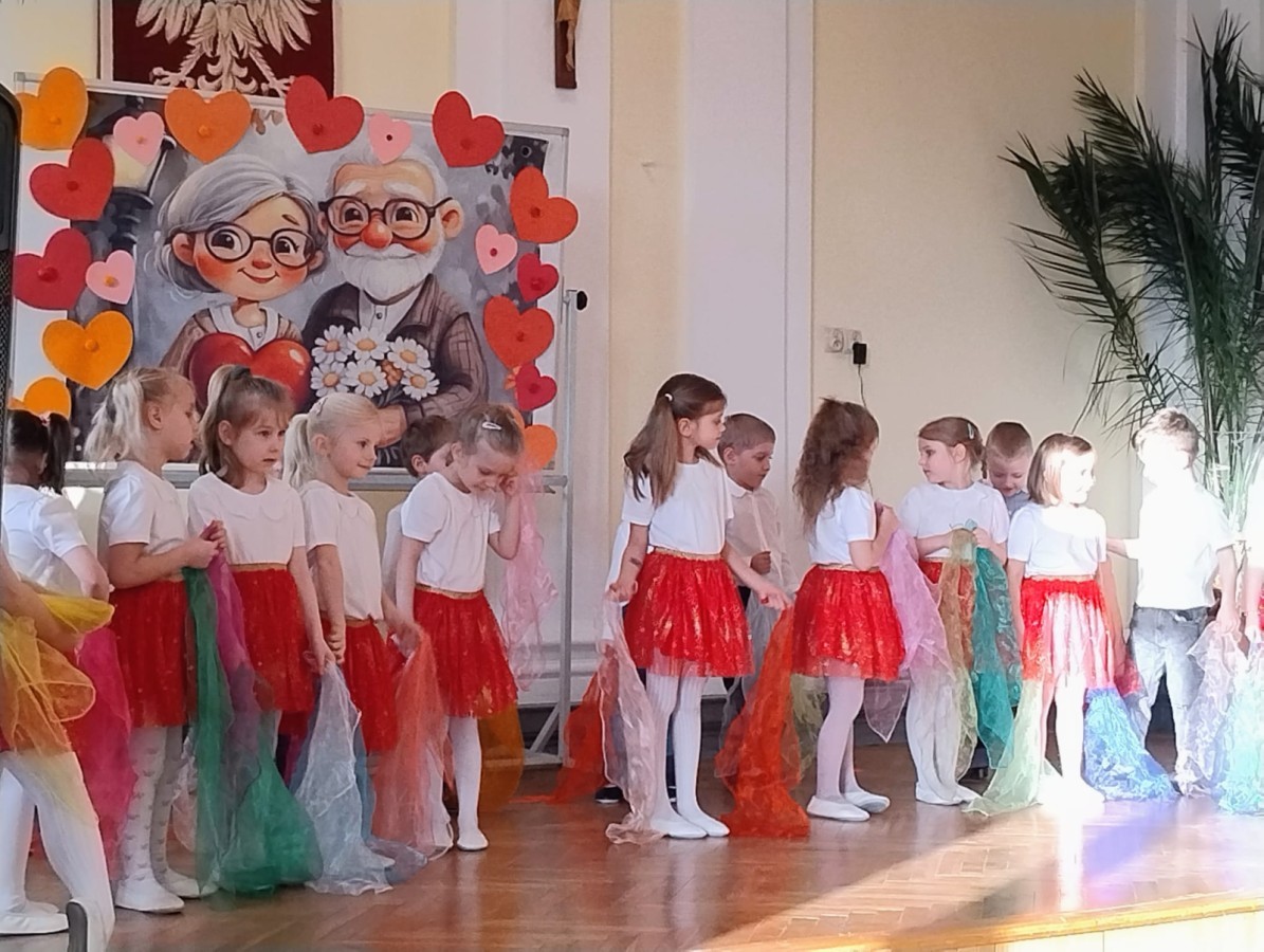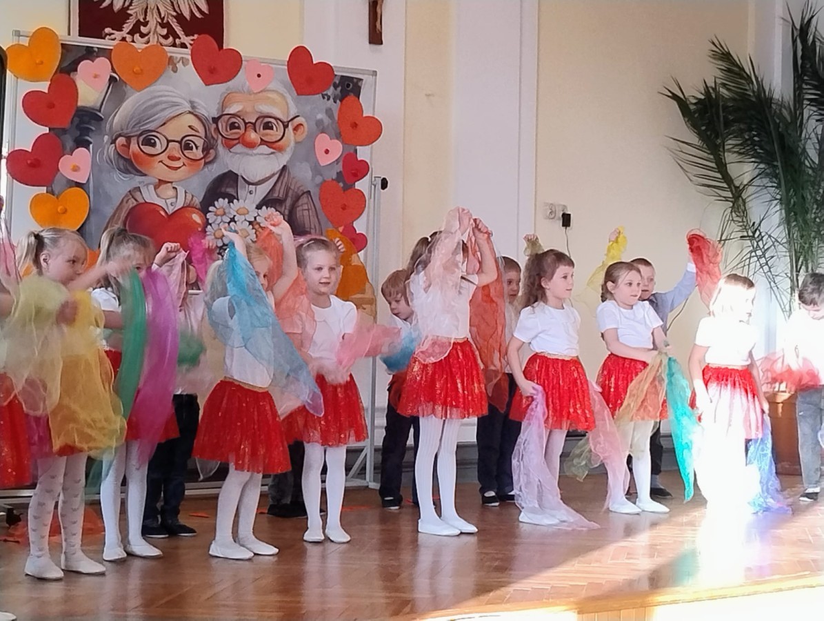 Z tej okazji dzieci przygotowały specjalny program artystyczny. Były wierszyki, piosenki, tańce oraz krótkie scenki, które mali artyści zaprezentowali z ogromnym zaangażowaniem. Nie zabrakło również własnoręcznie wykonanych laurek i drobnych upominków – symboli miłości i wdzięczności dla ukochanych dziadków.