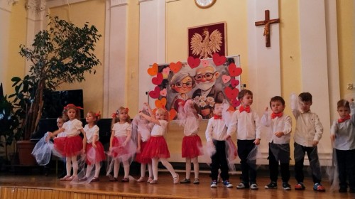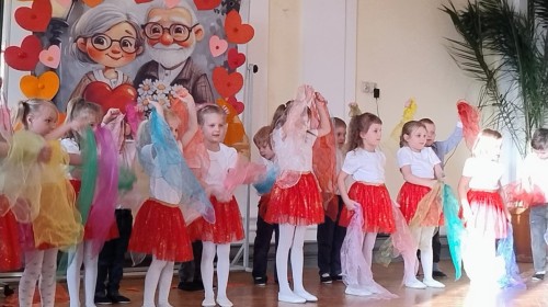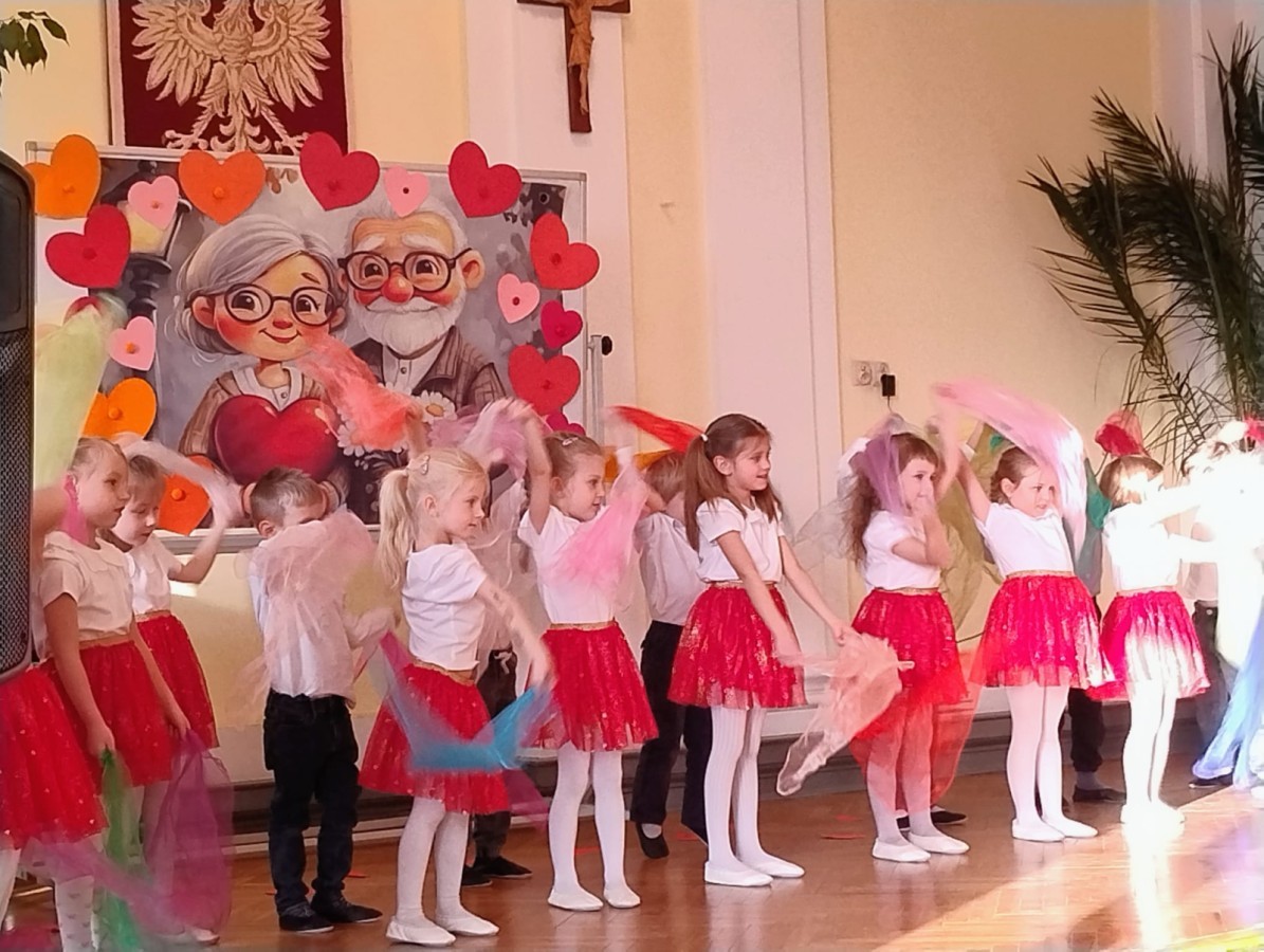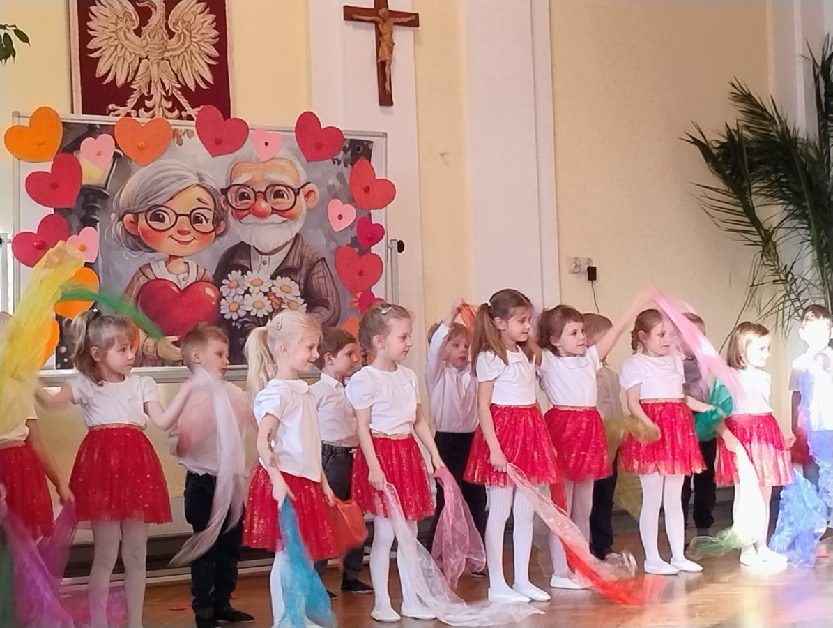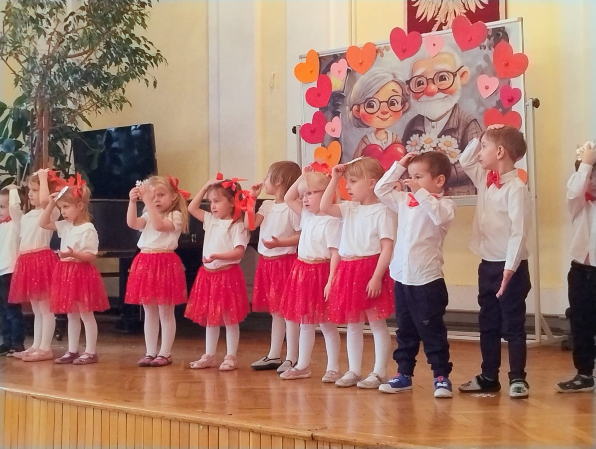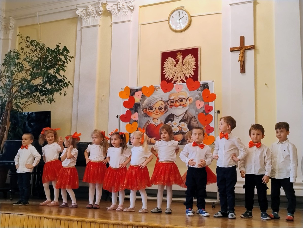 Z tej okazji dzieci przygotowały specjalny program artystyczny. Były wierszyki, piosenki, tańce oraz krótkie scenki, które mali artyści zaprezentowali z ogromnym zaangażowaniem. Nie zabrakło również własnoręcznie wykonanych laurek i drobnych upominków – symboli miłości i wdzięczności dla ukochanych dziadków.
