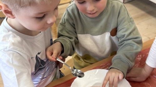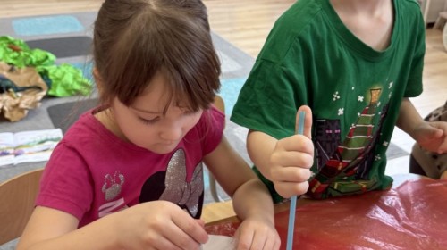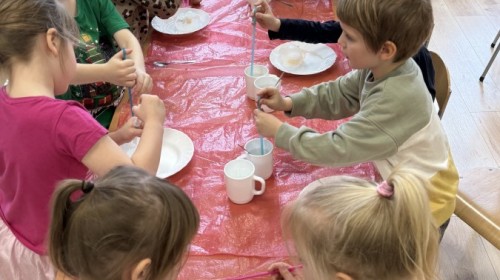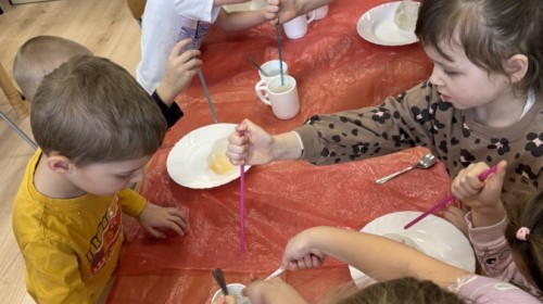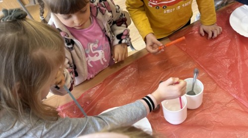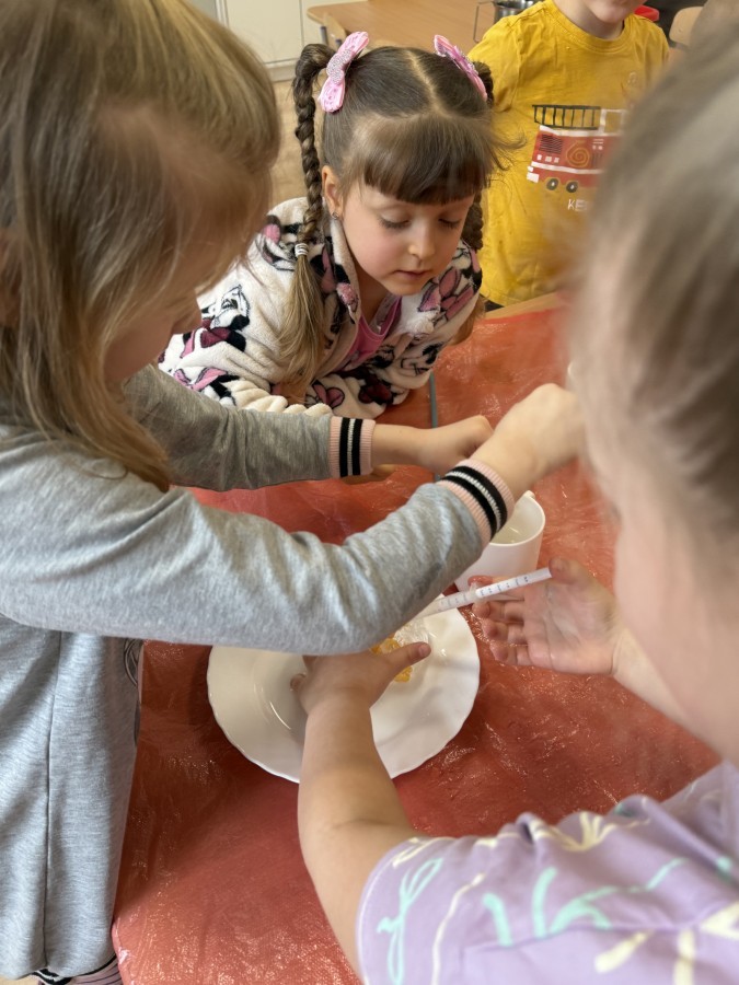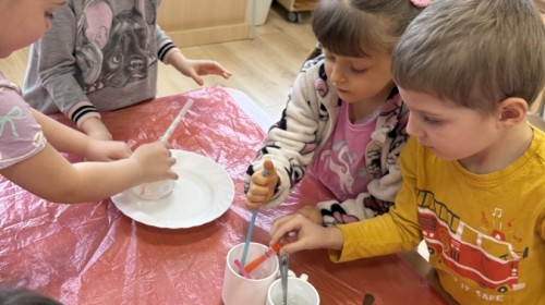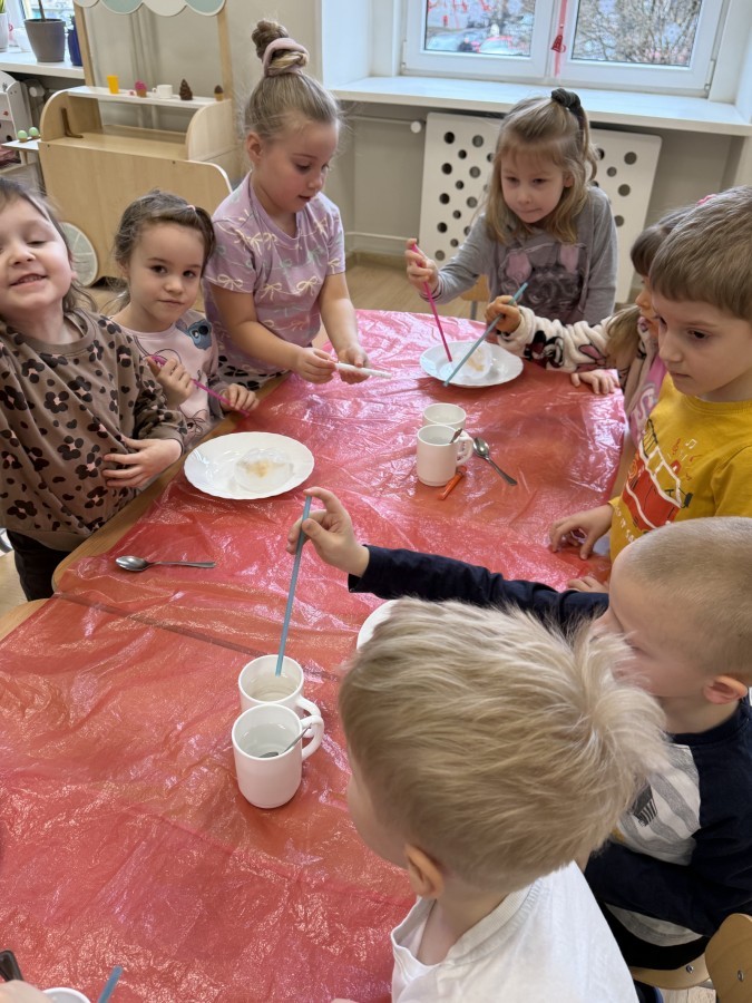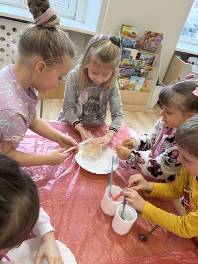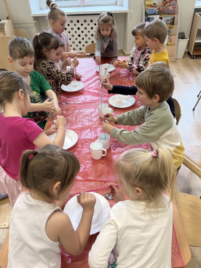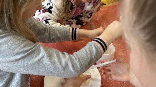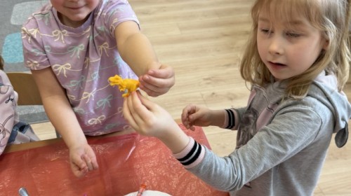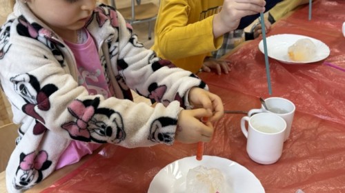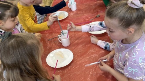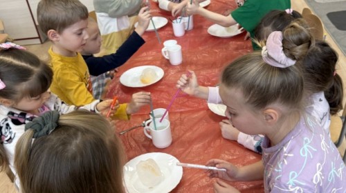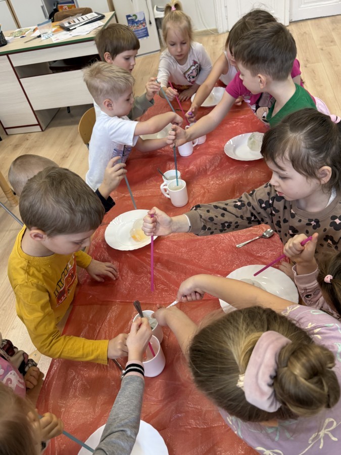 Najwięcej emocji wzbudziło doświadczenie z lodowymi jajami dinozaurów. W zamrożonych bryłach lodu ukryte były małe figurki, które dzieci próbowały uwolnić. Do dyspozycji miały zimną wodę, letnią wodę, wodę z solą oraz samą sól. Dzięki temu mogły sprawdzić, co najszybciej rozpuszcza lód.
