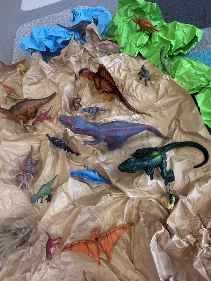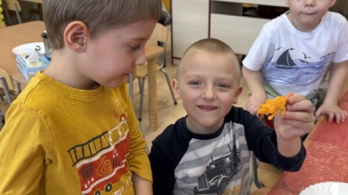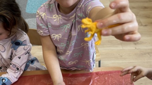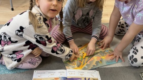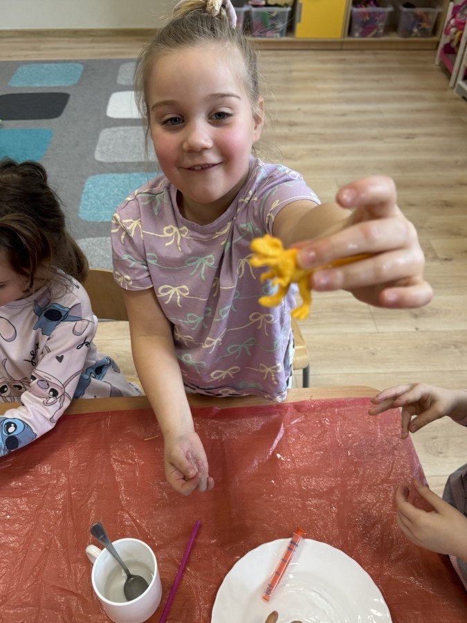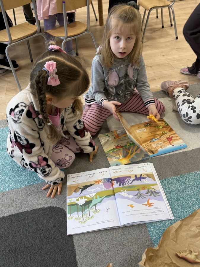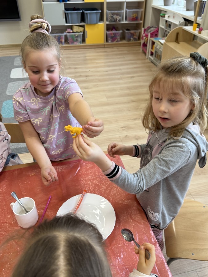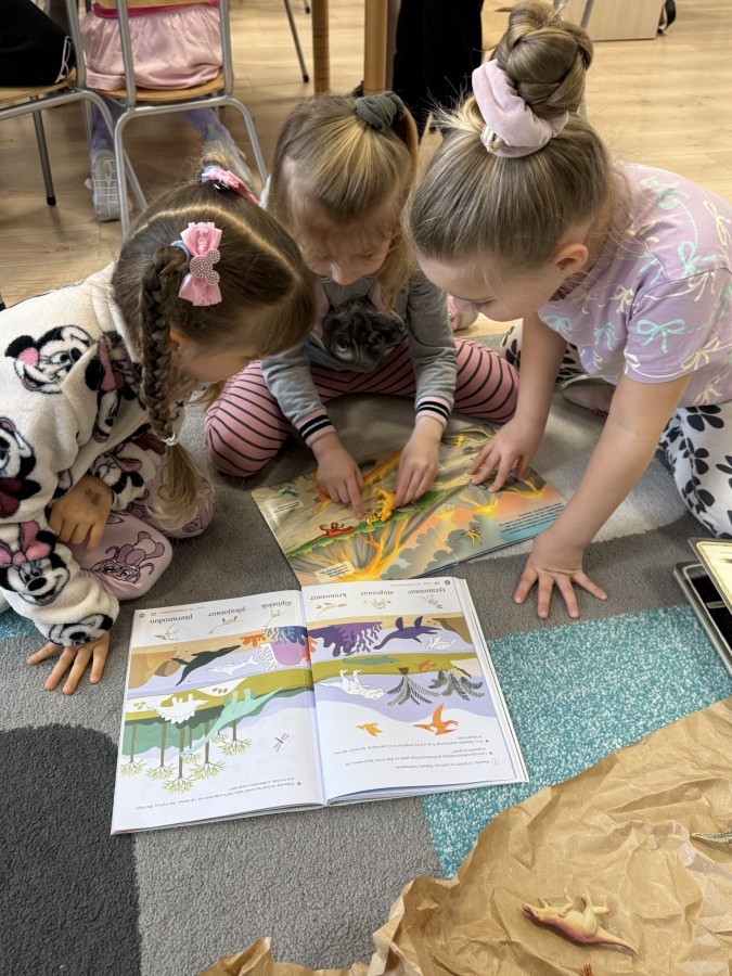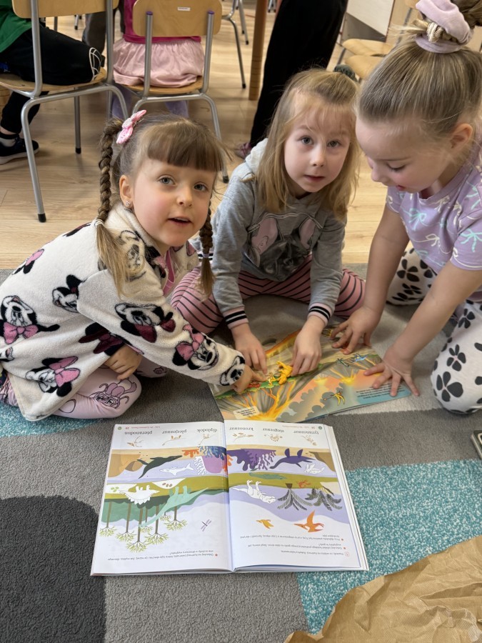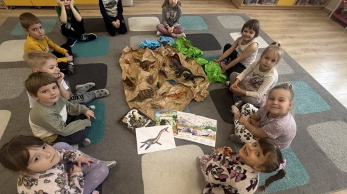 W naszej grupie Średniaków obchodziliśmy wyjątkowy Dzień Dinozaura. Była to doskonała okazja, aby przenieść się do odległych czasów, gdy po Ziemi chodziły ogromne prehistoryczne gady. Podczas zajęć dzieci poznały krótką historię dinozaurów – dowiedziały się, kiedy żyły i jak wyglądał świat sprzed milionów lat. Z dużym zainteresowaniem oglądały także książki o dinozaurach oraz obejrzały film edukacyjny przybliżający życie tych niezwykłych zwierząt.