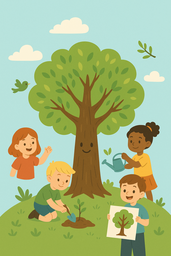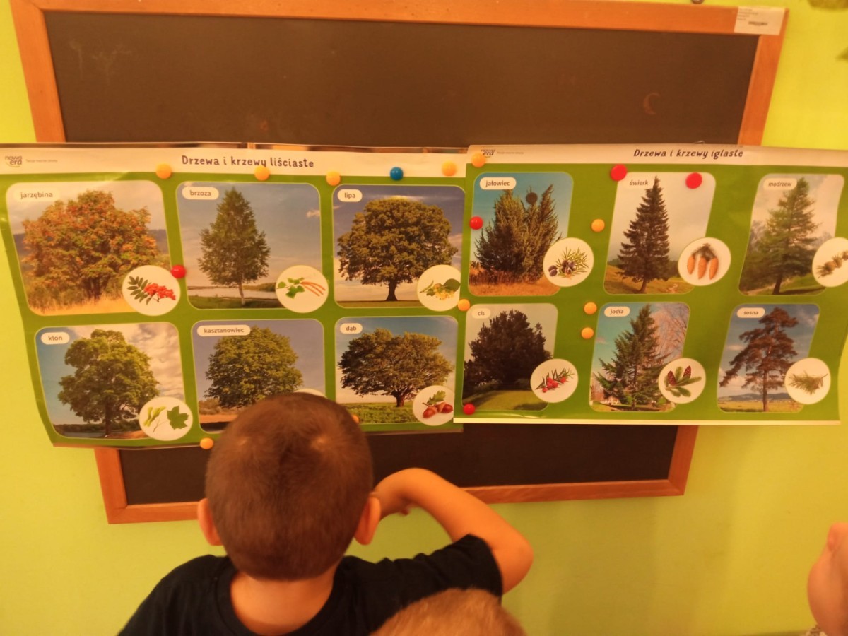 Dzieci uczestniczyły w ciekawych zajęciach edukacyjnych, podczas których dowiedziały się, dlaczego warto sadzić drzewa, jak o nie dbać i w jaki sposób pomagają nam one oddychać czystym powietrzem. Przedszkolaki rozwiązywały zagadki przyrodnicze, słuchały opowiadań o lesie, a także wykonały piękne prace plastyczne przedstawiające drzewa w różnych porach roku.