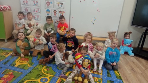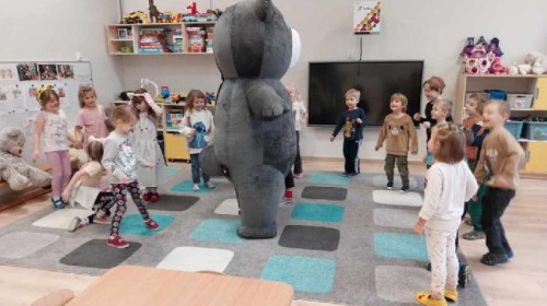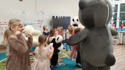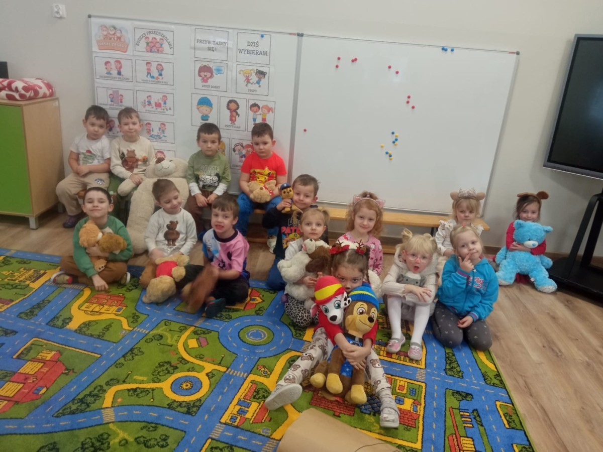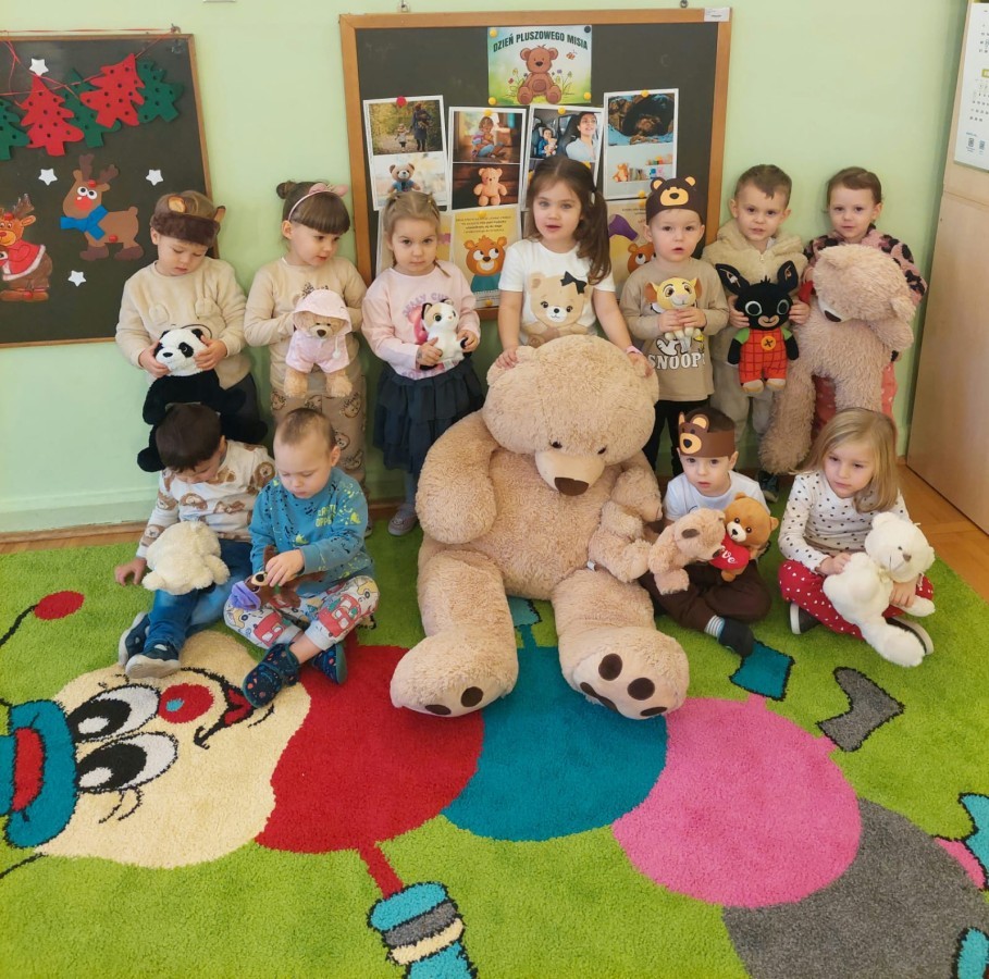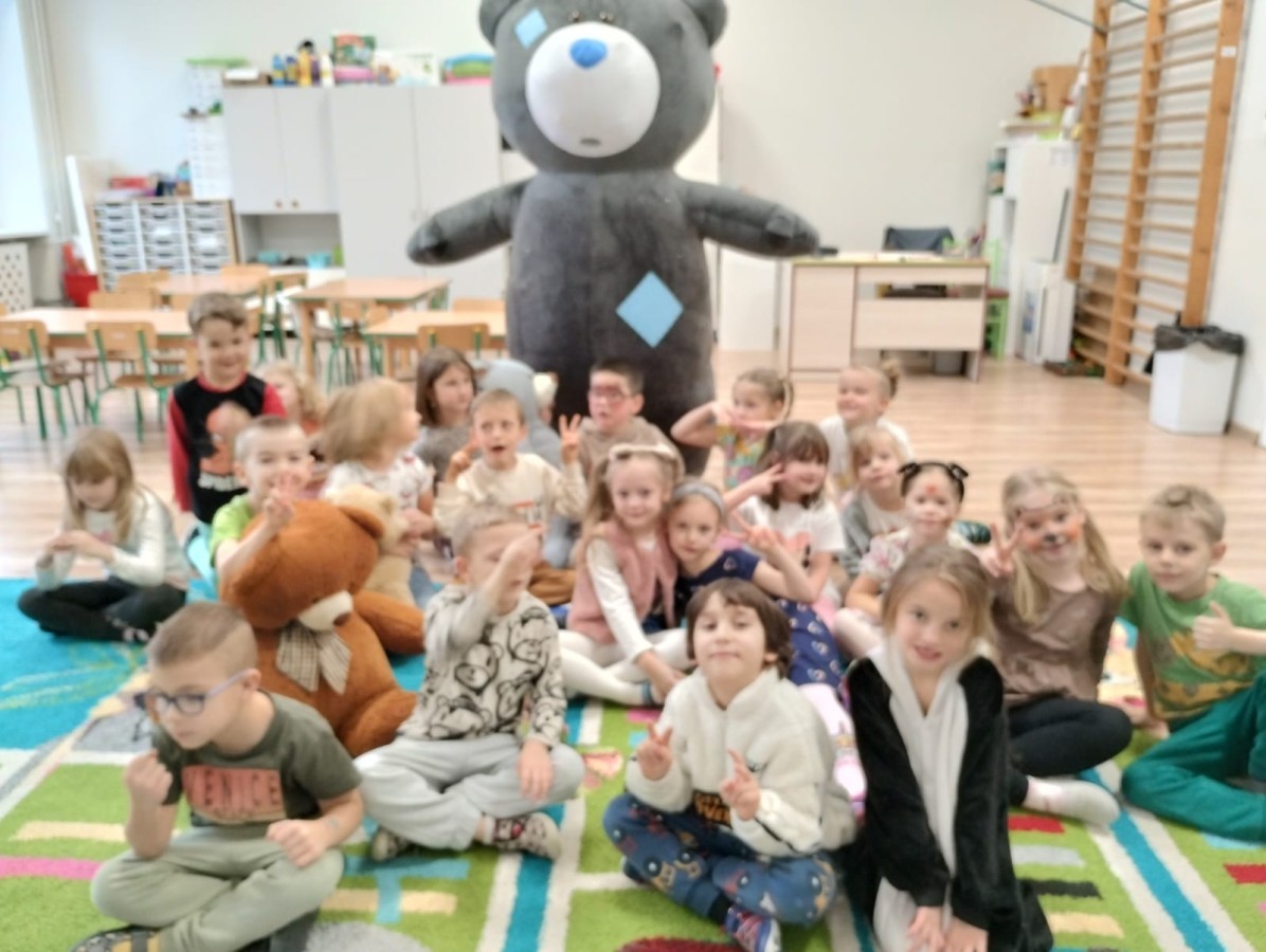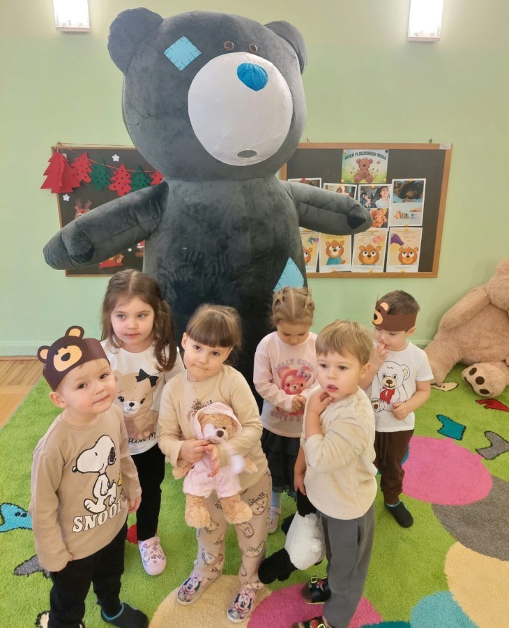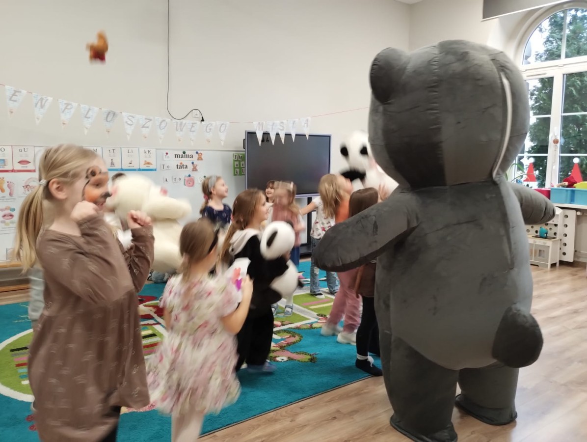 W naszym przedszkolu obchodziliśmy Dzień Pluszowego Misia, który dostarczył dzieciom wielu pozytywnych emocji. Przedszkolaki przyniosły swoje ulubione pluszowe misie i wspólnie uczestniczyły w różnych aktywnościach przygotowanych na tę okazję. Na dzieci czekały zabawy, gry i tańce, podczas których pluszowe misie stały się najlepszymi towarzyszami każdego zadania. Wspólna misiowa zabawa sprzyjała integracji, rozwijała kreatywność i sprawiała dzieciom ogromną radość. Dużym wydarzeniem dnia była wizyta Wielkiego Misia, który pojawił się, by przywitać dzieci, potańczyć z nimi i dodać wyjątkowego uroku całej uroczystości. Dodatkową atrakcją była misiowa fotobudka, w której każdy mógł wykonać pamiątkowe zdjęcie.