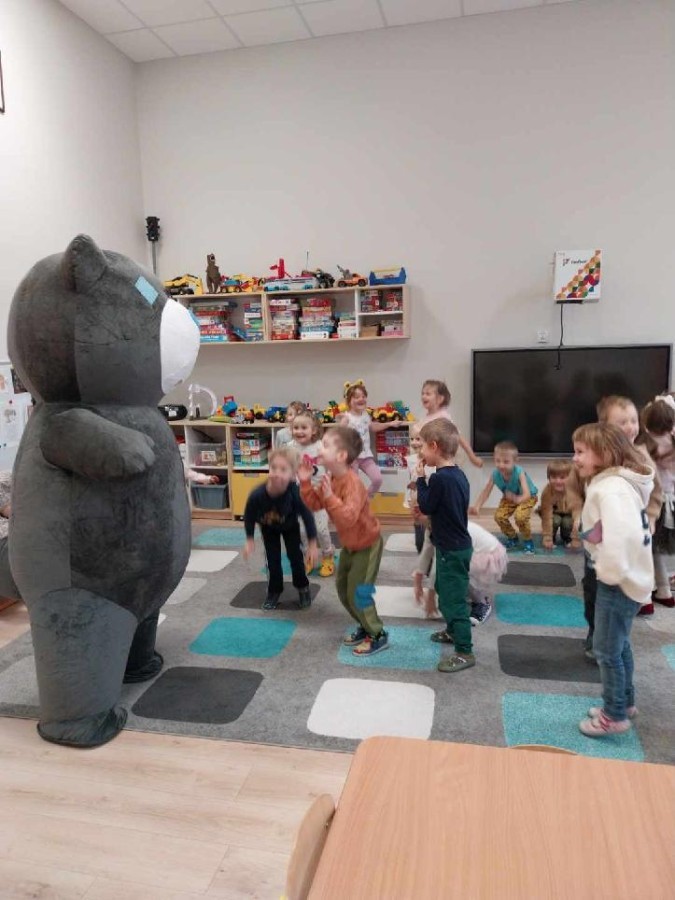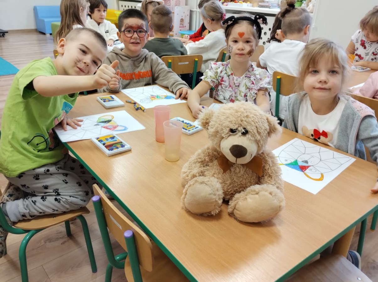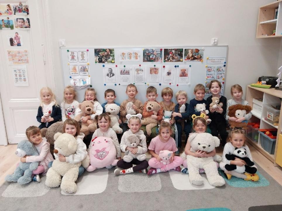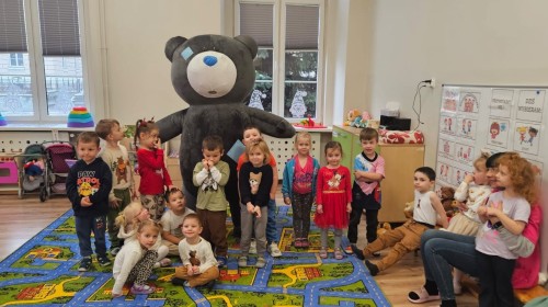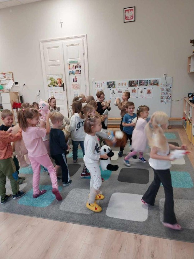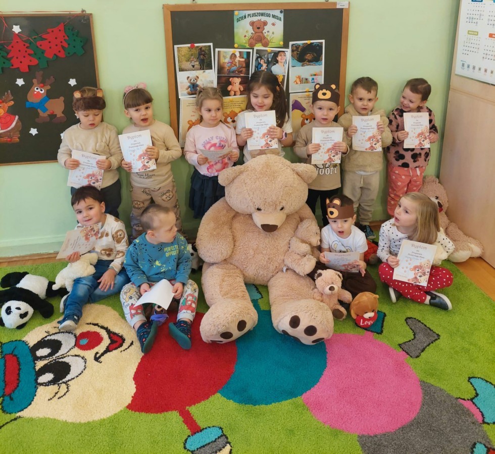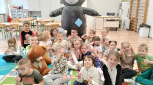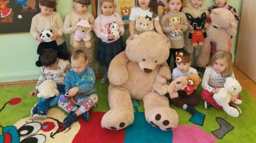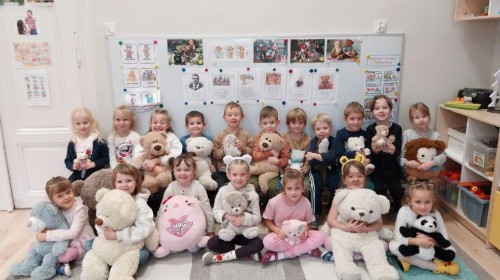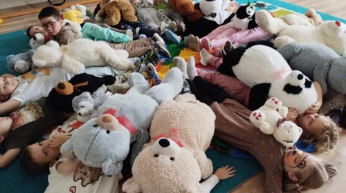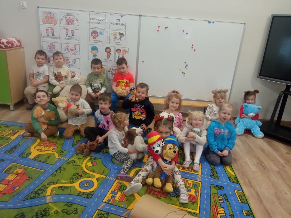 W naszym przedszkolu obchodziliśmy Dzień Pluszowego Misia, który dostarczył dzieciom wielu pozytywnych emocji. Przedszkolaki przyniosły swoje ulubione pluszowe misie i wspólnie uczestniczyły w różnych aktywnościach przygotowanych na tę okazję. Na dzieci czekały zabawy, gry i tańce, podczas których pluszowe misie stały się najlepszymi towarzyszami każdego zadania. Wspólna misiowa zabawa sprzyjała integracji, rozwijała kreatywność i sprawiała dzieciom ogromną radość. Dużym wydarzeniem dnia była wizyta Wielkiego Misia, który pojawił się, by przywitać dzieci, potańczyć z nimi i dodać wyjątkowego uroku całej uroczystości. Dodatkową atrakcją była misiowa fotobudka, w której każdy mógł wykonać pamiątkowe zdjęcie.