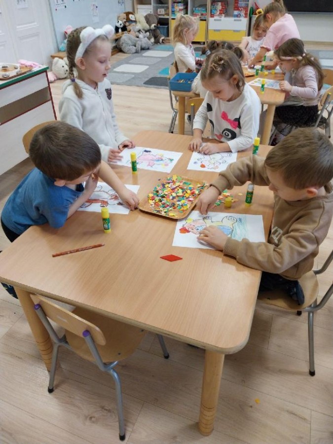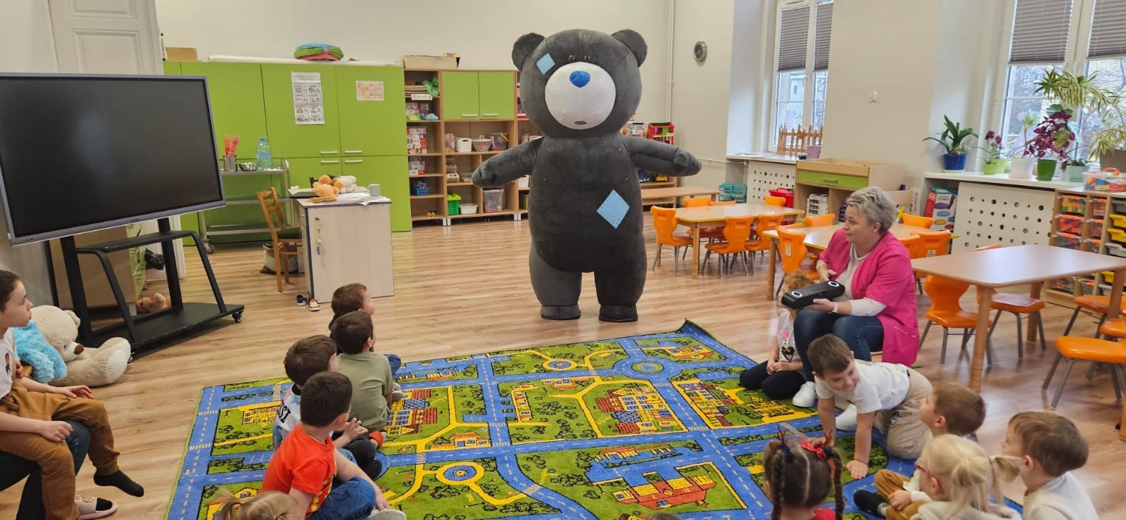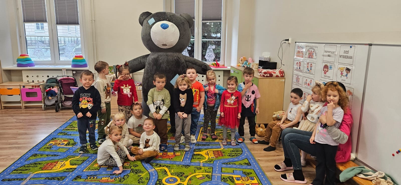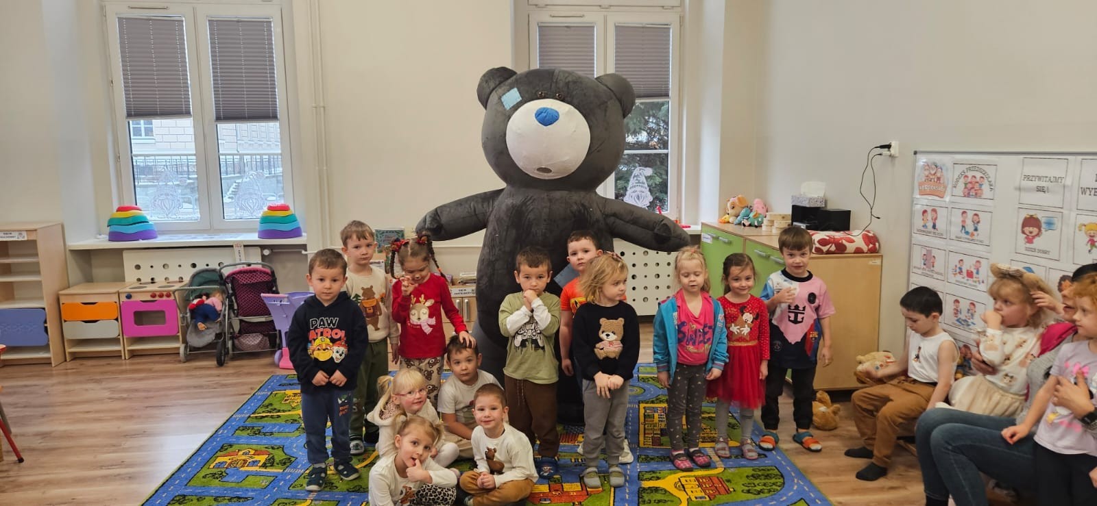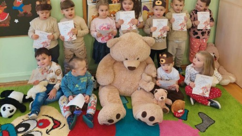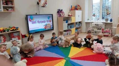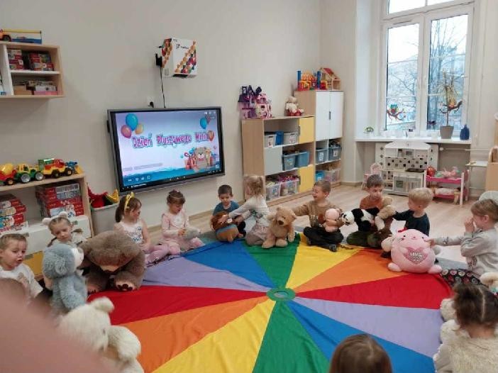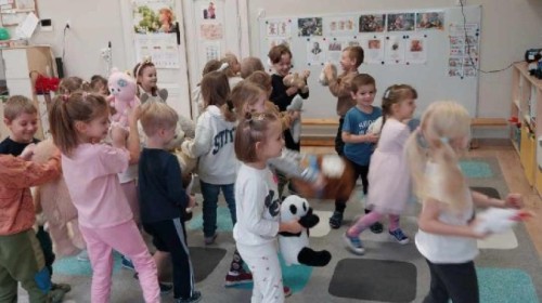 W naszym przedszkolu obchodziliśmy Dzień Pluszowego Misia, który dostarczył dzieciom wielu pozytywnych emocji. Przedszkolaki przyniosły swoje ulubione pluszowe misie i wspólnie uczestniczyły w różnych aktywnościach przygotowanych na tę okazję. Na dzieci czekały zabawy, gry i tańce, podczas których pluszowe misie stały się najlepszymi towarzyszami każdego zadania. Wspólna misiowa zabawa sprzyjała integracji, rozwijała kreatywność i sprawiała dzieciom ogromną radość. Dużym wydarzeniem dnia była wizyta Wielkiego Misia, który pojawił się, by przywitać dzieci, potańczyć z nimi i dodać wyjątkowego uroku całej uroczystości. Dodatkową atrakcją była misiowa fotobudka, w której każdy mógł wykonać pamiątkowe zdjęcie.