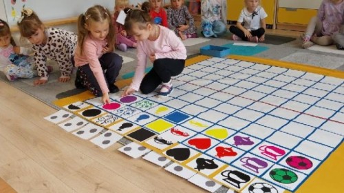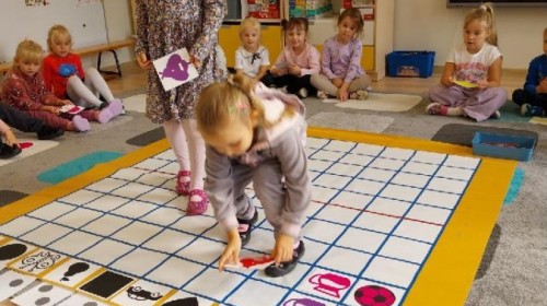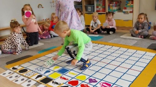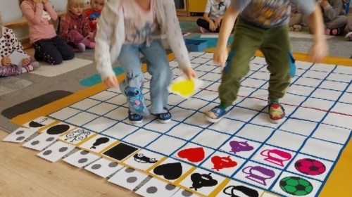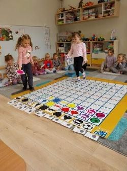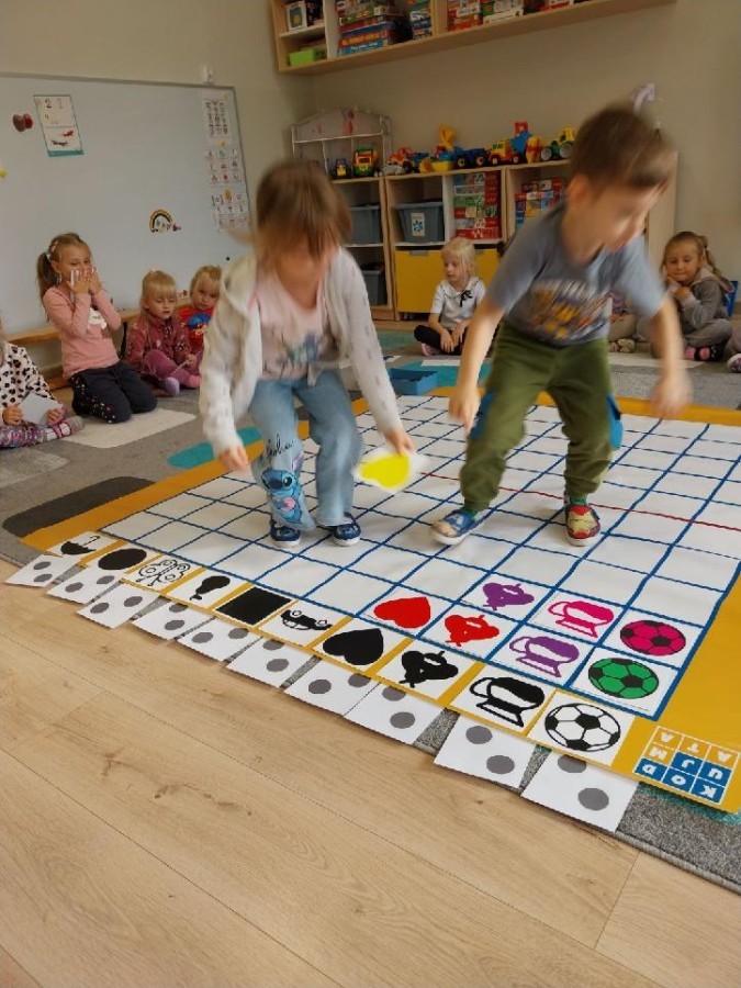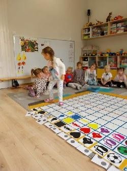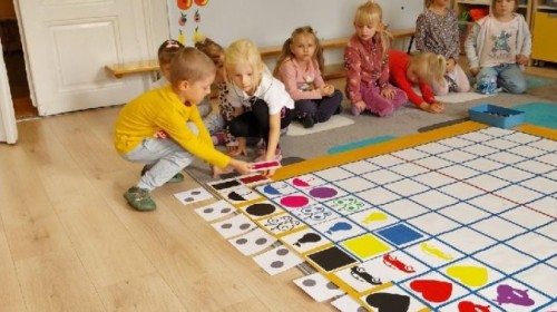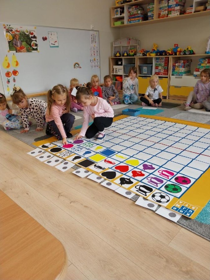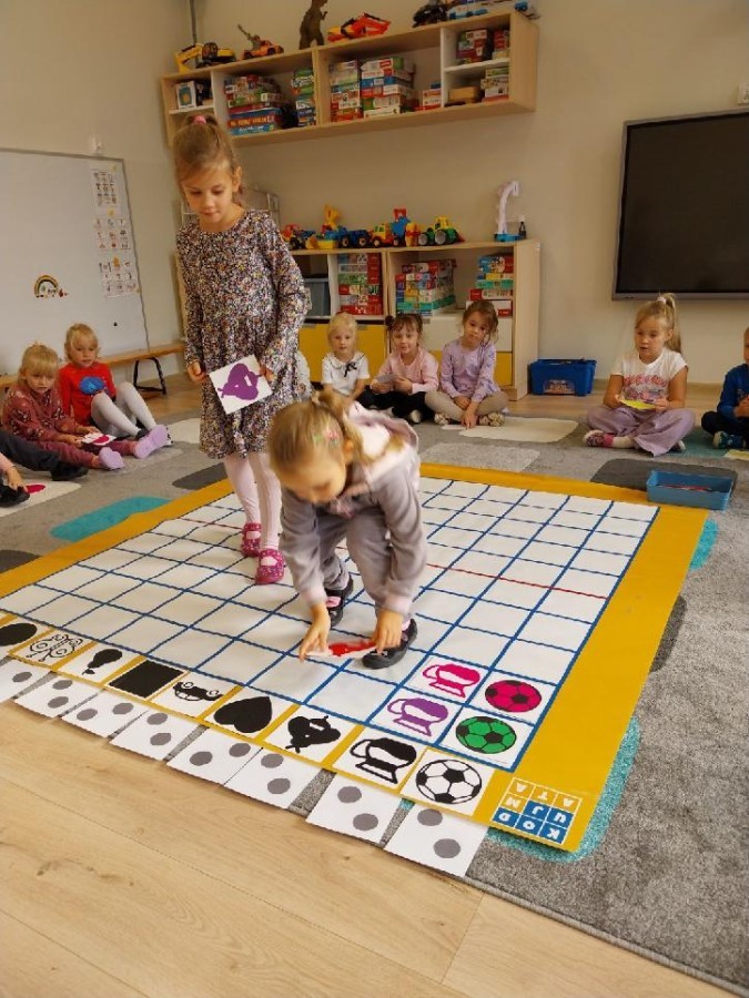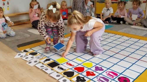 Grupa Średniaków regularnie ćwiczy kodowanie z wykorzystaniem Kodujmaty, rozwijając umiejętność logicznego myślenia, planowania i współpracy. Dzieci uczą się tworzyć proste algorytmy, poruszać się po planszy zgodnie z ustalonymi instrukcjami oraz rozwiązywać zadania wymagające sekwencjonowania działań. Zajęcia z Kodujmatą wprowadzają elementy programowania w formie zabawy, dzięki czemu uczestnicy uczą się poprzez doświadczenie i eksperymentowanie. Ćwiczenia sprzyjają także rozwijaniu orientacji przestrzennej oraz umiejętności matematycznych.