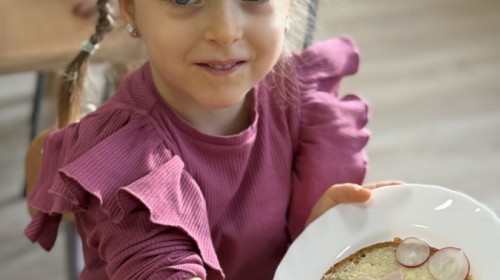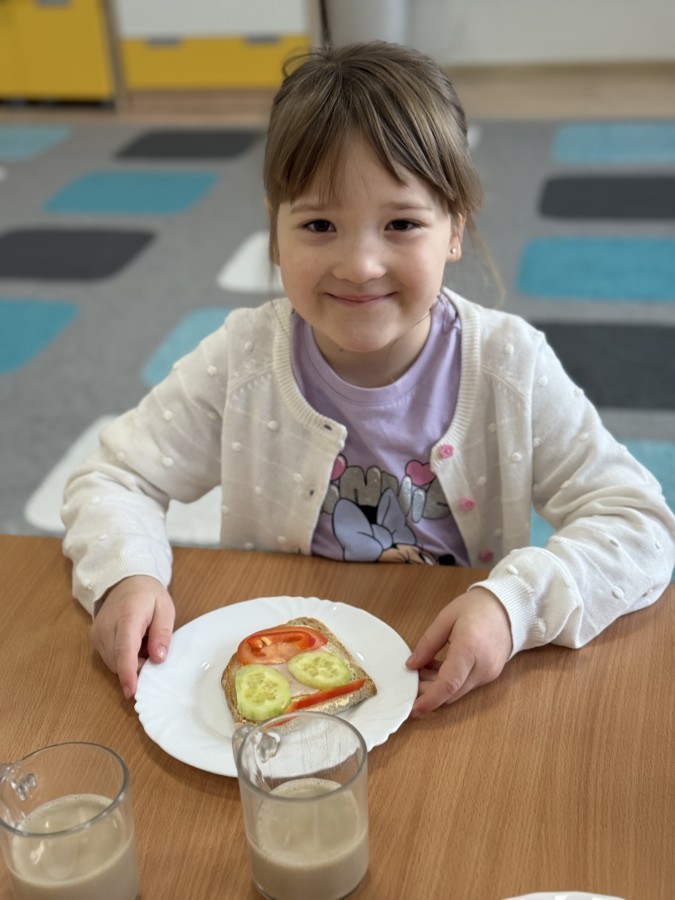 Podczas „Kreatywnych śniadanek” rozmawiamy o tym, dlaczego warto jeść warzywa, owoce, nabiał i produkty pełnoziarniste. W ten sposób w naturalny i radosny sposób wdrażamy dzieci w świat zdrowego żywienia, ucząc je dobrych wyborów, które zaprocentują w przyszłości.