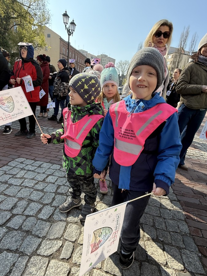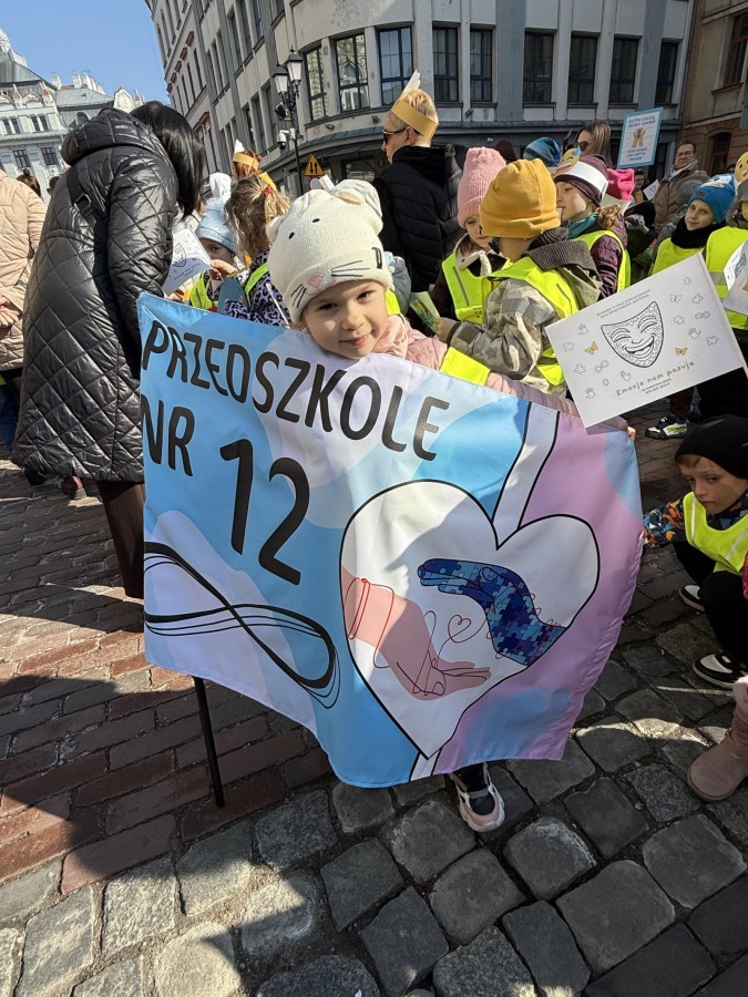 11 kwietnia 2026 roku dzieci z grup średniaków i starszaków naszego przedszkola wzięły udział w Marszu Świadomości Autyzmu, który odbył się w Bielsko-Biała i został zorganizowany przez Szkołę Podstawową Elf nr 2.
