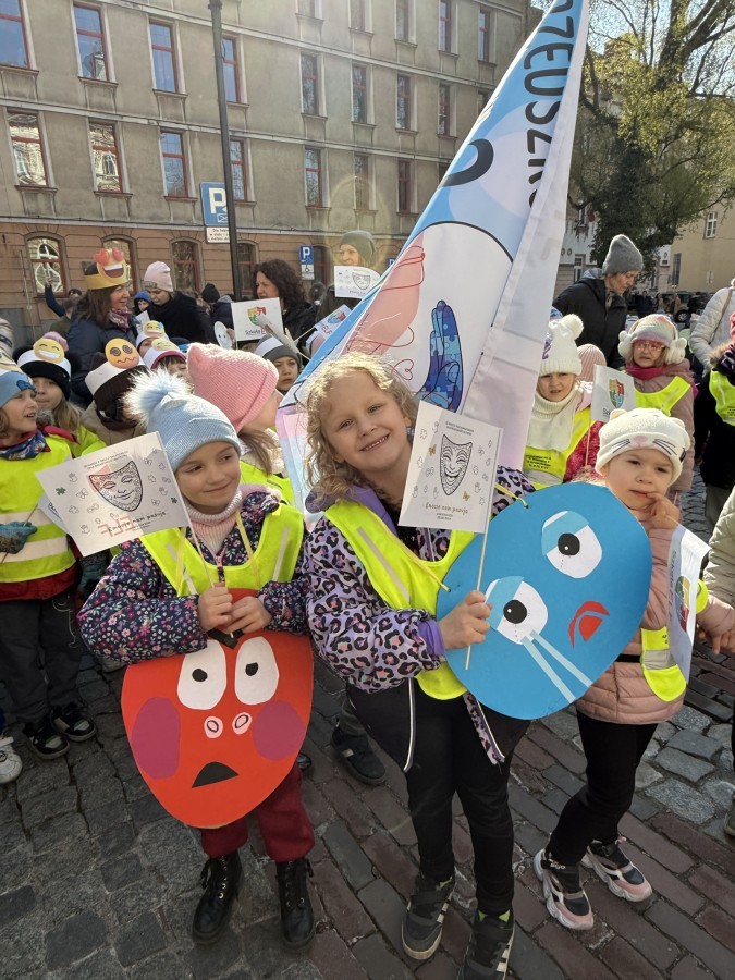 Nasze przedszkolaki z ogromnym zaangażowaniem uczestniczyły w wydarzeniu, niosąc przygotowane wcześniej elementy w kolorze niebieskim – symbolu solidarności z osobami ze spektrum autyzmu. Udział w marszu był dla dzieci ważnym doświadczeniem społecznym i cenną lekcją wrażliwości, otwartości oraz akceptacji różnorodności.