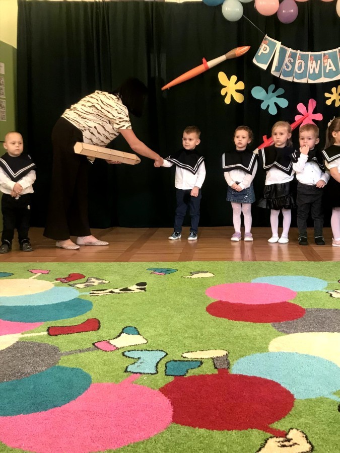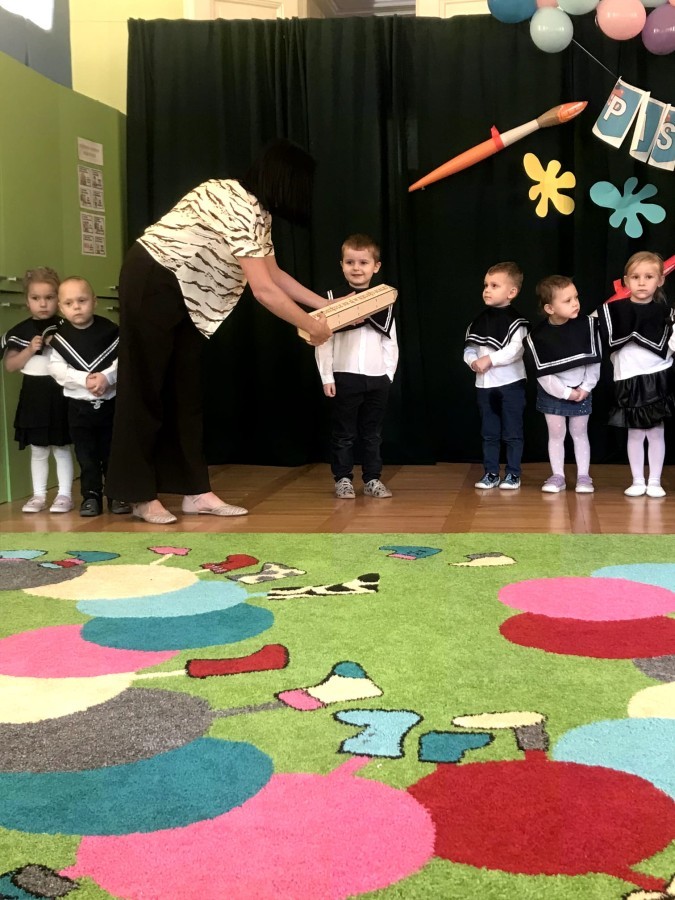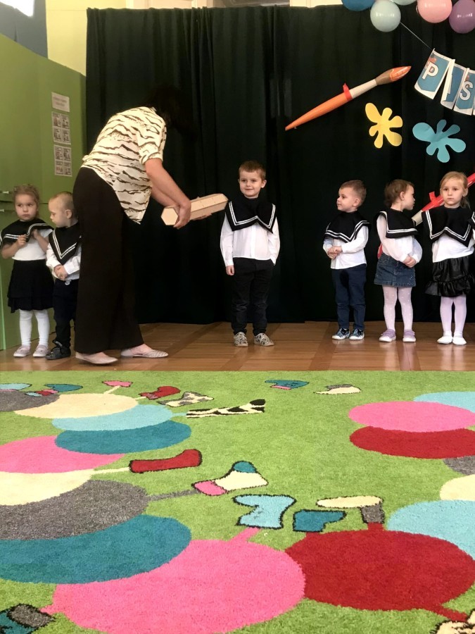 Nasze maluszki mają już za sobą najważniejszą Uroczystość - Pasowania na Przedszkolaka. Teraz są już prawdziwymi przedszkolakami. Zanim to jednak się stało grupa Starszaków uroczyście przywitała młodszych kolegów i koleżanki wierszykami. Maluszki śpiewały oraz pokazywały co już potrafią. Starszaki również zaprezentowały swoje umiejętności i zaśpiewały piosenkę o tym jak to jest być starszym przedszkolakiem. Na koniec maluszki złożyły uroczystą przysięgę i zostały pasowane w atmosferze dumy i uśmiechu, a każdy z nich otrzymał medal oraz dyplom przedszkolaka.
