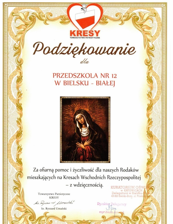 Nasze Przedszkole z radością po raz kolejny włączyło się w wyjątkową akcję charytatywną „Święty Mikołaj na Kresach”, organizowaną przez Towarzystwo Patriotyczne „Kresy” we współpracy z Kuratorium Oświaty w Katowicach – Delegaturą w Bielsku-Białej.