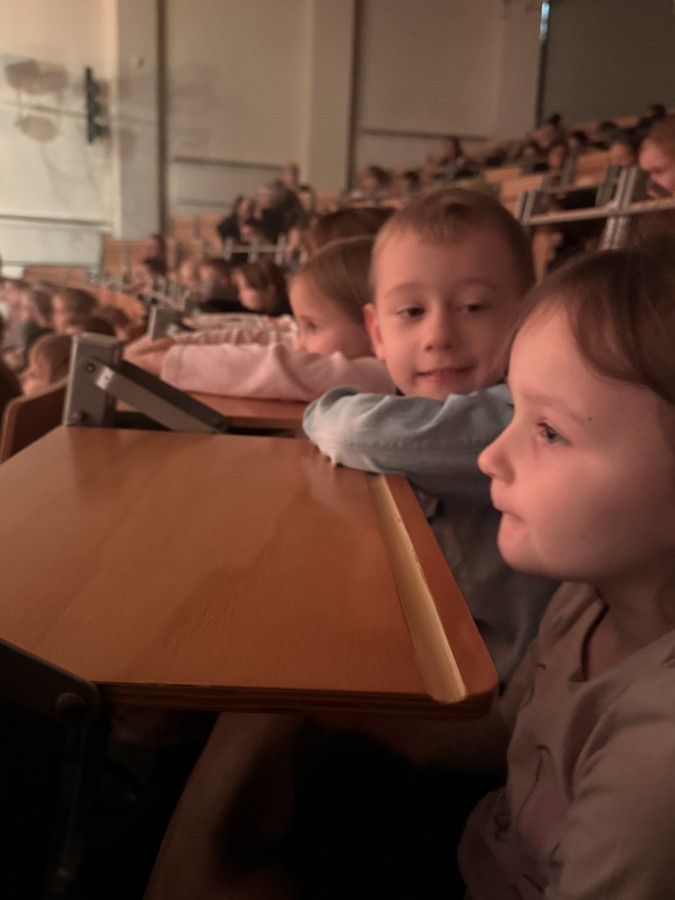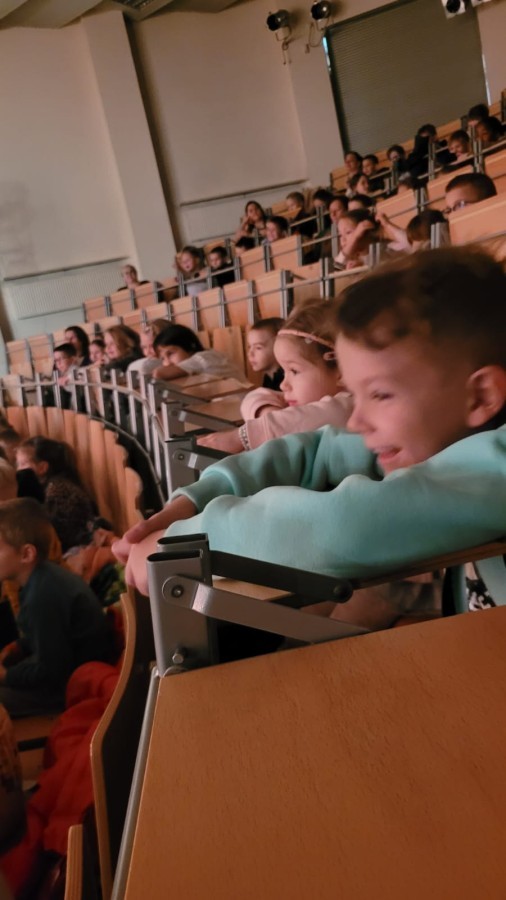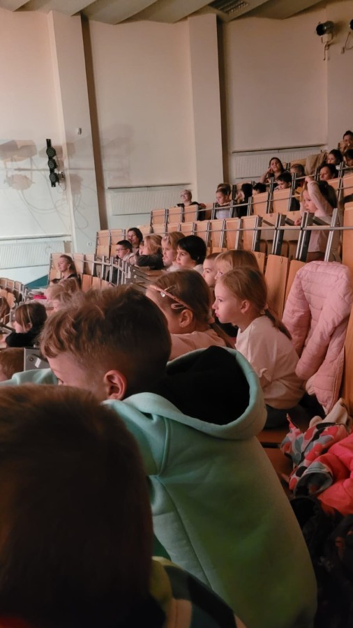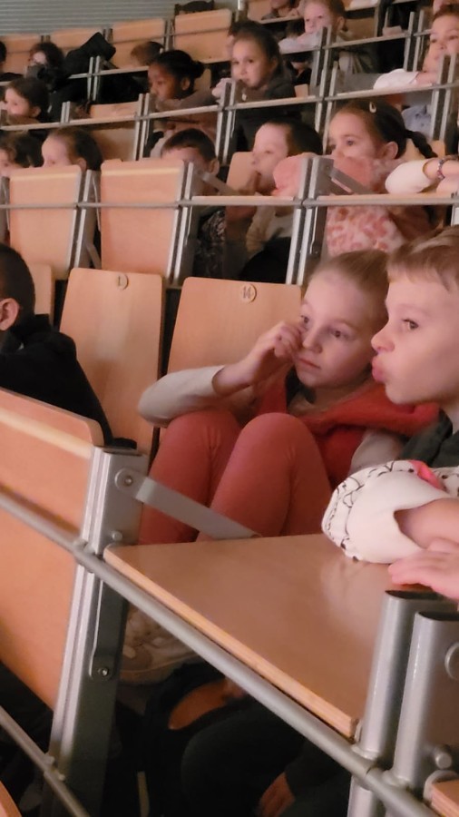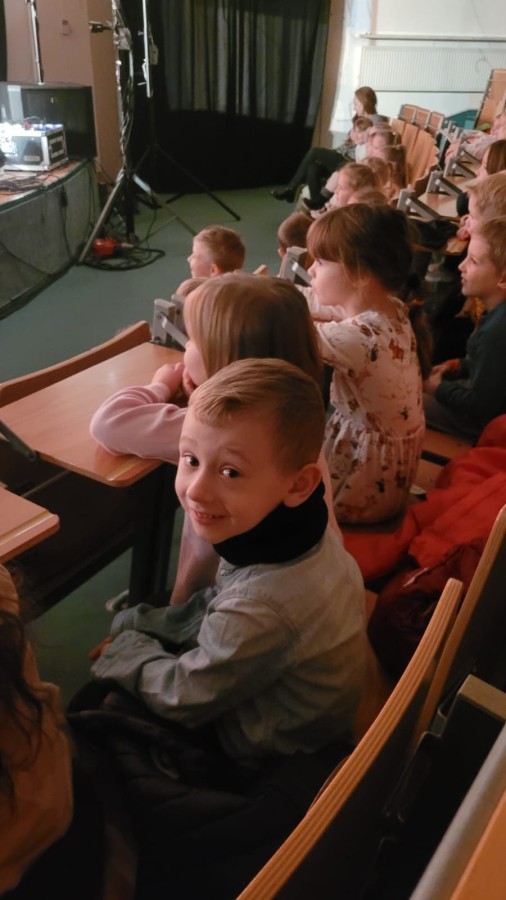 Grupy Starszaków i Średniaków wzięły udział w spektaklu pt. "Porwanie Baltazara Gąbki" w wykonaniu aktorów Narodowego Teatru Edukacji z Krakowa. Przedstawienie okazało się niezwykle zabawne-śmiechom nie było końca, zarówno wśród najmłodszych, jak i dorosłych widzów. Barwne postacie, dynamiczna akcja i humor sprawiły, że udział w wydarzeniu był dla wszystkich prawdziwą przyjemnością.
