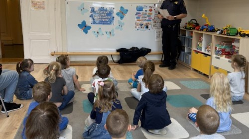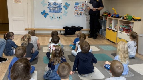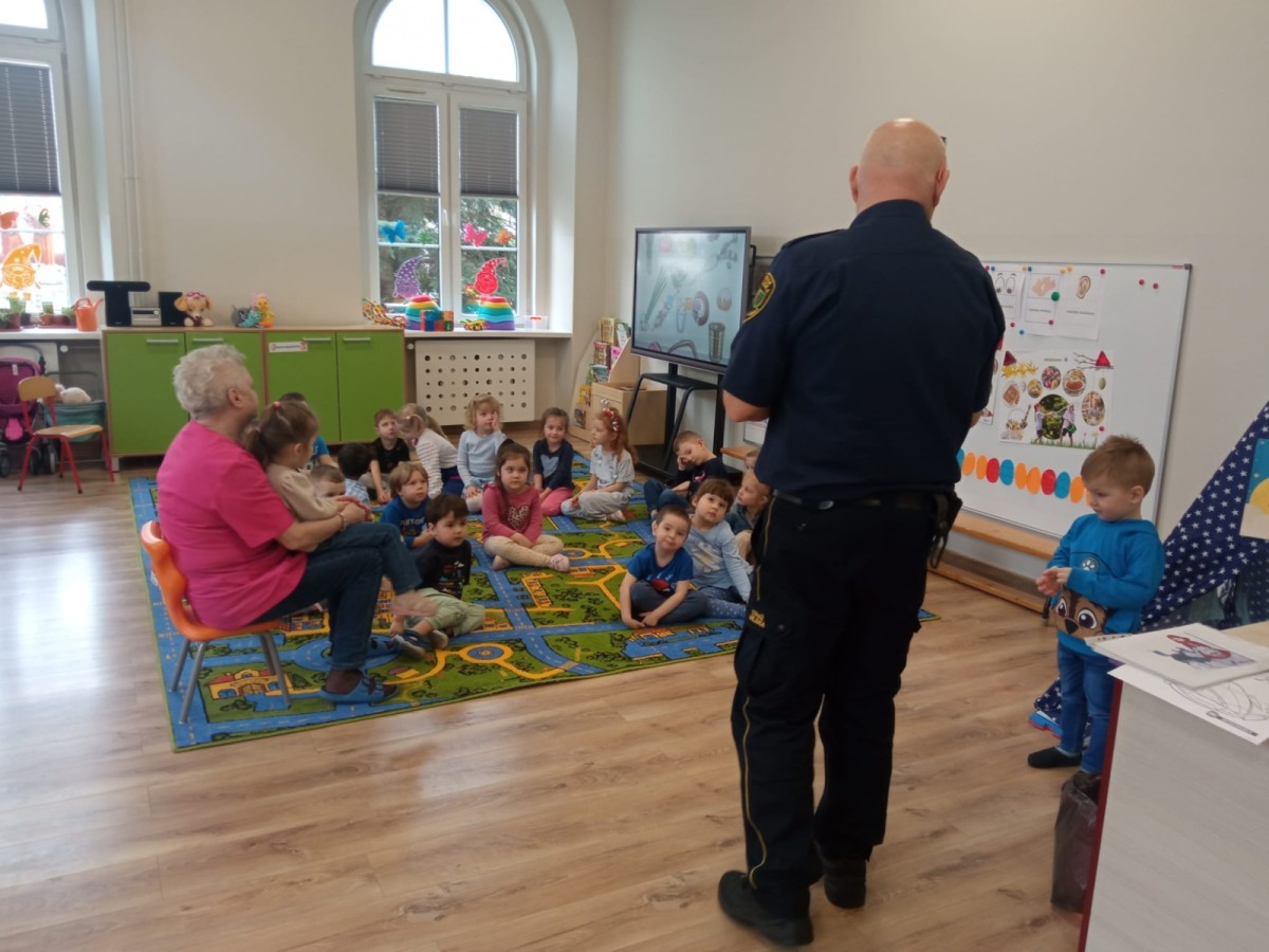 Podczas zajęć przedszkolaki dowiedziały się, jak należy zachowywać się w kontakcie z osobami obcymi oraz jakie mogą pojawić się zagrożenia. Prowadzący w przystępny i angażujący sposób wyjaśnił dzieciom, jak reagować w trudnych sytuacjach i gdzie szukać pomocy.