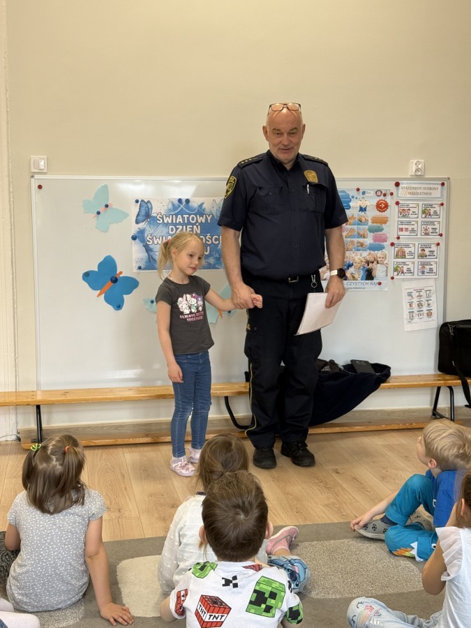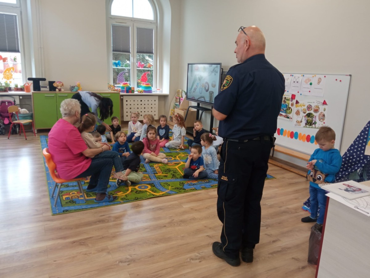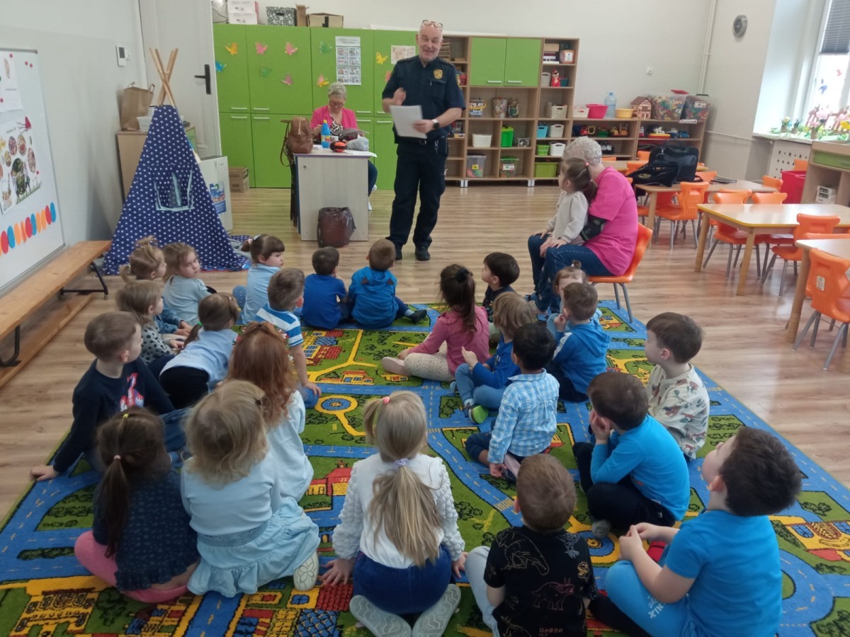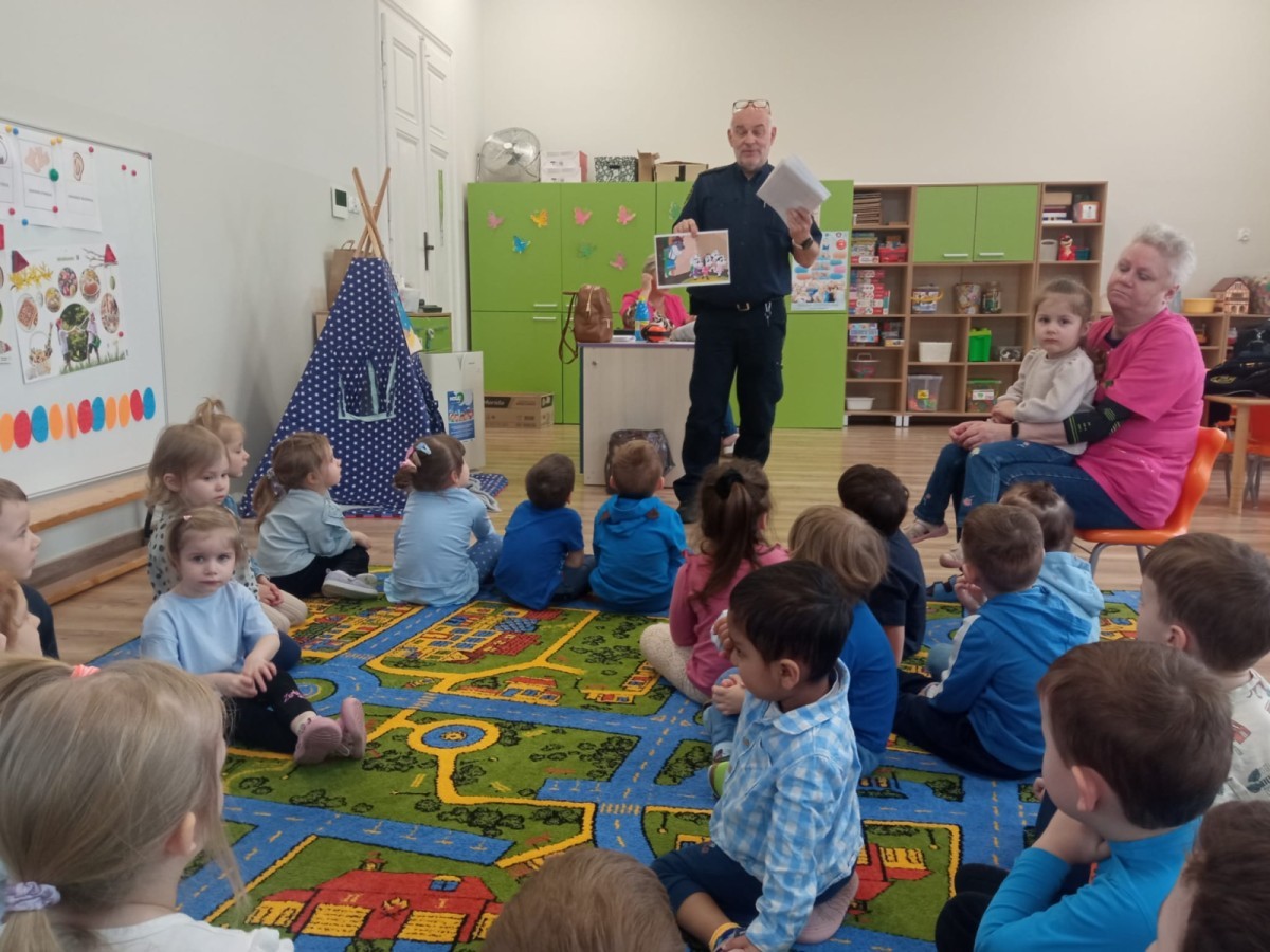 W naszym przedszkolu odbyło się wyjątkowe spotkanie z przedstawicielem Straży Miejskiej, którego celem było przybliżenie dzieciom zasad bezpieczeństwa w codziennych sytuacjach.