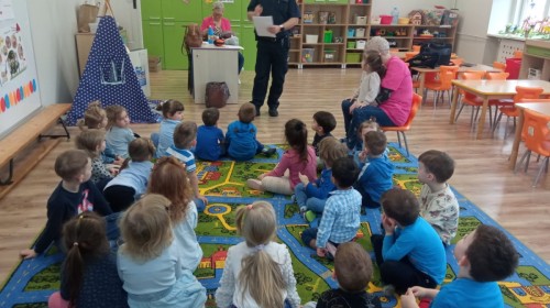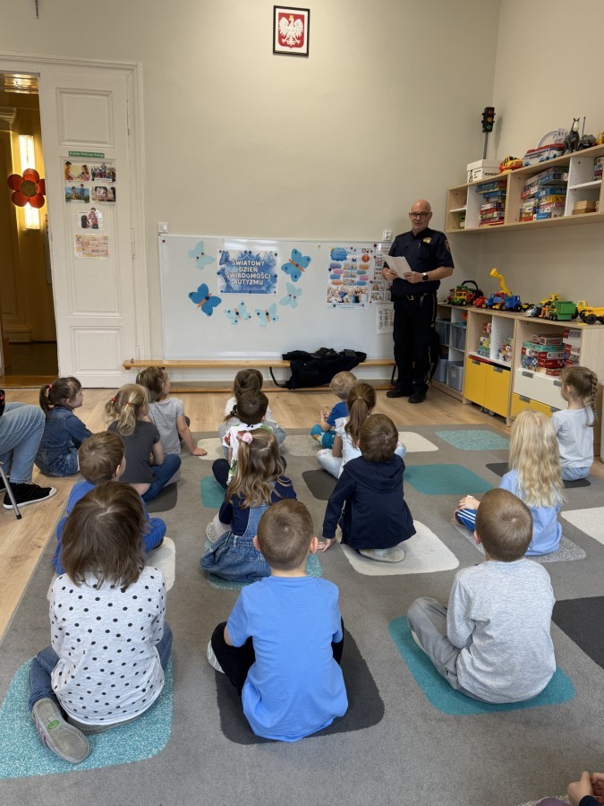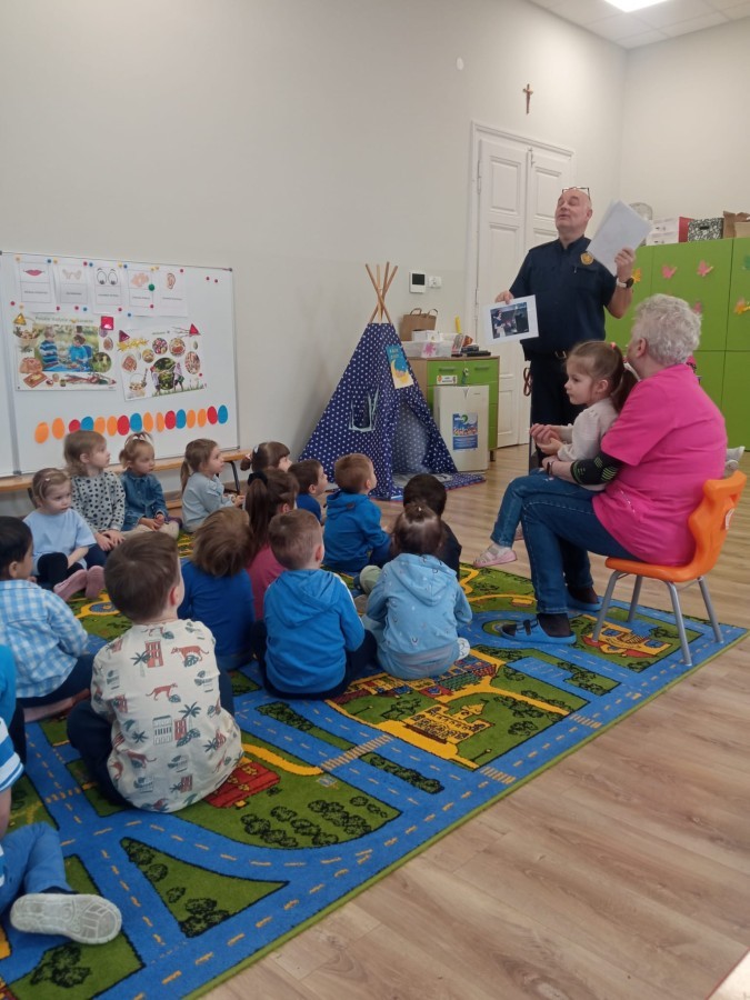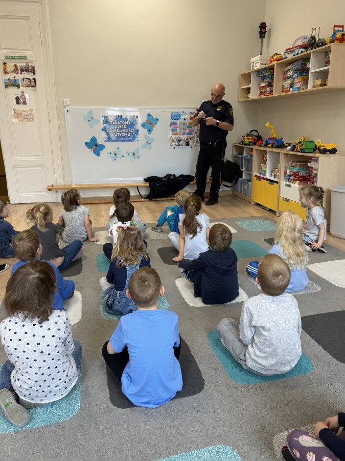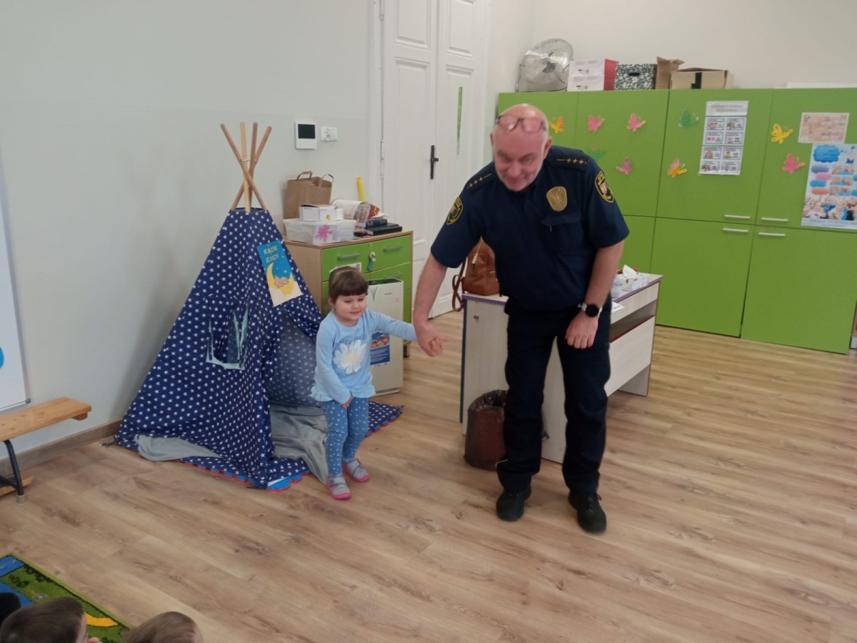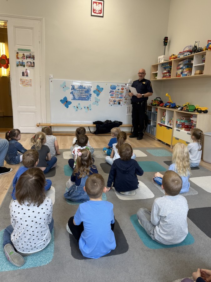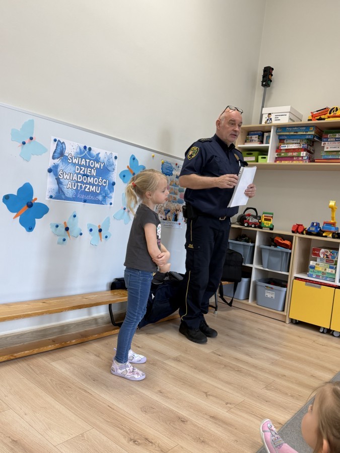 W naszym przedszkolu odbyło się wyjątkowe spotkanie z przedstawicielem Straży Miejskiej, którego celem było przybliżenie dzieciom zasad bezpieczeństwa w codziennych sytuacjach.