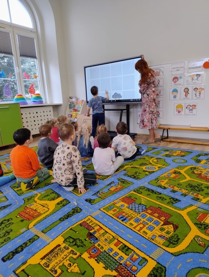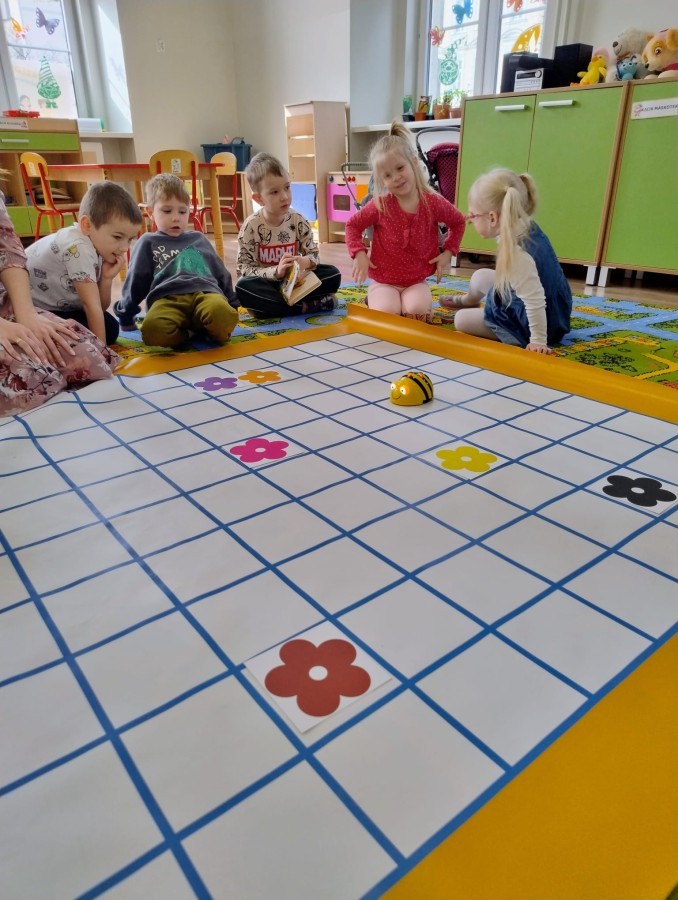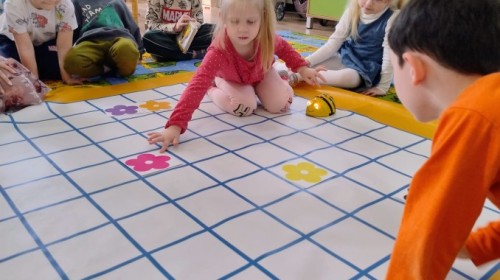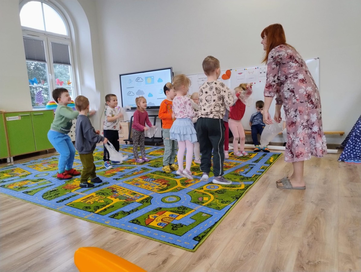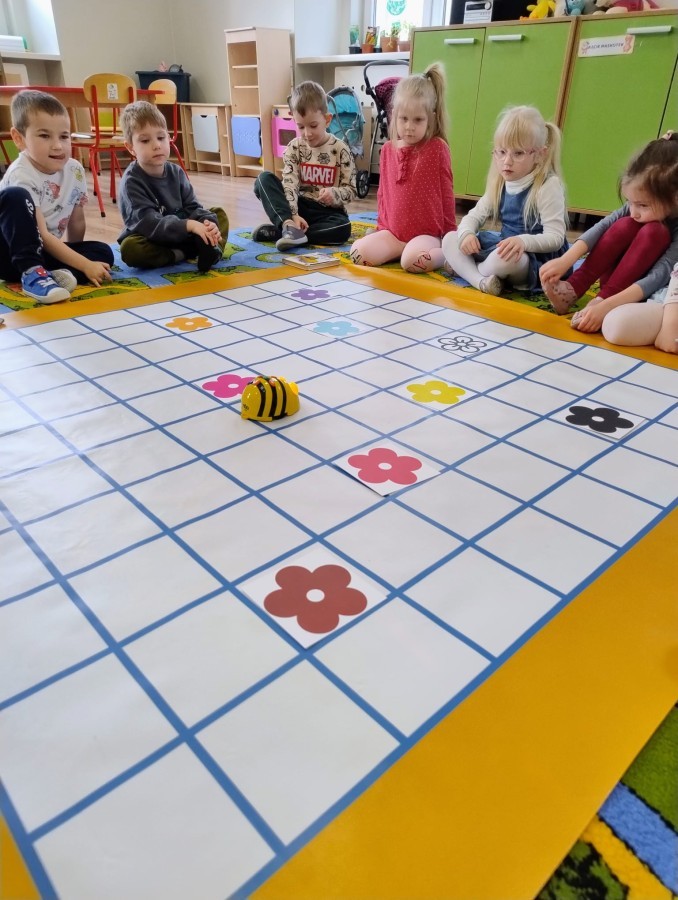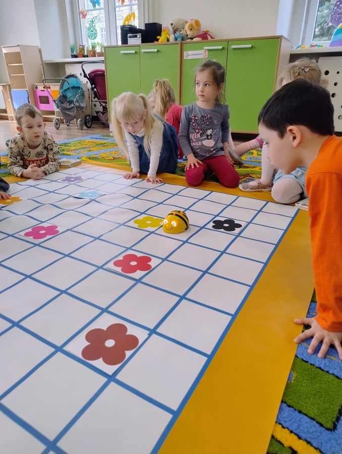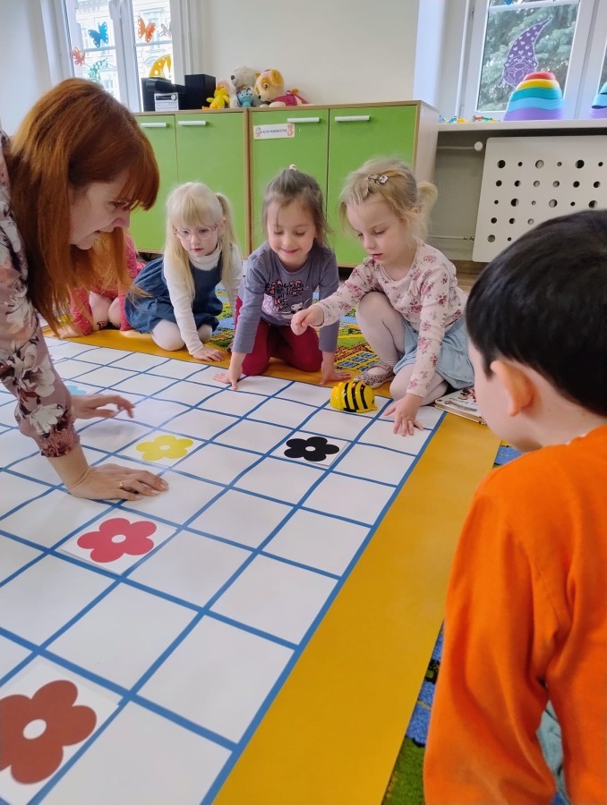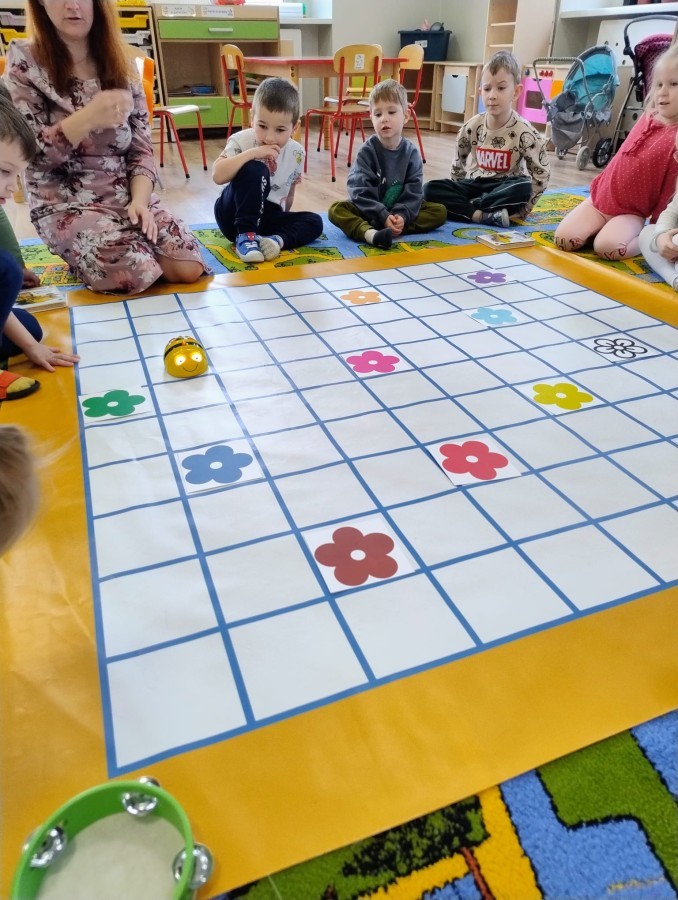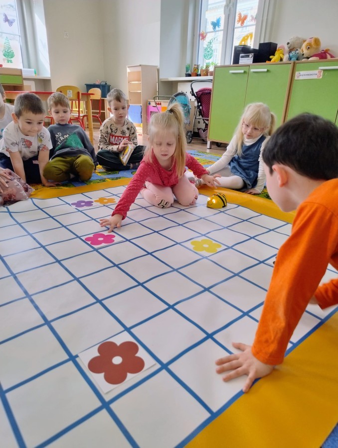 Starsze Maluchy z entuzjazmem wzięły udział w zajęciach z wykorzystaniem Beebota i tablicy interaktywnej. Dzieci miały okazję poznać podstawy programowania w formie zabawy. Temat zajęć koncentrował się na zjawiskach pogodowych, co pozwoliło dzieciom nie tylko zdobyć nową wiedzę, ale również rozwijać swoje umiejętności komunikacyjne i kreatywność. W trakcie zajęć nie zabrakło także ruchu! Zabawy były doskonałym uzupełnieniem nauki, a dzieci mogły w radosny sposób spędzić czas, jednocześnie rozwijając swoje zdolności motoryczne. Całe zajęcie było przykładem, że nauka poprzez zabawę jest przyjemna i efektywna.