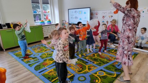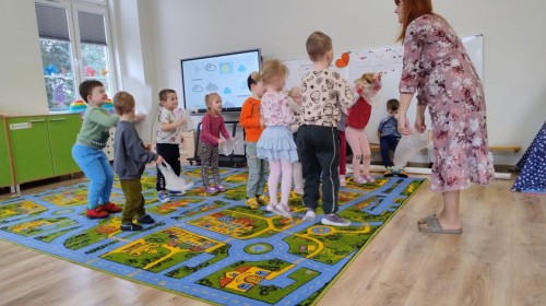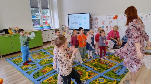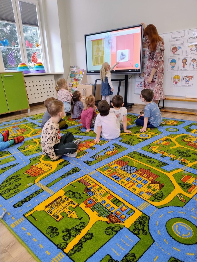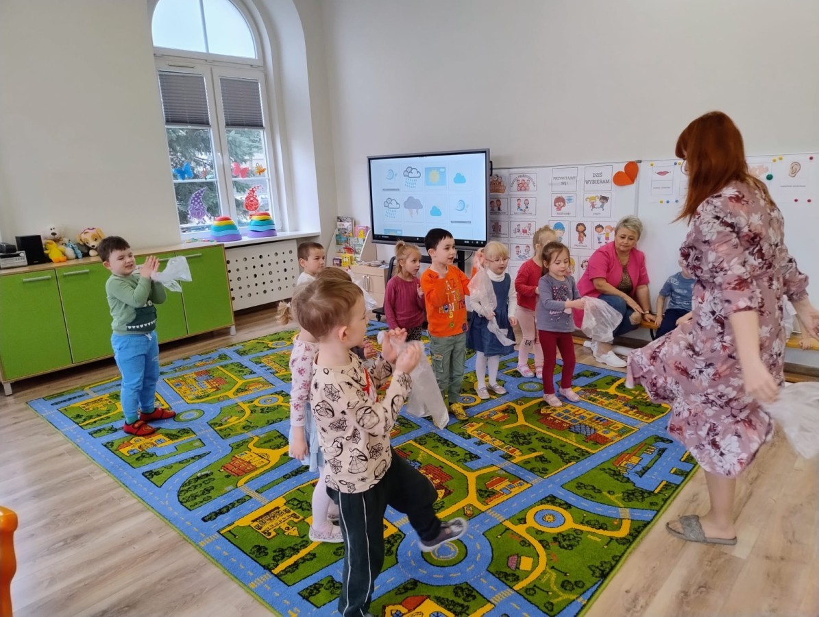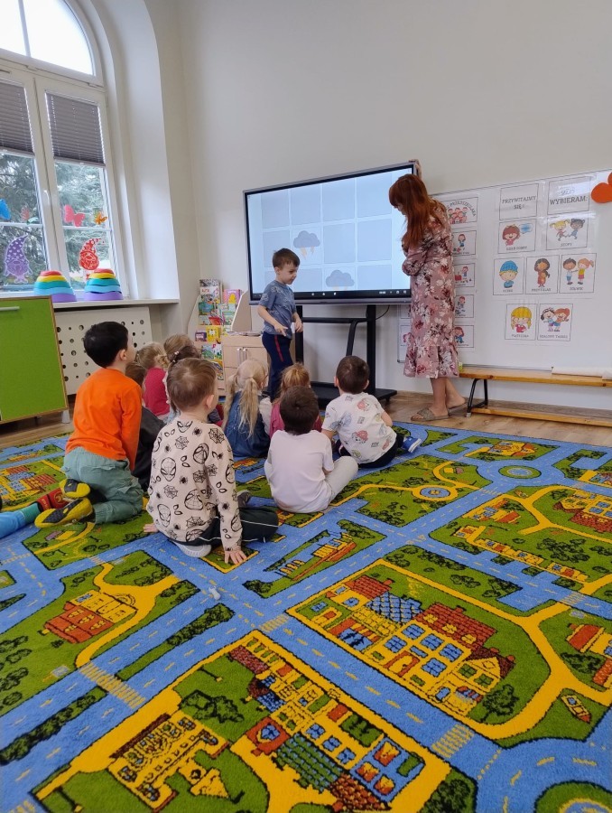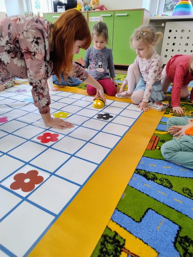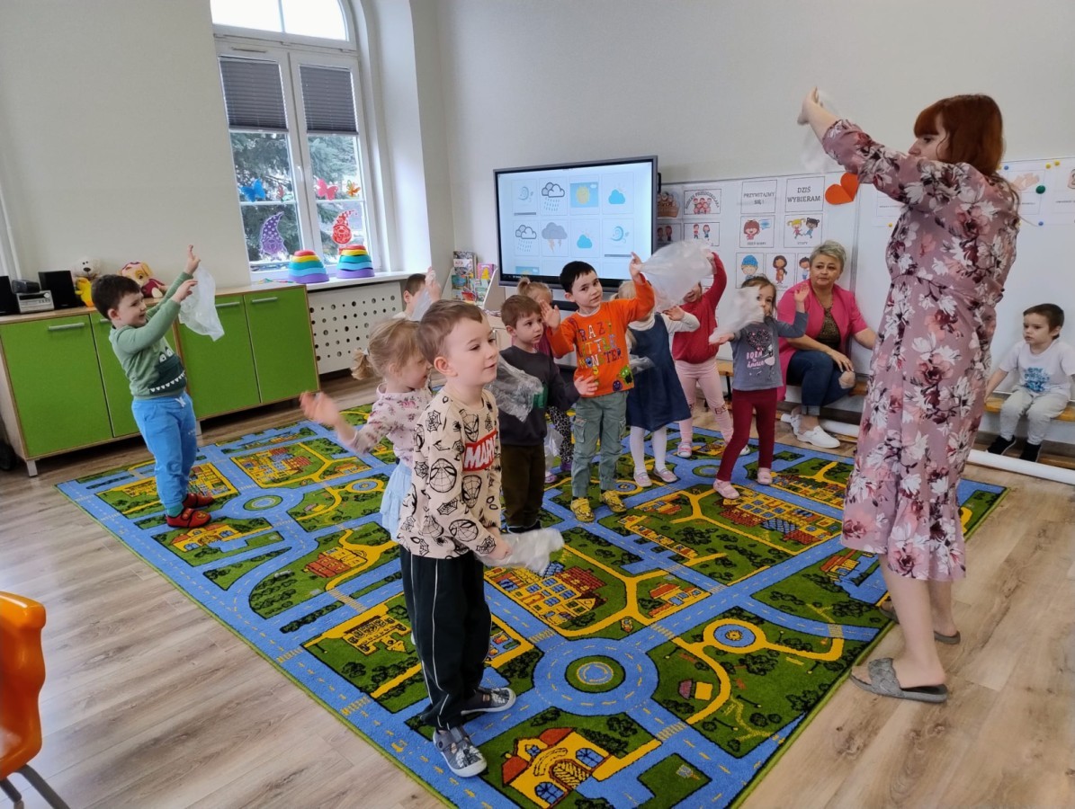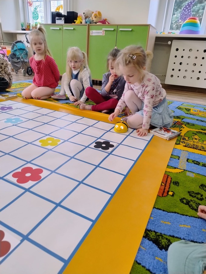 Starsze Maluchy z entuzjazmem wzięły udział w zajęciach z wykorzystaniem Beebota i tablicy interaktywnej. Dzieci miały okazję poznać podstawy programowania w formie zabawy. Temat zajęć koncentrował się na zjawiskach pogodowych, co pozwoliło dzieciom nie tylko zdobyć nową wiedzę, ale również rozwijać swoje umiejętności komunikacyjne i kreatywność. W trakcie zajęć nie zabrakło także ruchu! Zabawy były doskonałym uzupełnieniem nauki, a dzieci mogły w radosny sposób spędzić czas, jednocześnie rozwijając swoje zdolności motoryczne. Całe zajęcie było przykładem, że nauka poprzez zabawę jest przyjemna i efektywna.