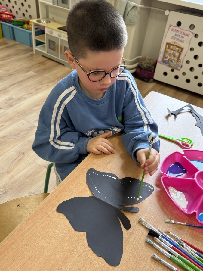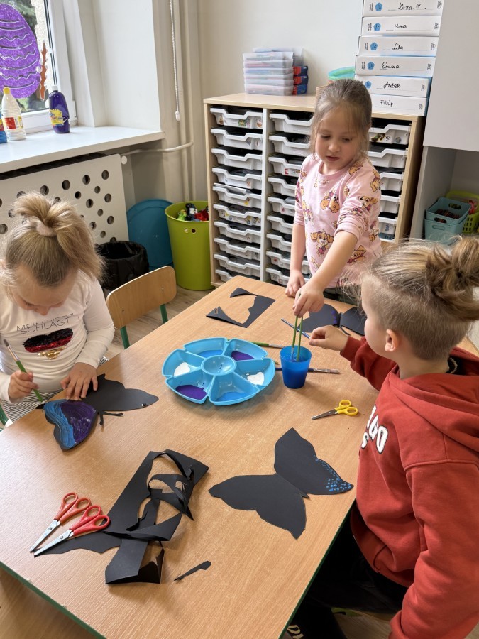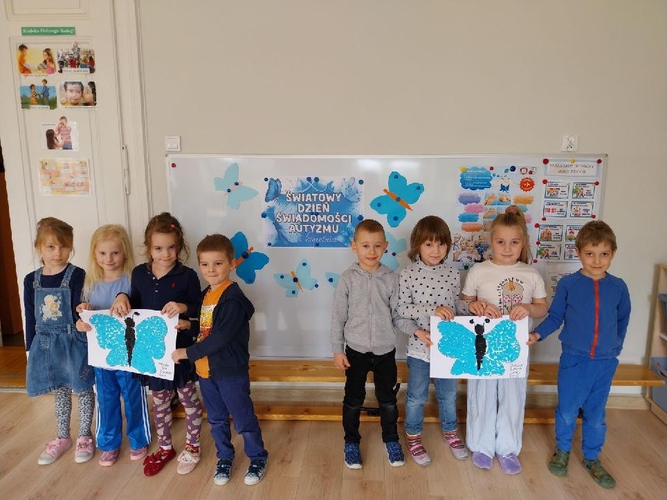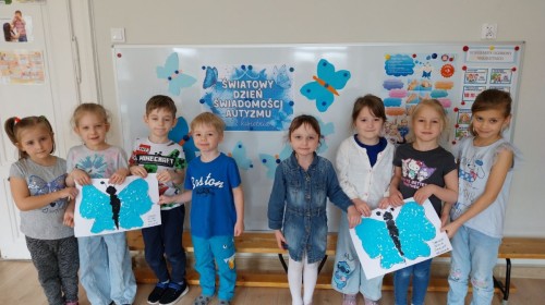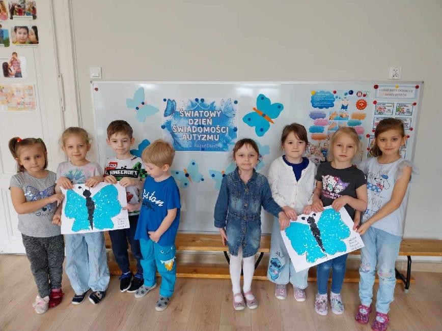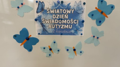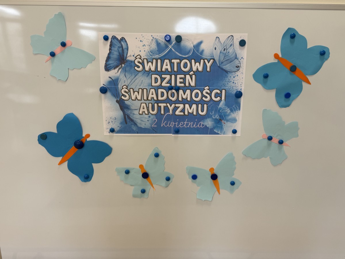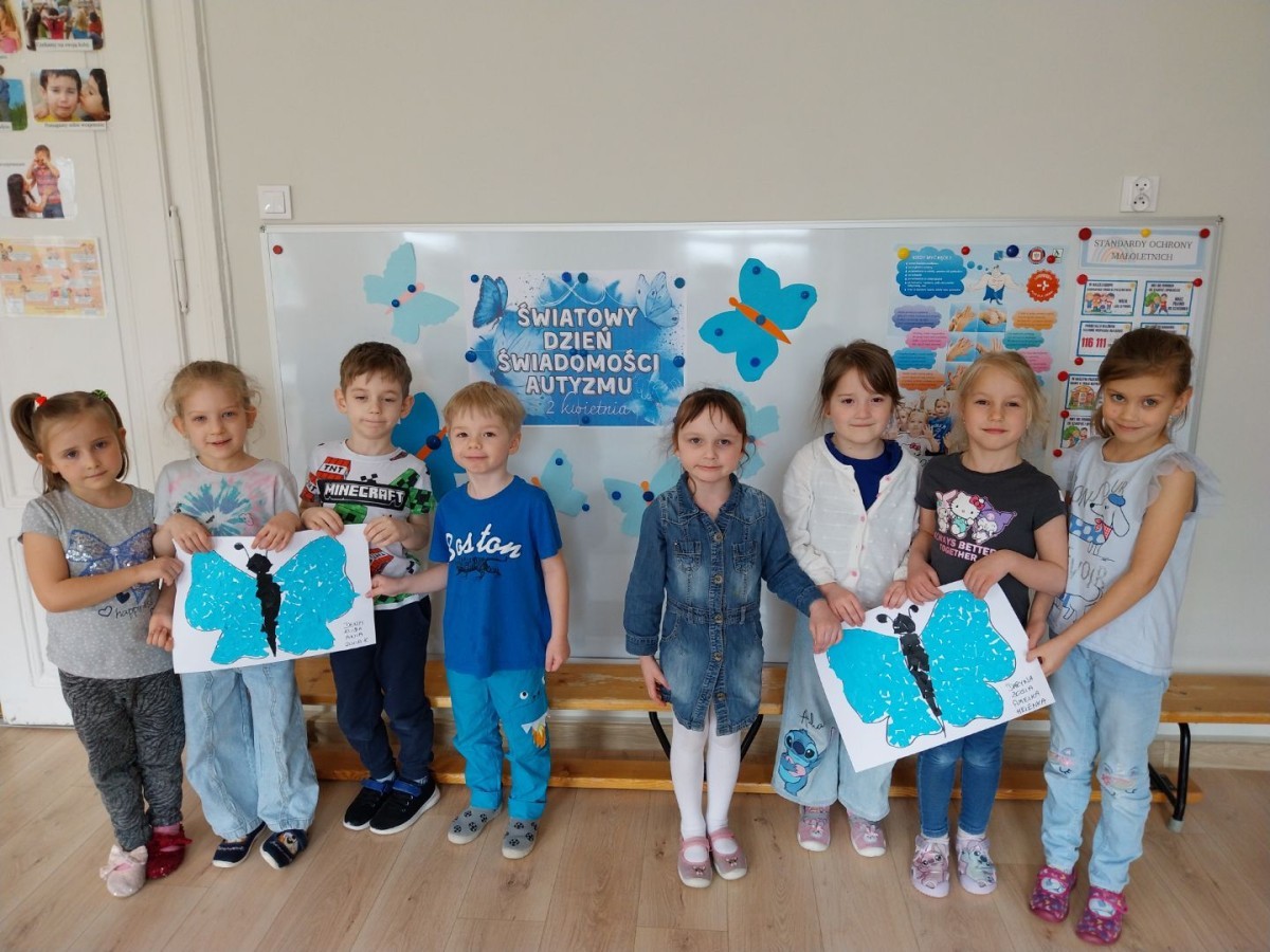 W ramach działań plastycznych stworzyliśmy piękne, niebieskie motyle – symbol solidarności z osobami w spektrum autyzmu. Prace dzieci były pełne kreatywności i zaangażowania, a jednocześnie stanowiły wyraz naszej wspólnej troski o budowanie świata opartego na zrozumieniu i szacunku.