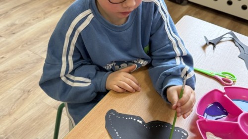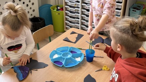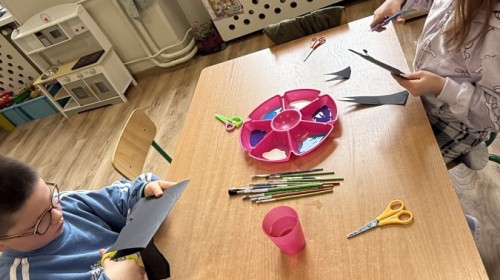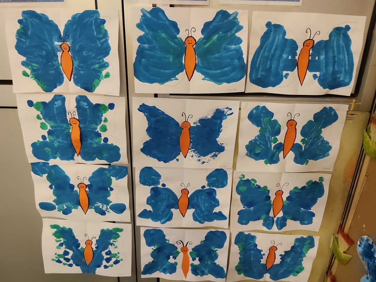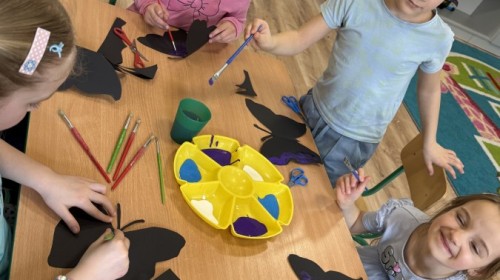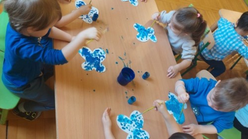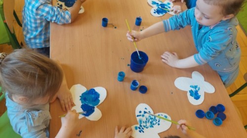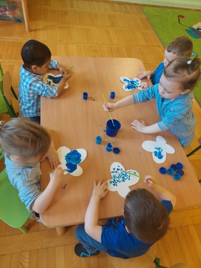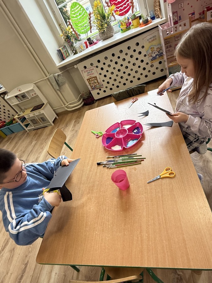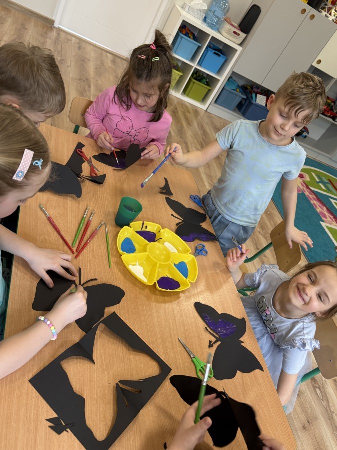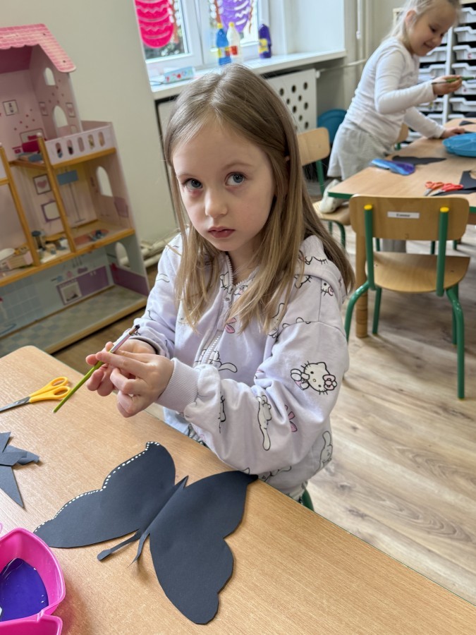 W ramach działań plastycznych stworzyliśmy piękne, niebieskie motyle – symbol solidarności z osobami w spektrum autyzmu. Prace dzieci były pełne kreatywności i zaangażowania, a jednocześnie stanowiły wyraz naszej wspólnej troski o budowanie świata opartego na zrozumieniu i szacunku.