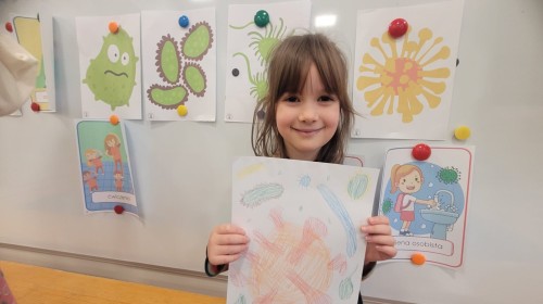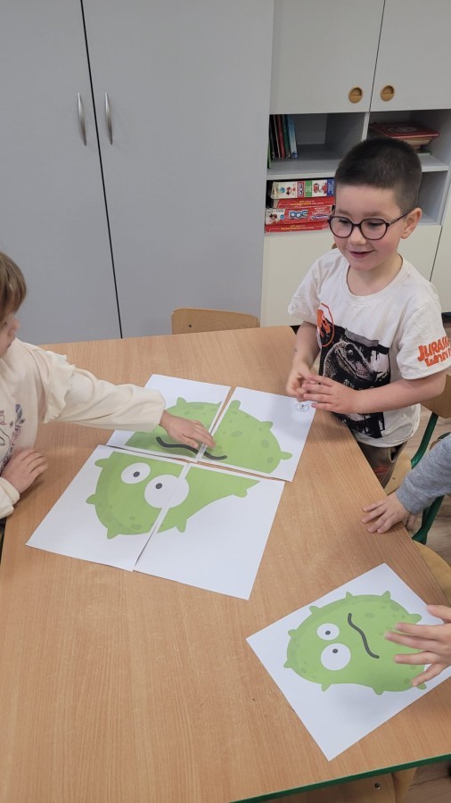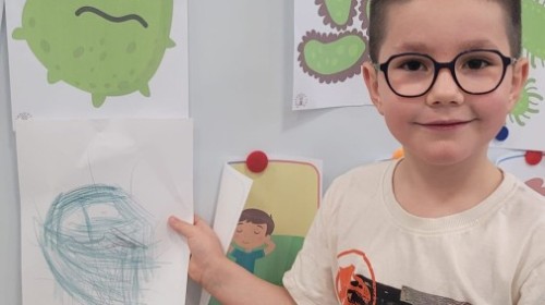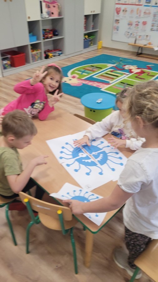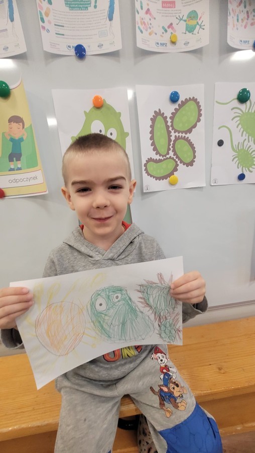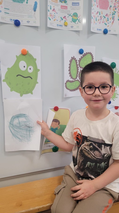 W poniedziałek z okazji Tygodnia Wiedzy o Antybiotykach nasze przedszkolaki wzięły udział w ciekawych zabawach badawczych, dzięki którym mogły w praktyczny sposób zobaczyć, w jaki sposób przenoszą się wirusy i bakterie. Dzieci przypomniały sobie także, jak dbamy o zdrowie, utrwalając zasady higieny i profilaktyki. Podczas zajęć mali odkrywcy wykazali się dużą kreatywnością i inwencją plastyczną, tworząc prace związane ze zdrowym stylem życia i ochroną przed drobnoustrojami. To był dzień pełen wiedzy, doświadczeń i świetnej zabawy.