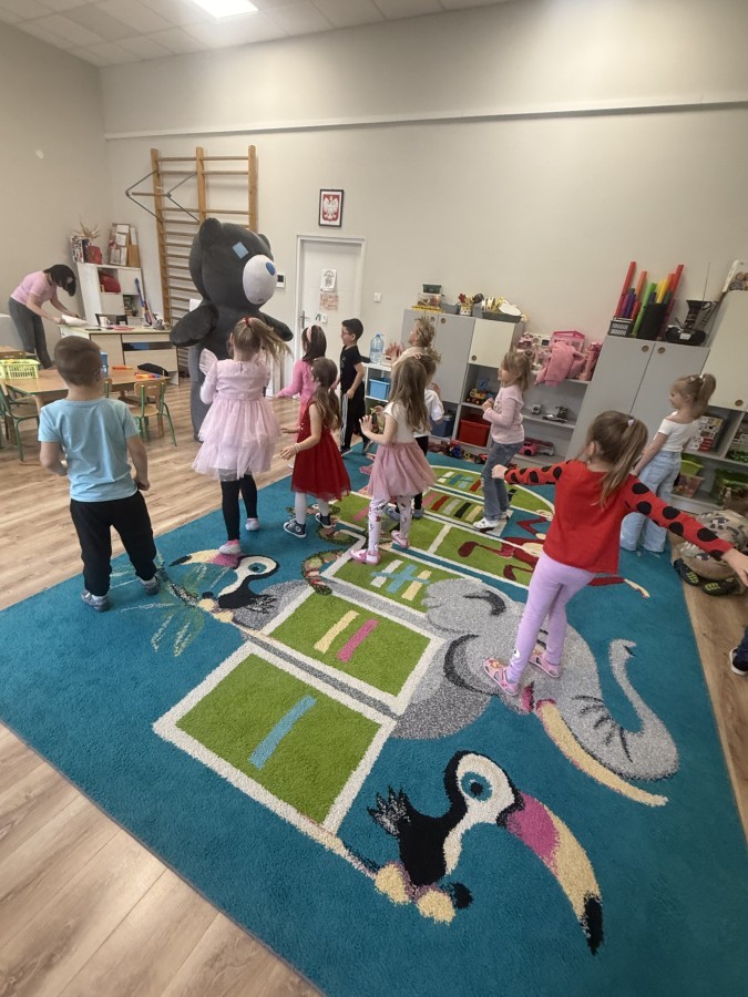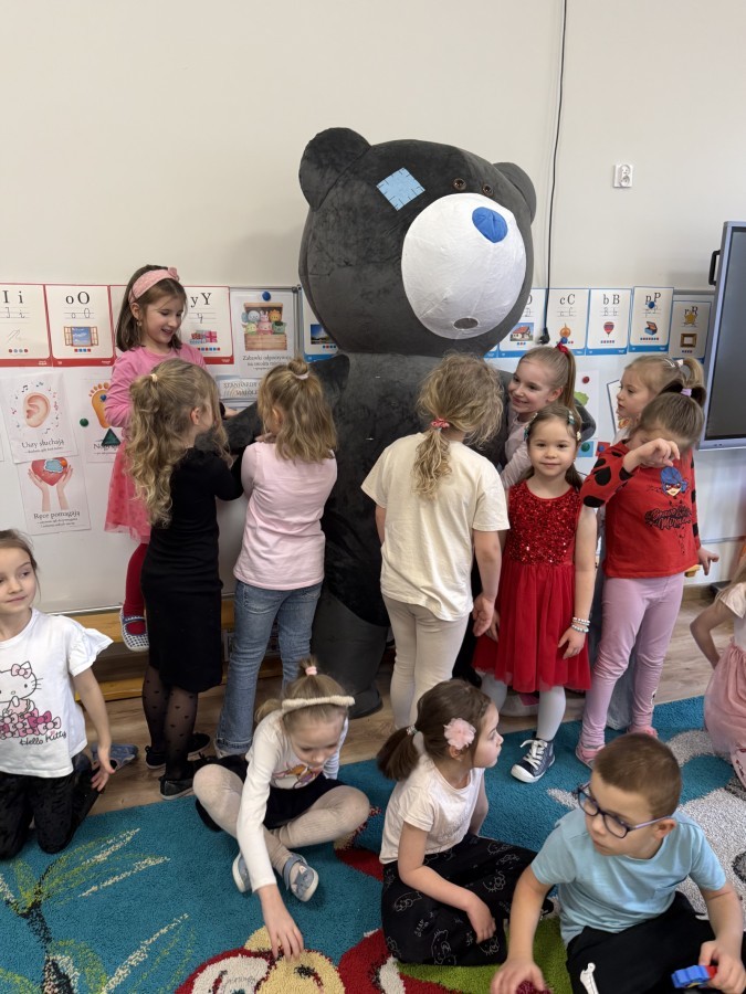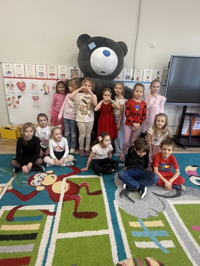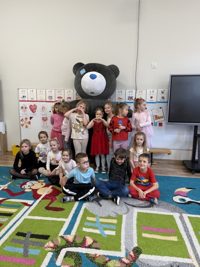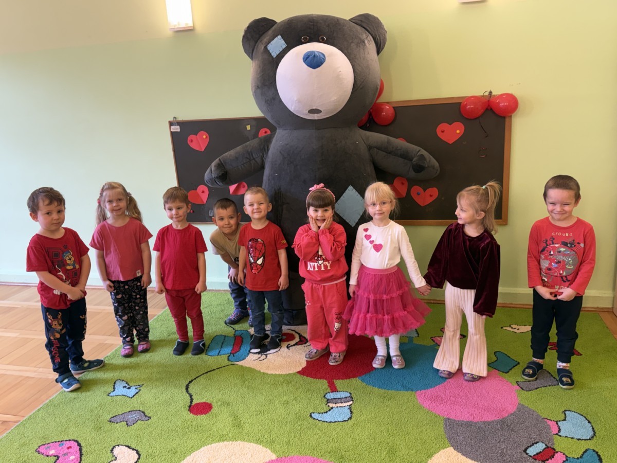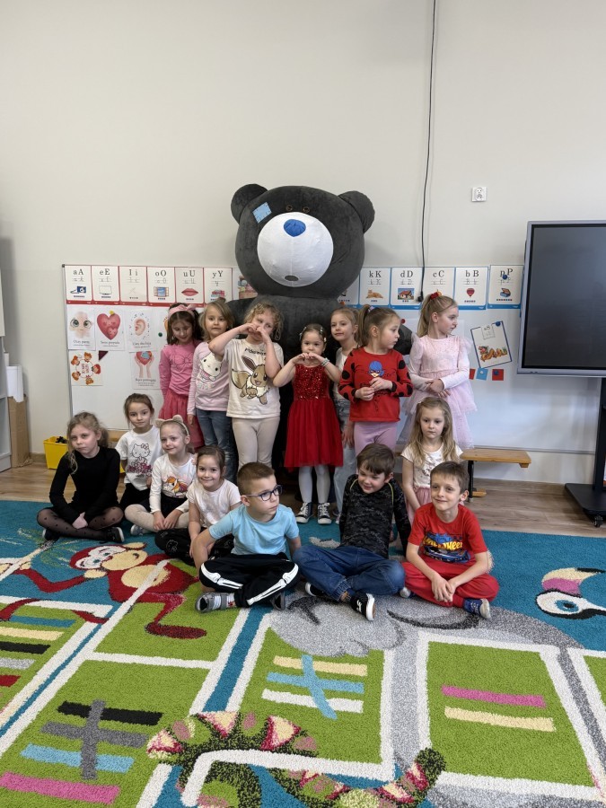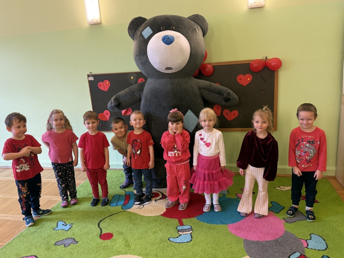 Walentynki upłynęły nam w radosnej i serdecznej atmosferze. Dzieci korzystały z poczty walentynkowej, tańczyły przy ulubionej muzyce i brały udział w wielu zabawach integracyjnych. Dużą niespodzianką była wizyta Misia, który chętnie bawił się z przedszkolakami i pozował do zdjęć. Na zakończenie każde dziecko otrzymało drobny upominek. To był dzień pełen uśmiechu, życzliwości i wspólnej zabawy.