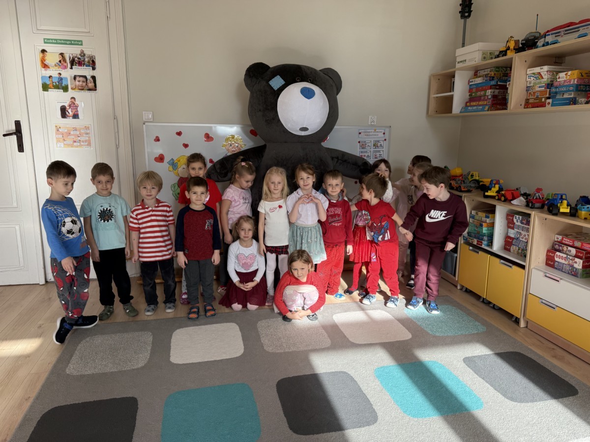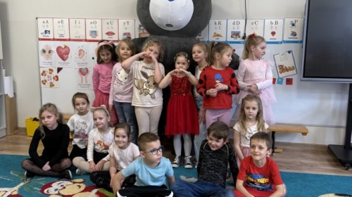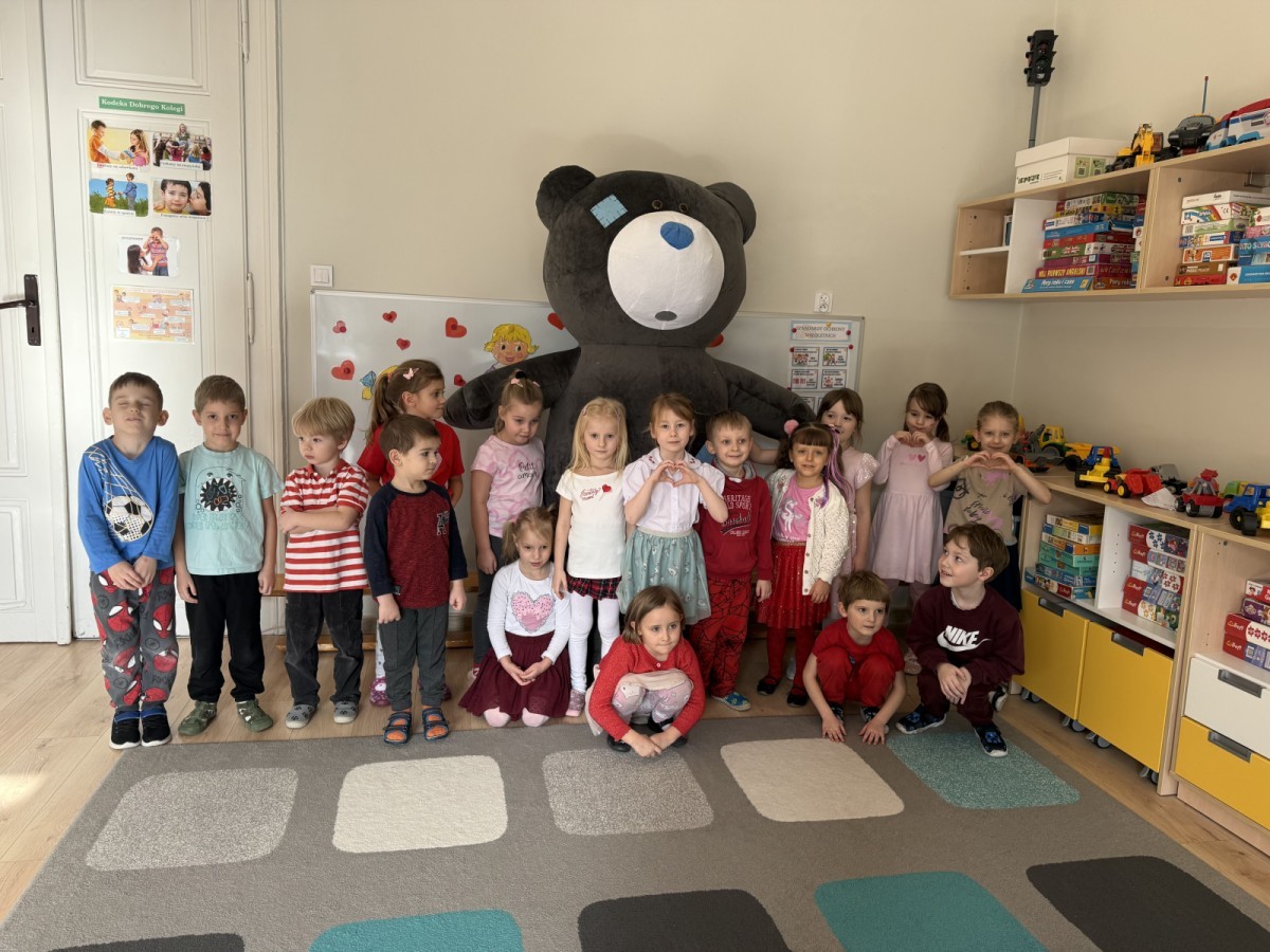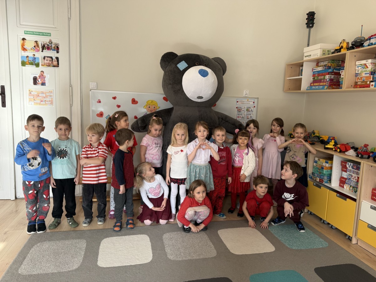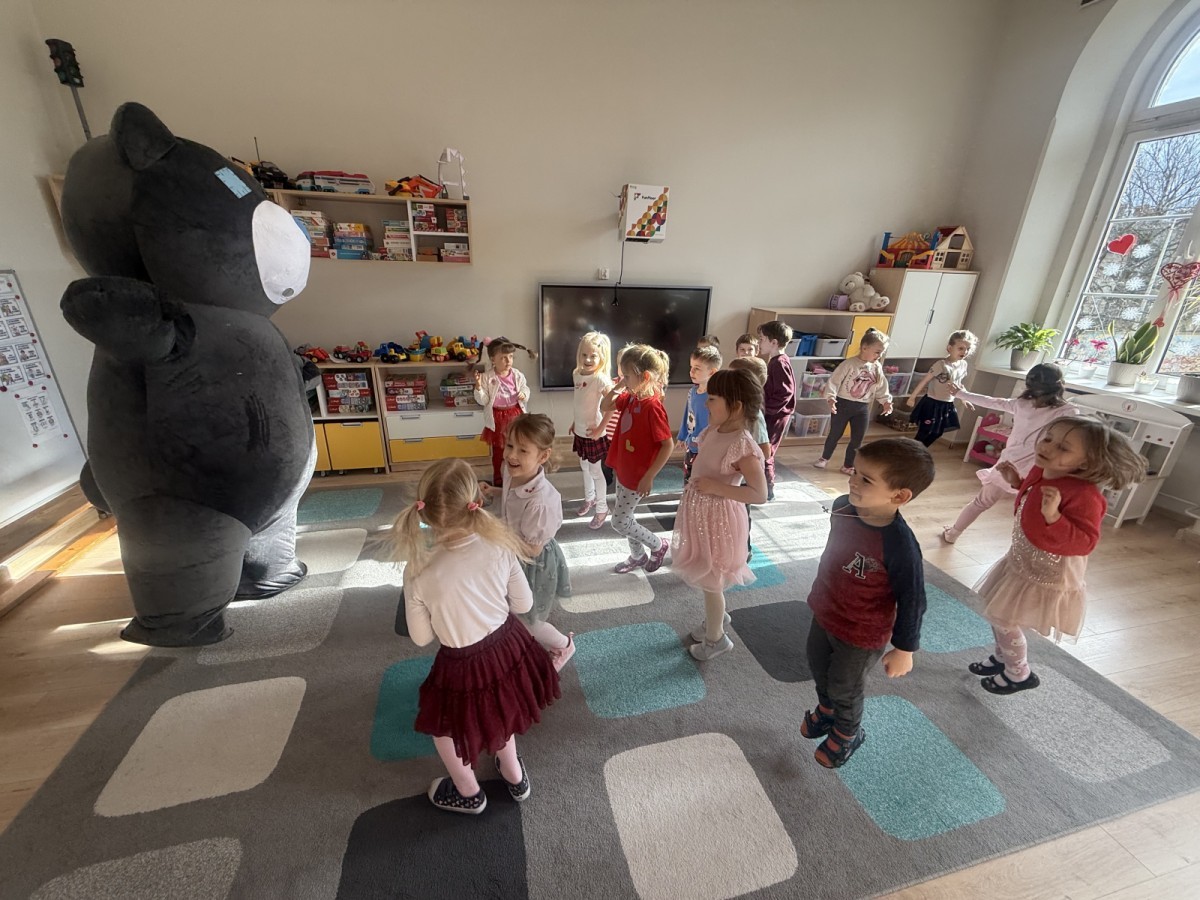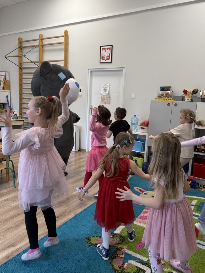 Walentynki upłynęły nam w radosnej i serdecznej atmosferze. Dzieci korzystały z poczty walentynkowej, tańczyły przy ulubionej muzyce i brały udział w wielu zabawach integracyjnych. Dużą niespodzianką była wizyta Misia, który chętnie bawił się z przedszkolakami i pozował do zdjęć. Na zakończenie każde dziecko otrzymało drobny upominek. To był dzień pełen uśmiechu, życzliwości i wspólnej zabawy.