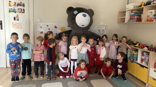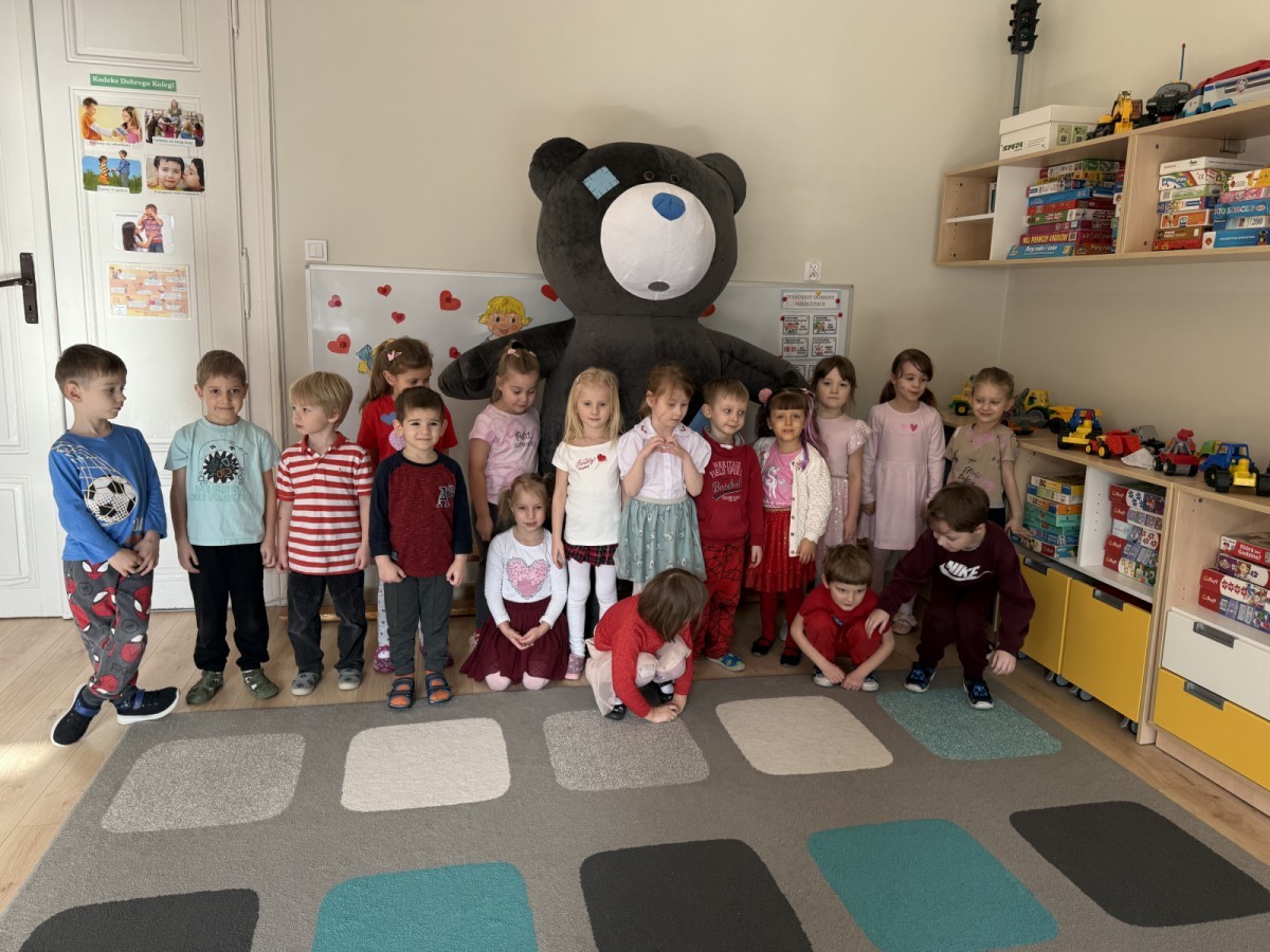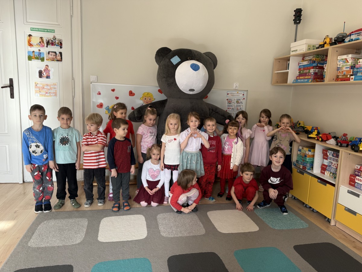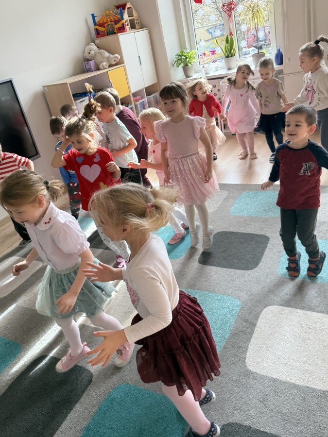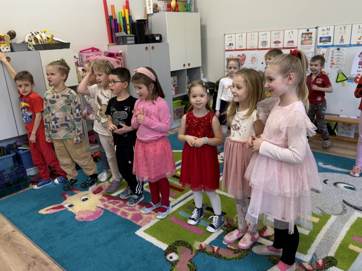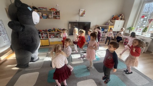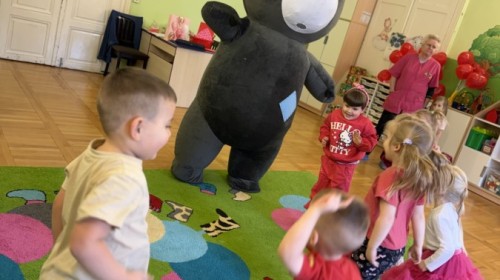 Walentynki upłynęły nam w radosnej i serdecznej atmosferze. Dzieci korzystały z poczty walentynkowej, tańczyły przy ulubionej muzyce i brały udział w wielu zabawach integracyjnych. Dużą niespodzianką była wizyta Misia, który chętnie bawił się z przedszkolakami i pozował do zdjęć. Na zakończenie każde dziecko otrzymało drobny upominek. To był dzień pełen uśmiechu, życzliwości i wspólnej zabawy.