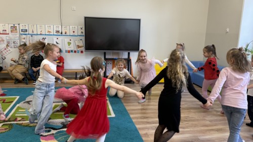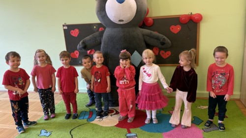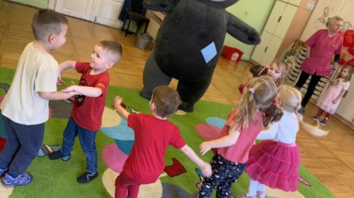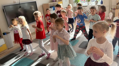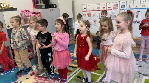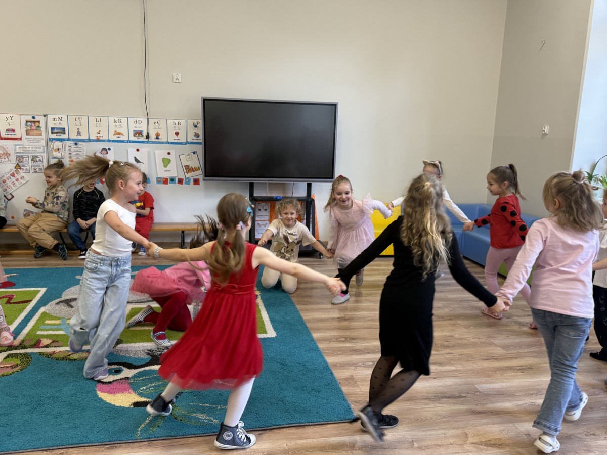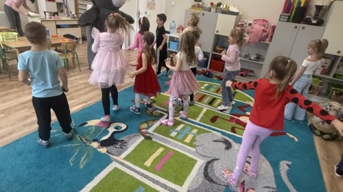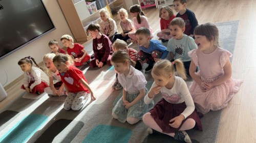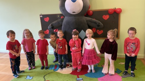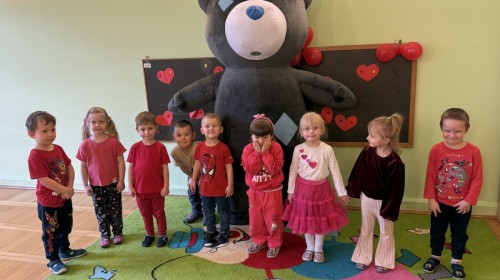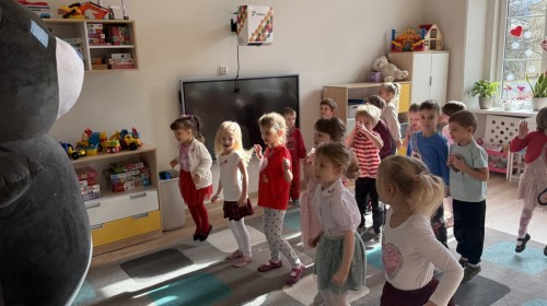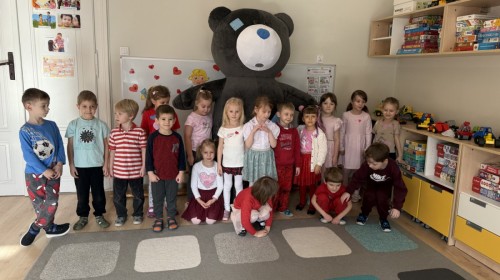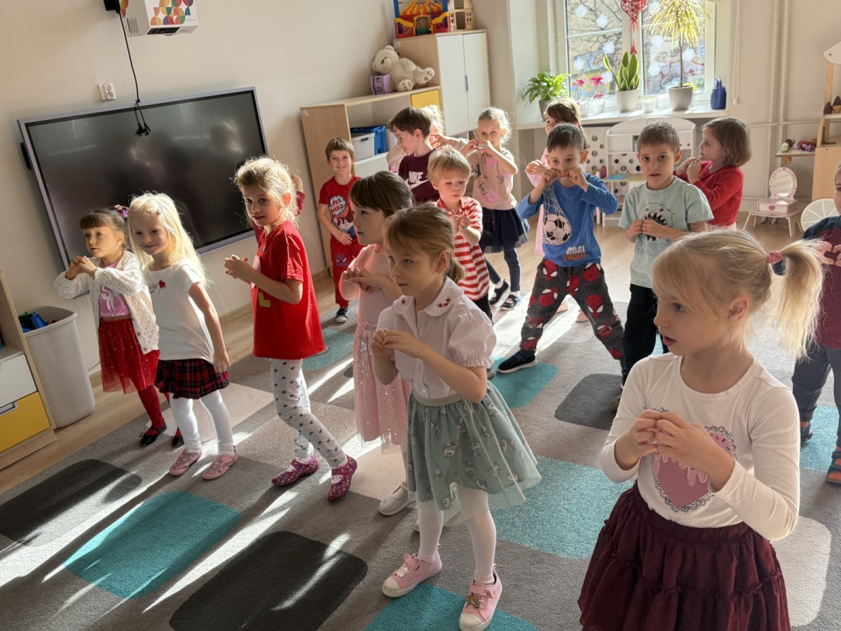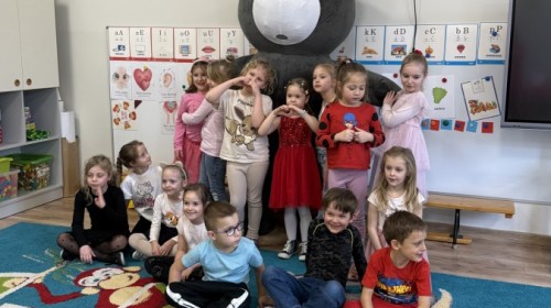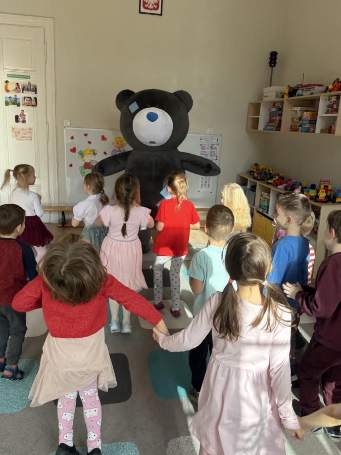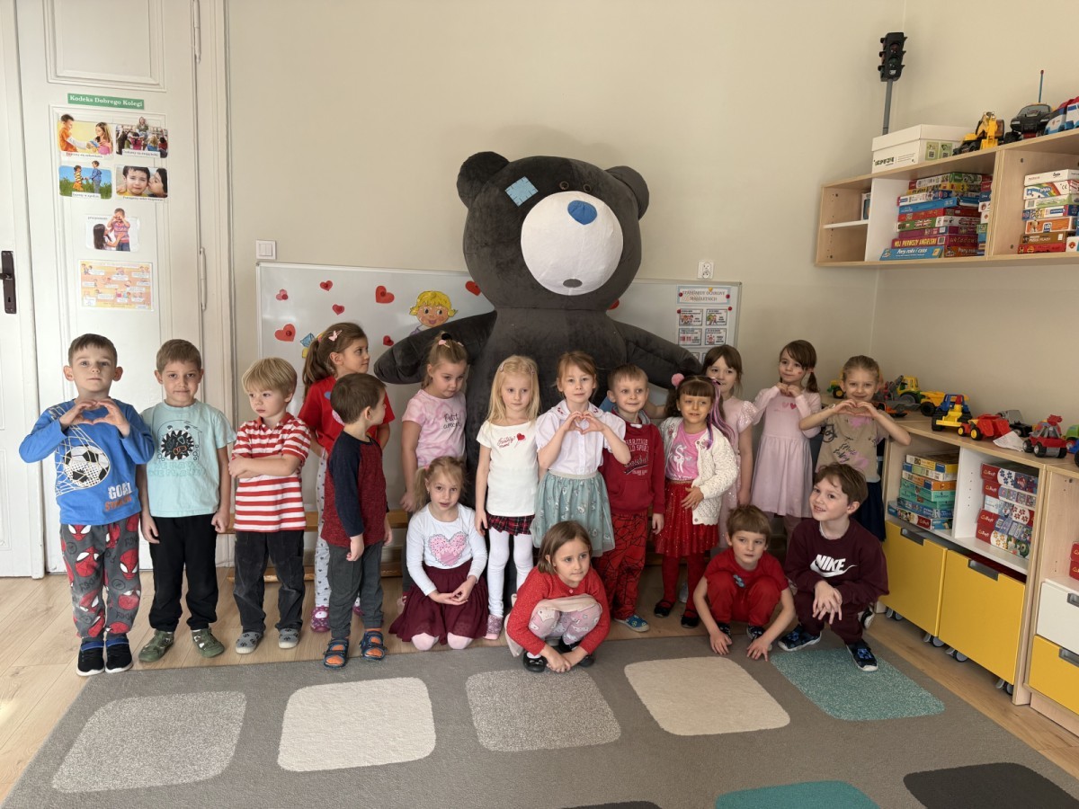 Walentynki upłynęły nam w radosnej i serdecznej atmosferze. Dzieci korzystały z poczty walentynkowej, tańczyły przy ulubionej muzyce i brały udział w wielu zabawach integracyjnych. Dużą niespodzianką była wizyta Misia, który chętnie bawił się z przedszkolakami i pozował do zdjęć. Na zakończenie każde dziecko otrzymało drobny upominek. To był dzień pełen uśmiechu, życzliwości i wspólnej zabawy.