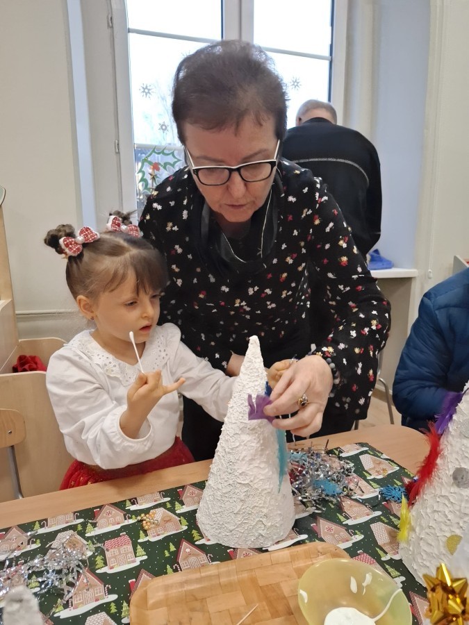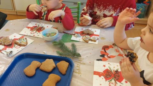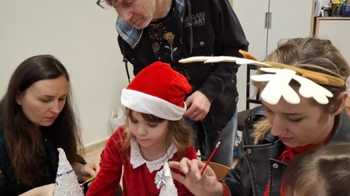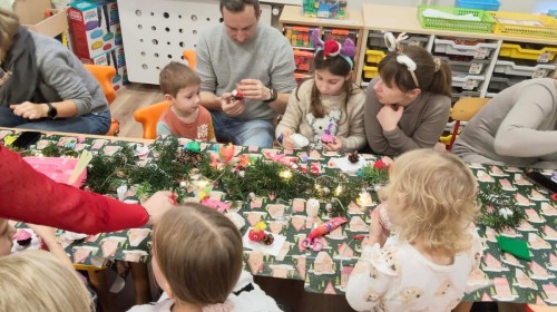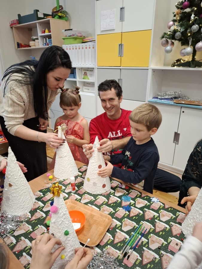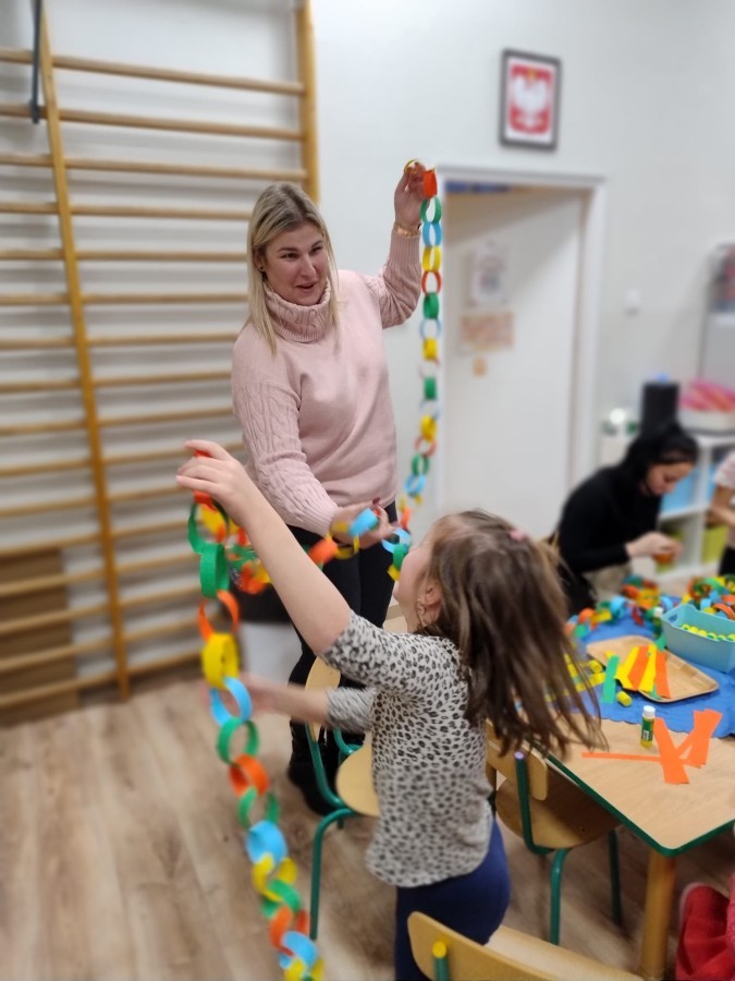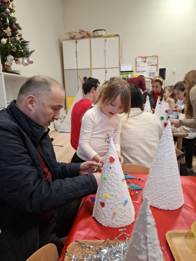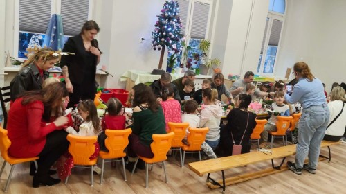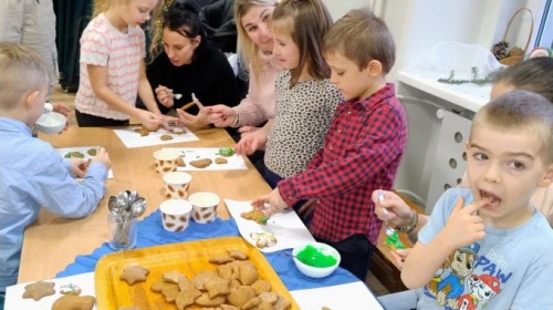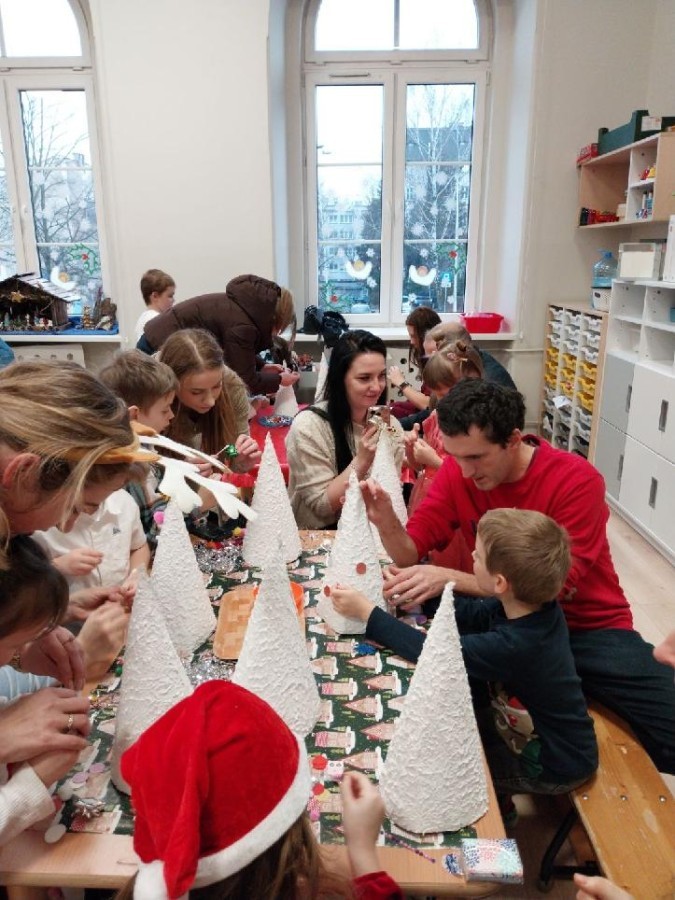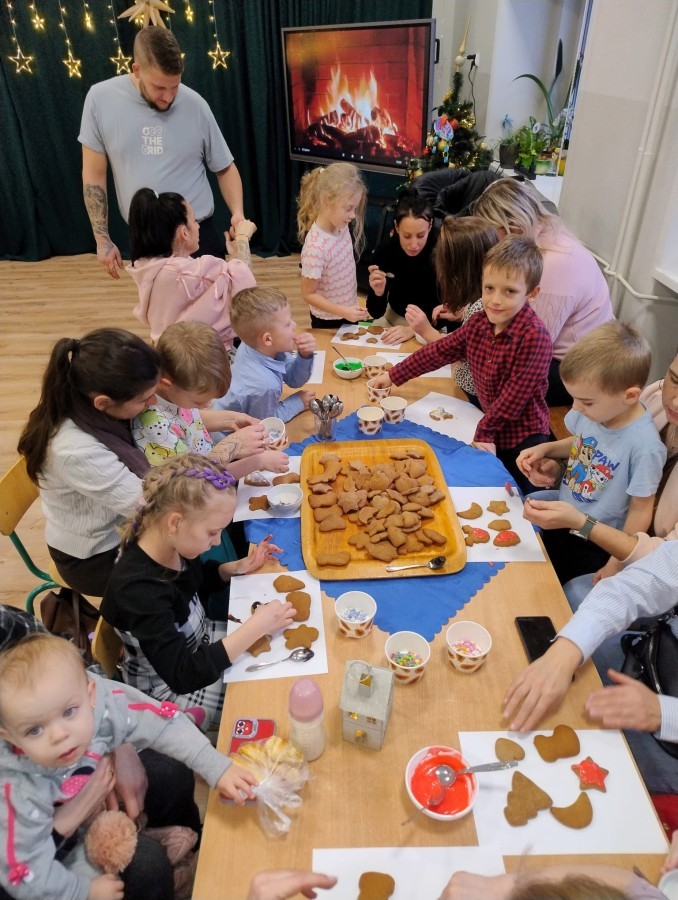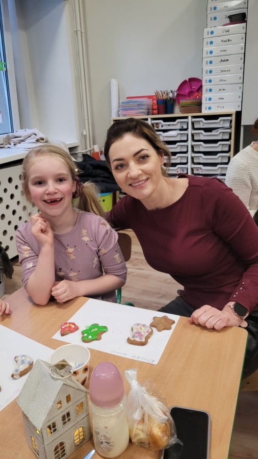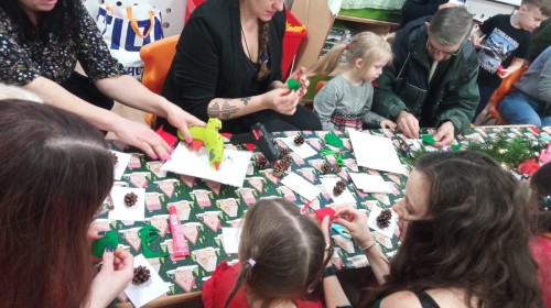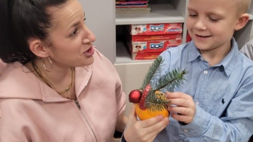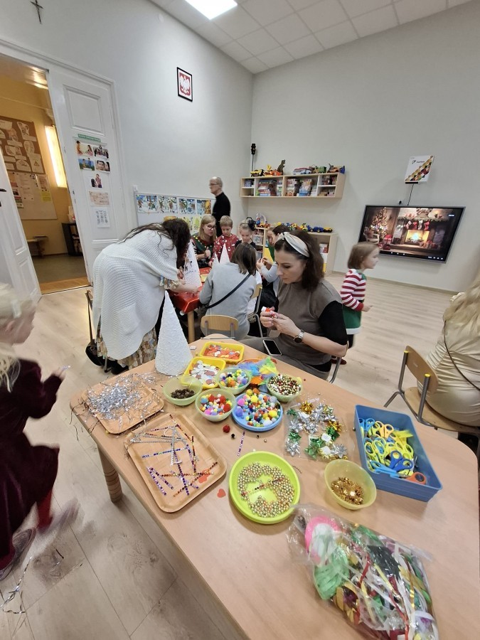 W naszej placówce odbyły się świąteczne warsztaty, które na długo pozostaną w pamięci dzieci i rodziców. Spotkanie rozpoczęło się wspólnym śpiewaniem piosenek i kolęd, tworząc ciepłą, świąteczną atmosferę. Następnie uczestnicy wzięli udział w twórczych aktywnościach – ozdabiali pomarańcze goździkami, dekorowali pierniczki, malowali gipsowe choinki oraz wykonywali papierowe łańcuchy i ludziki z szyszek. Był to czas radości, rozmów i wspólnego tworzenia, który sprzyjał integracji i pozwolił poczuć prawdziwego ducha nadchodzących świąt.