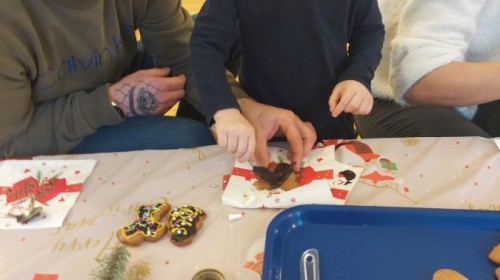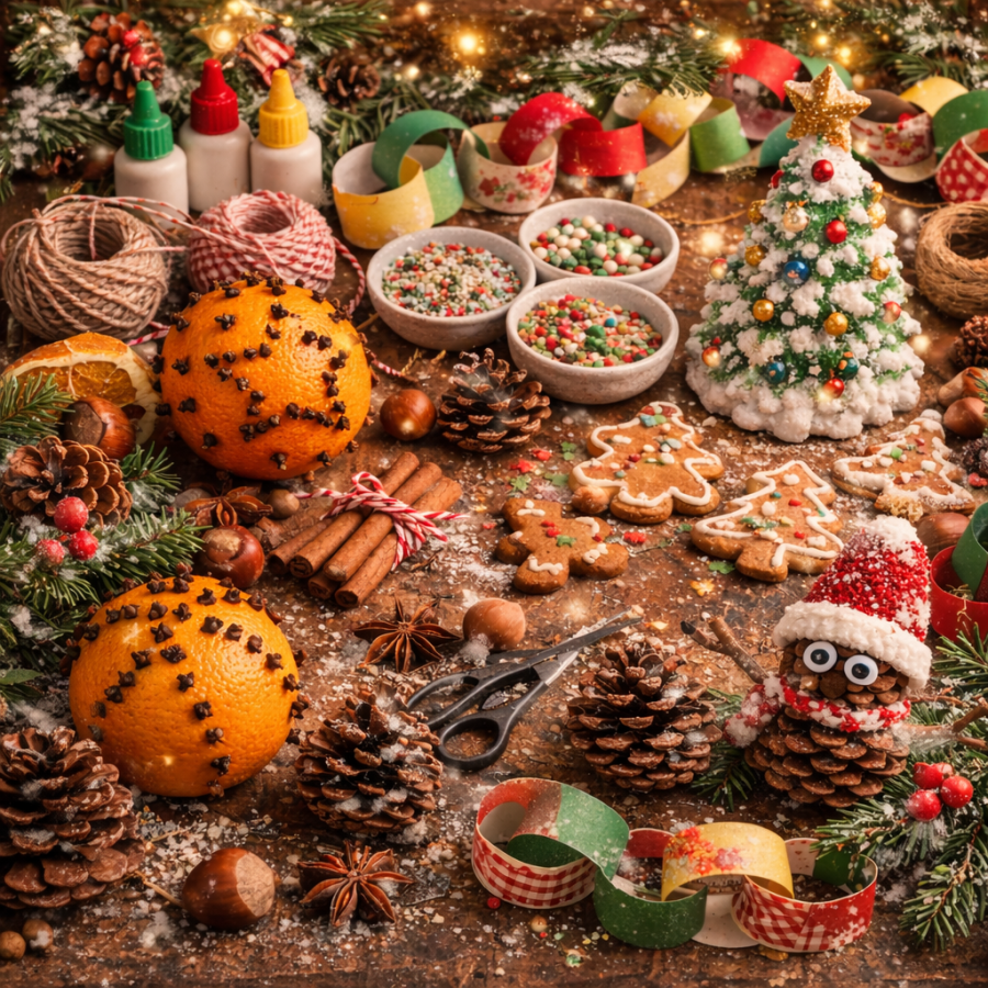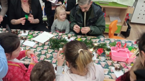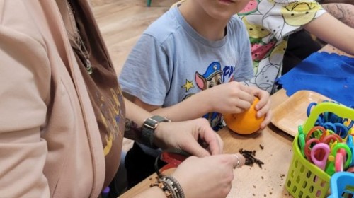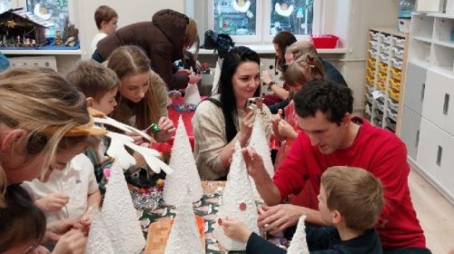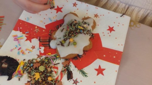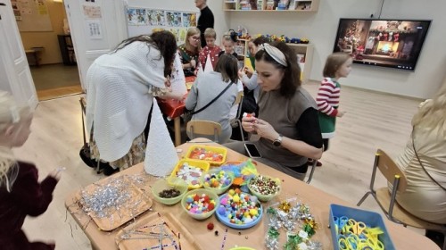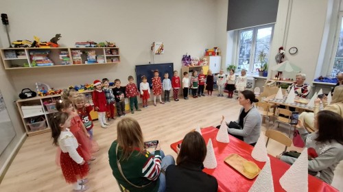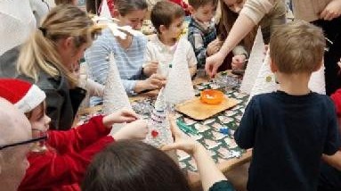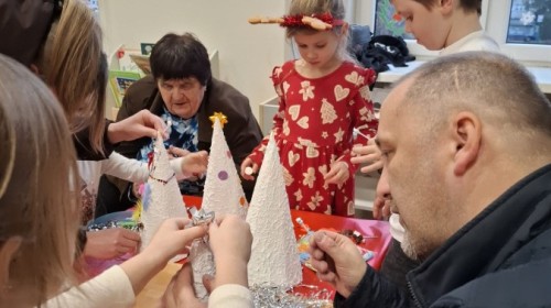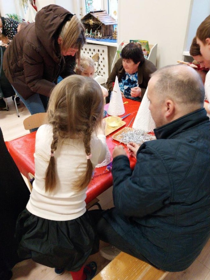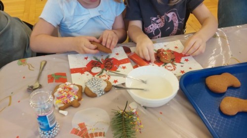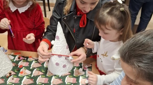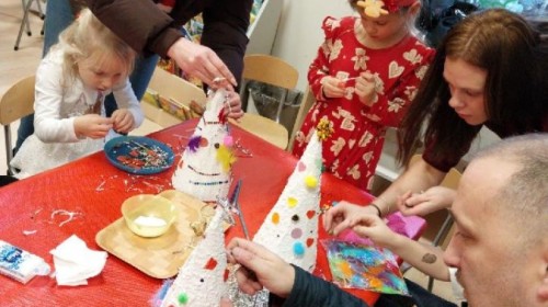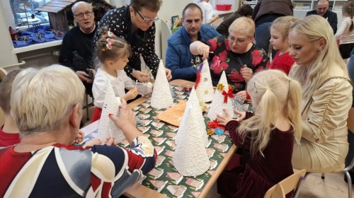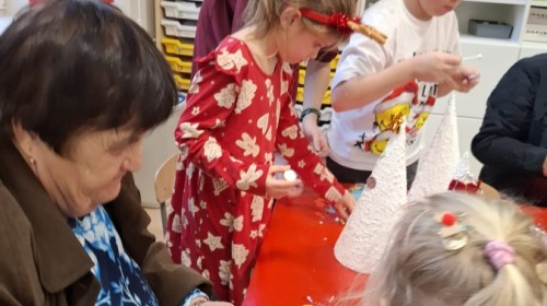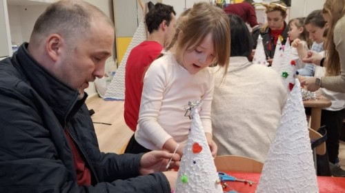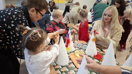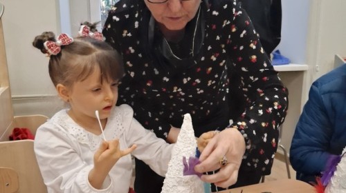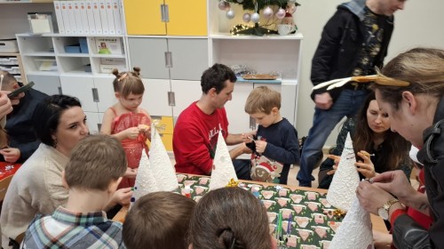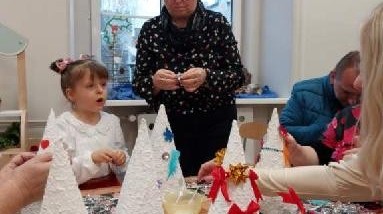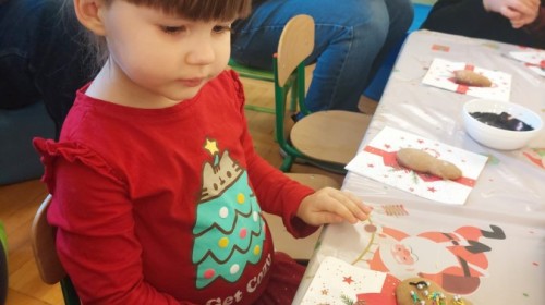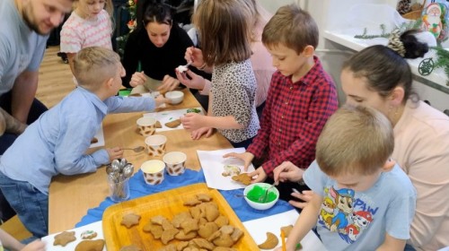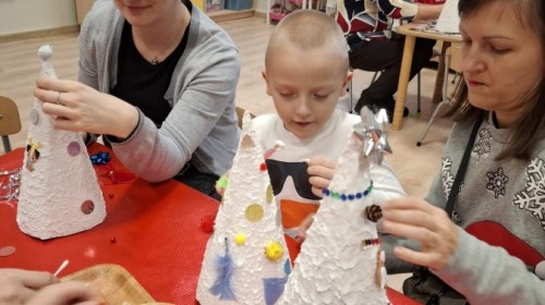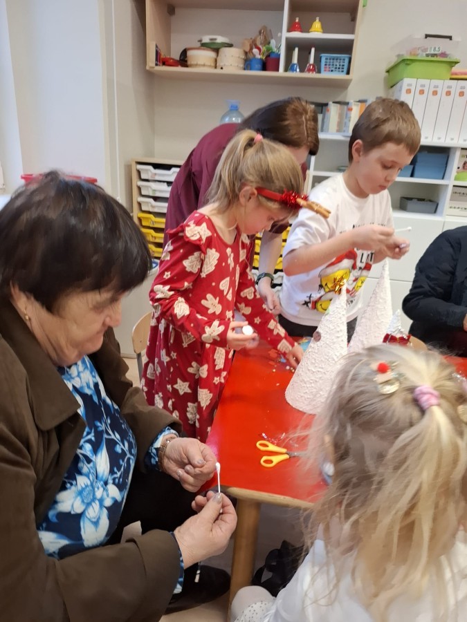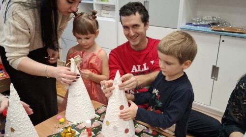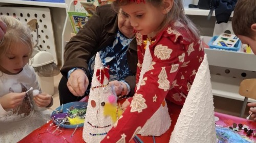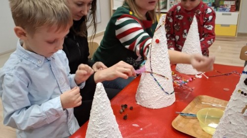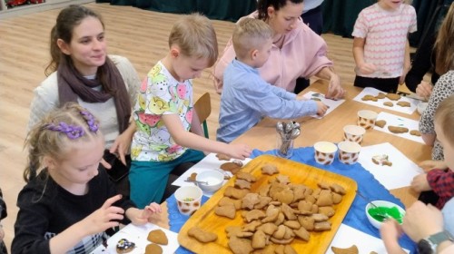 W naszej placówce odbyły się świąteczne warsztaty, które na długo pozostaną w pamięci dzieci i rodziców. Spotkanie rozpoczęło się wspólnym śpiewaniem piosenek i kolęd, tworząc ciepłą, świąteczną atmosferę. Następnie uczestnicy wzięli udział w twórczych aktywnościach – ozdabiali pomarańcze goździkami, dekorowali pierniczki, malowali gipsowe choinki oraz wykonywali papierowe łańcuchy i ludziki z szyszek. Był to czas radości, rozmów i wspólnego tworzenia, który sprzyjał integracji i pozwolił poczuć prawdziwego ducha nadchodzących świąt.