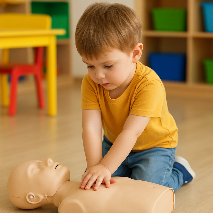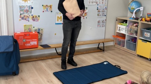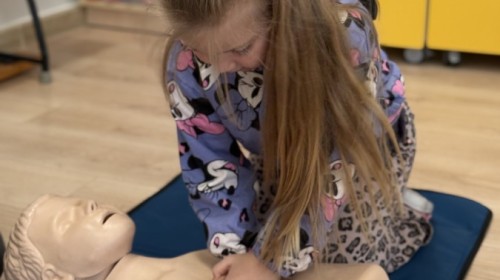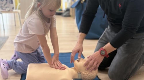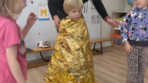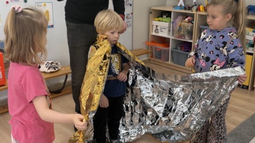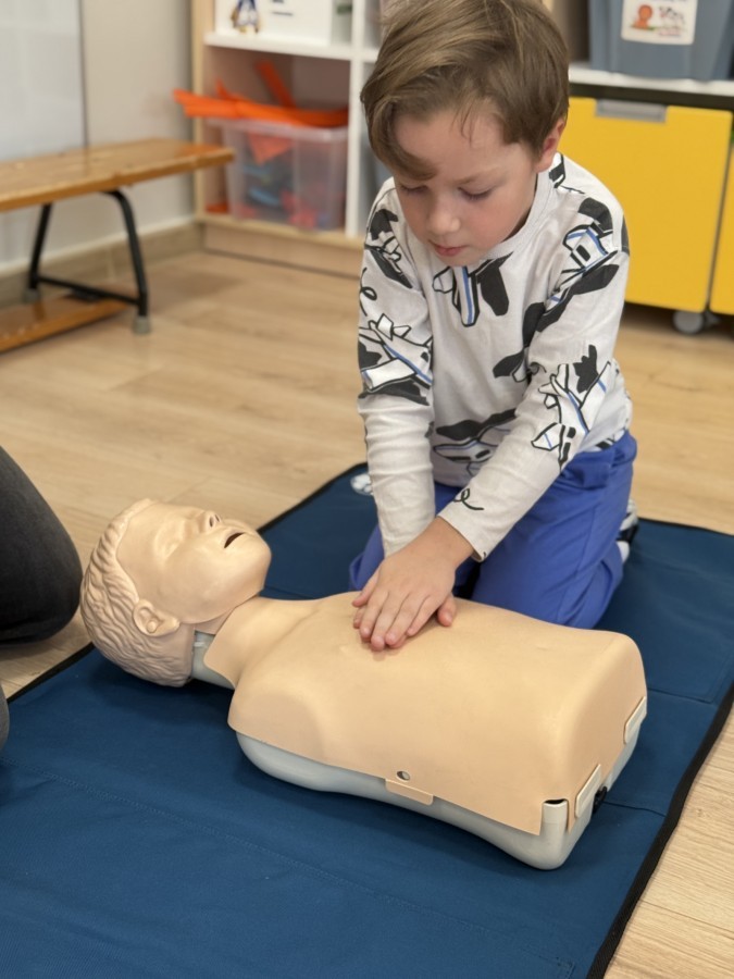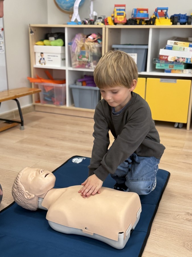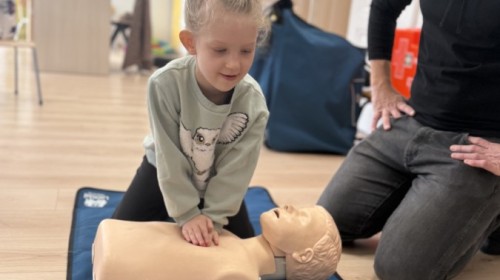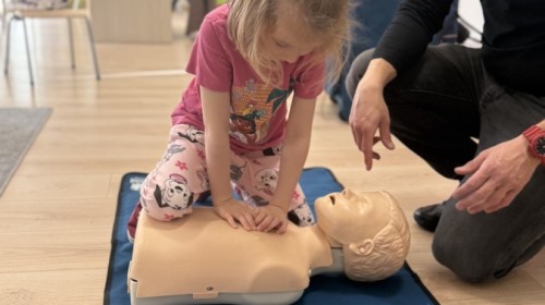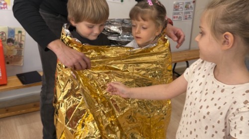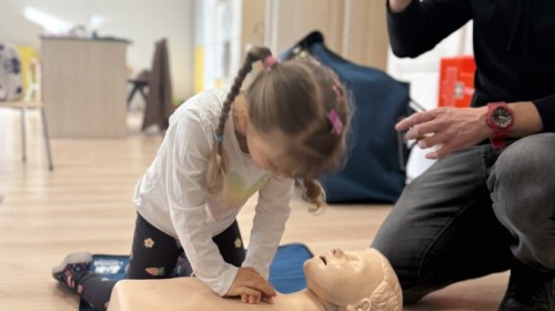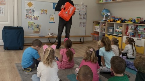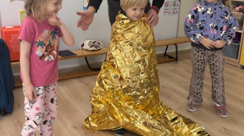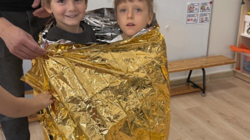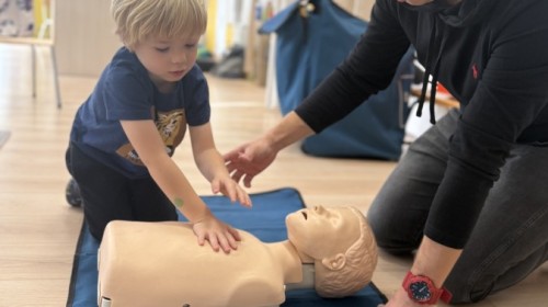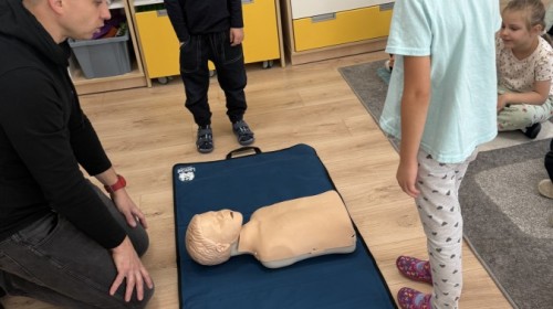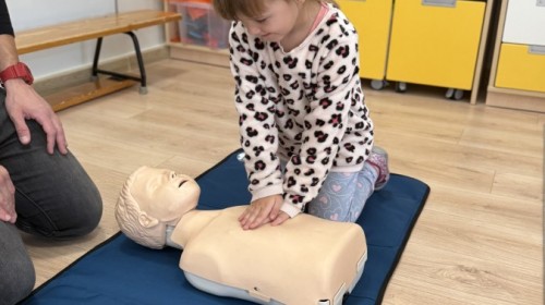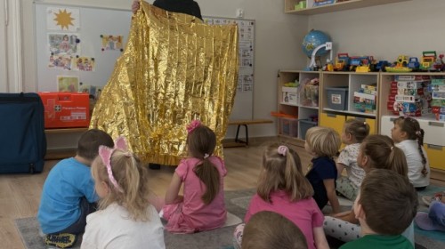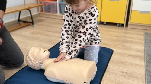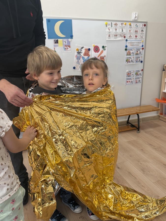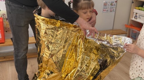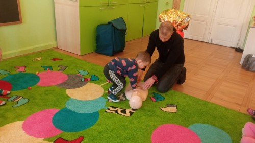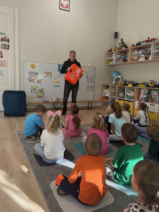 Podczas warsztatów przedszkolaki dowiedziały się, jak wezwać pomoc, co powiedzieć, dzwoniąc pod numer alarmowy 112, oraz jak zachować się, gdy ktoś potrzebuje pomocy. Dzieci z ogromnym zaangażowaniem ćwiczyły udzielanie pierwszej pomocy na fantomie, a także uczyły się, jak okryć poszkodowaną osobę kocem termicznym.