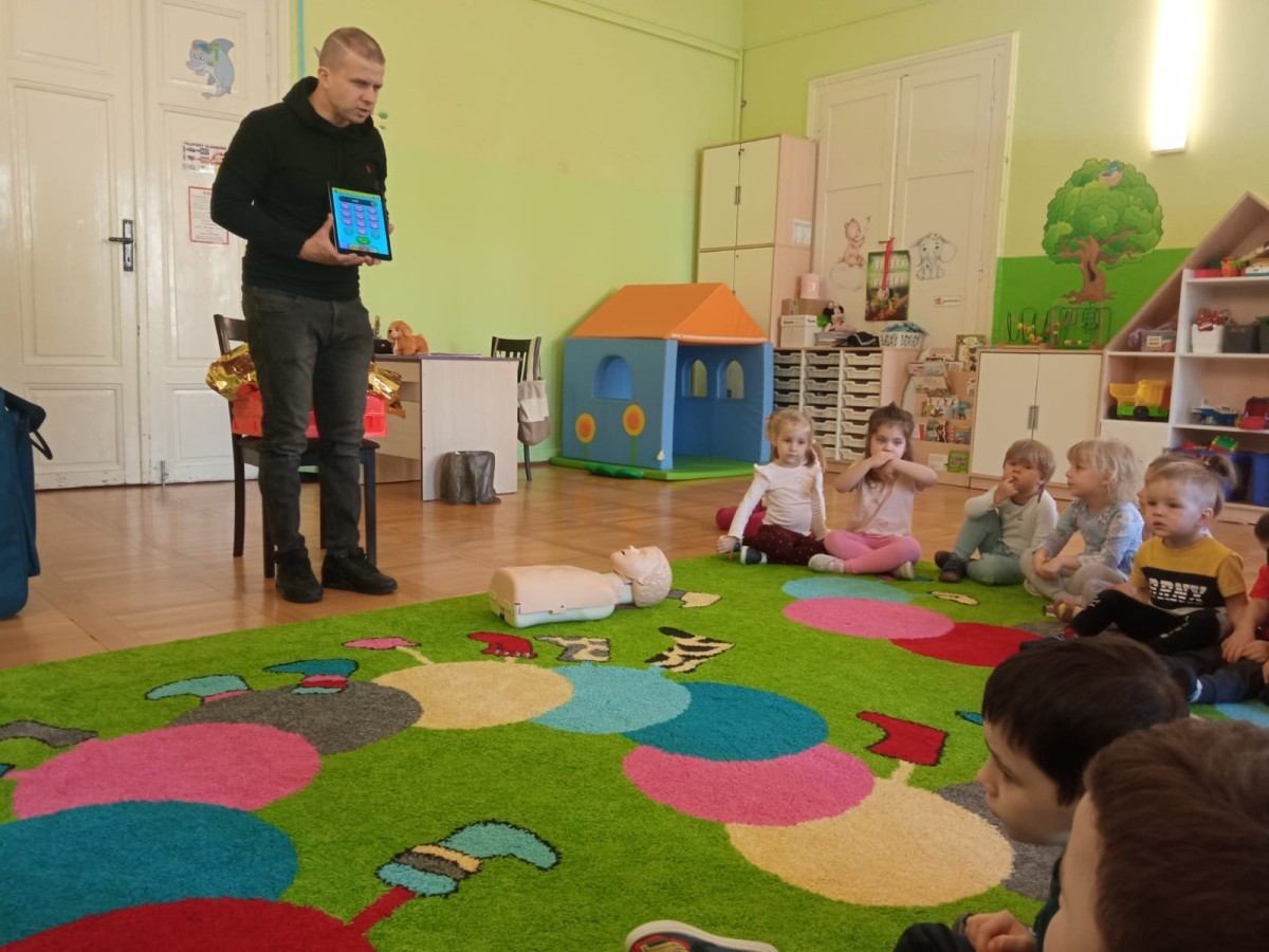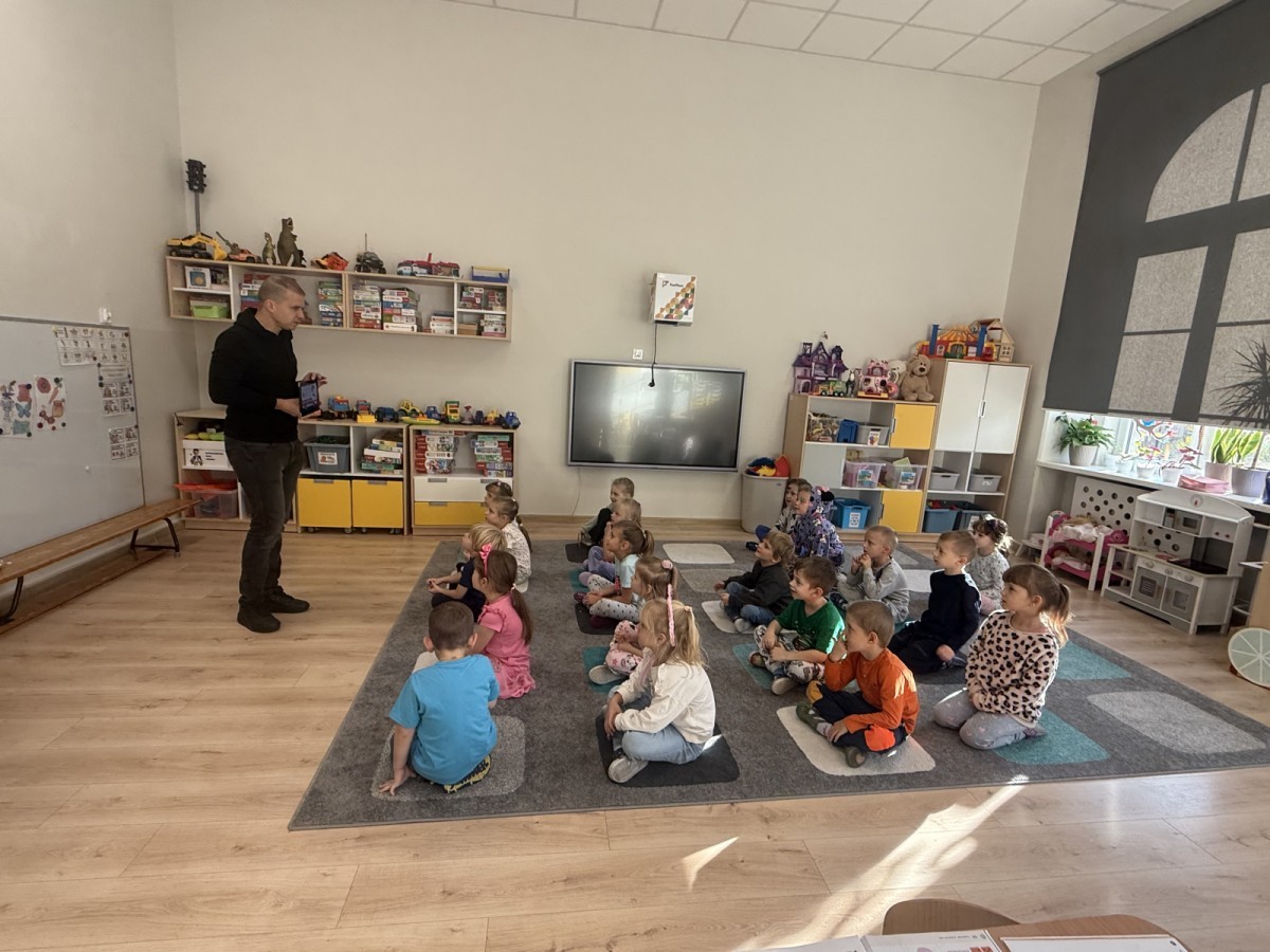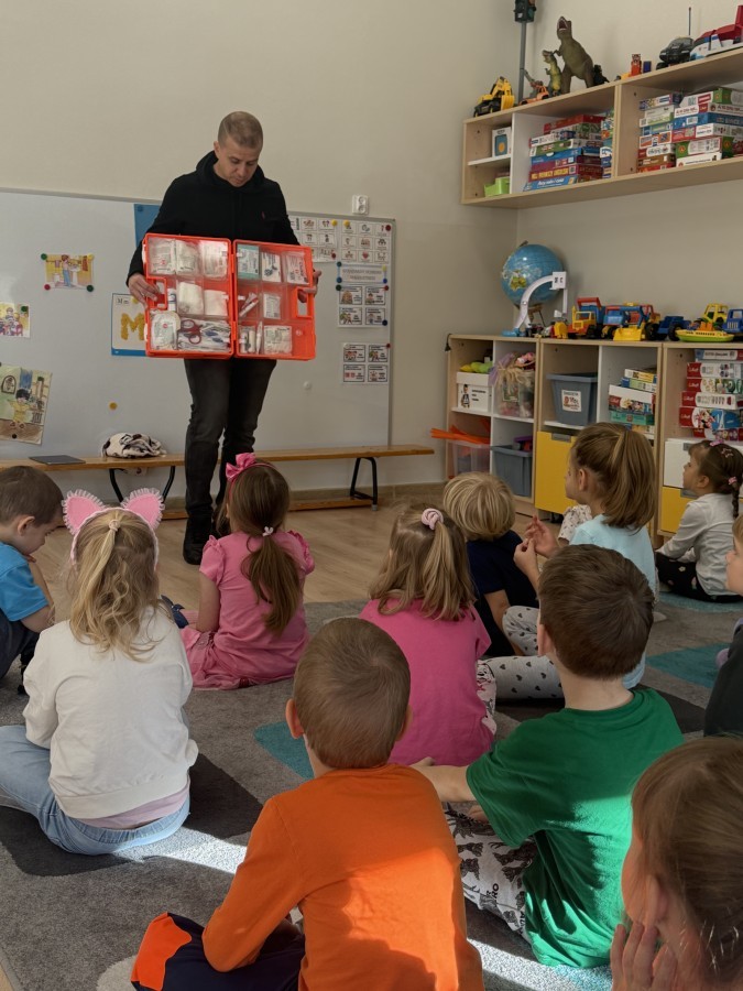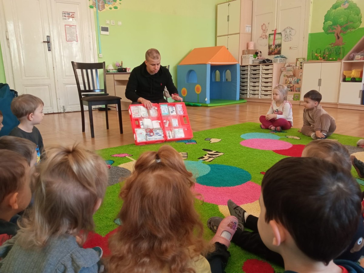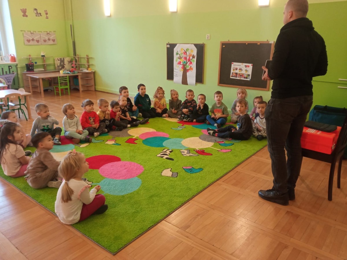 W naszym przedszkolu odbyło się niezwykle ciekawe i pouczające spotkanie z ratownikiem medycznym, który na co dzień pracuje również jako strażak. Nasz gość w bardzo przystępny sposób opowiedział dzieciom o swojej pracy, i wyjaśnił, jak ważna jest szybka reakcja w sytuacjach zagrożenia.