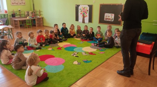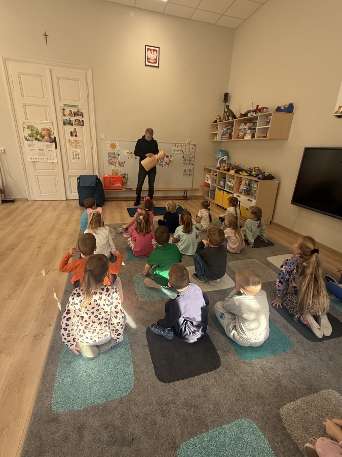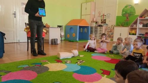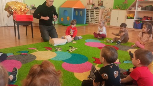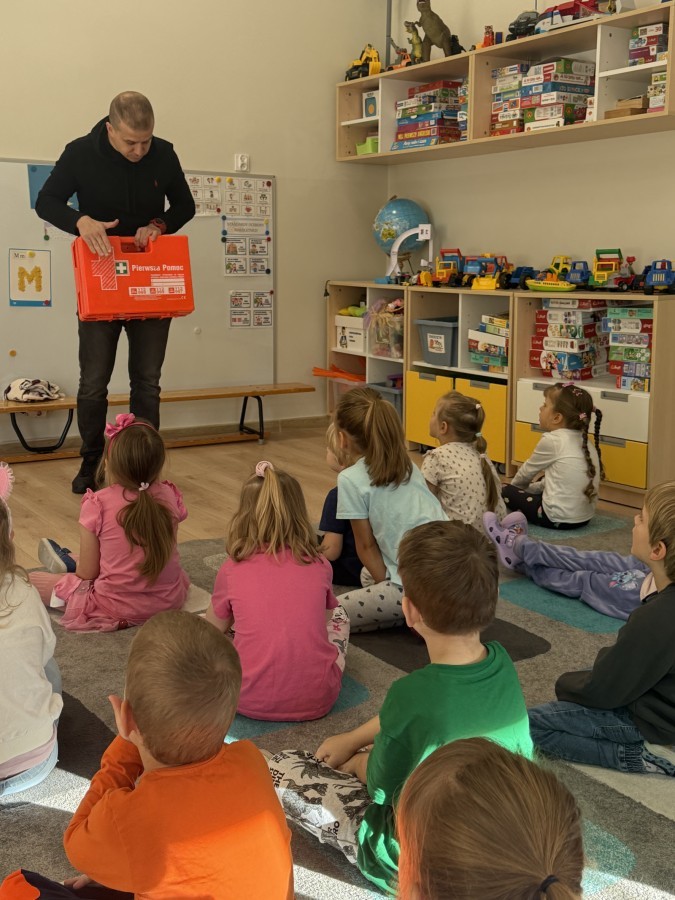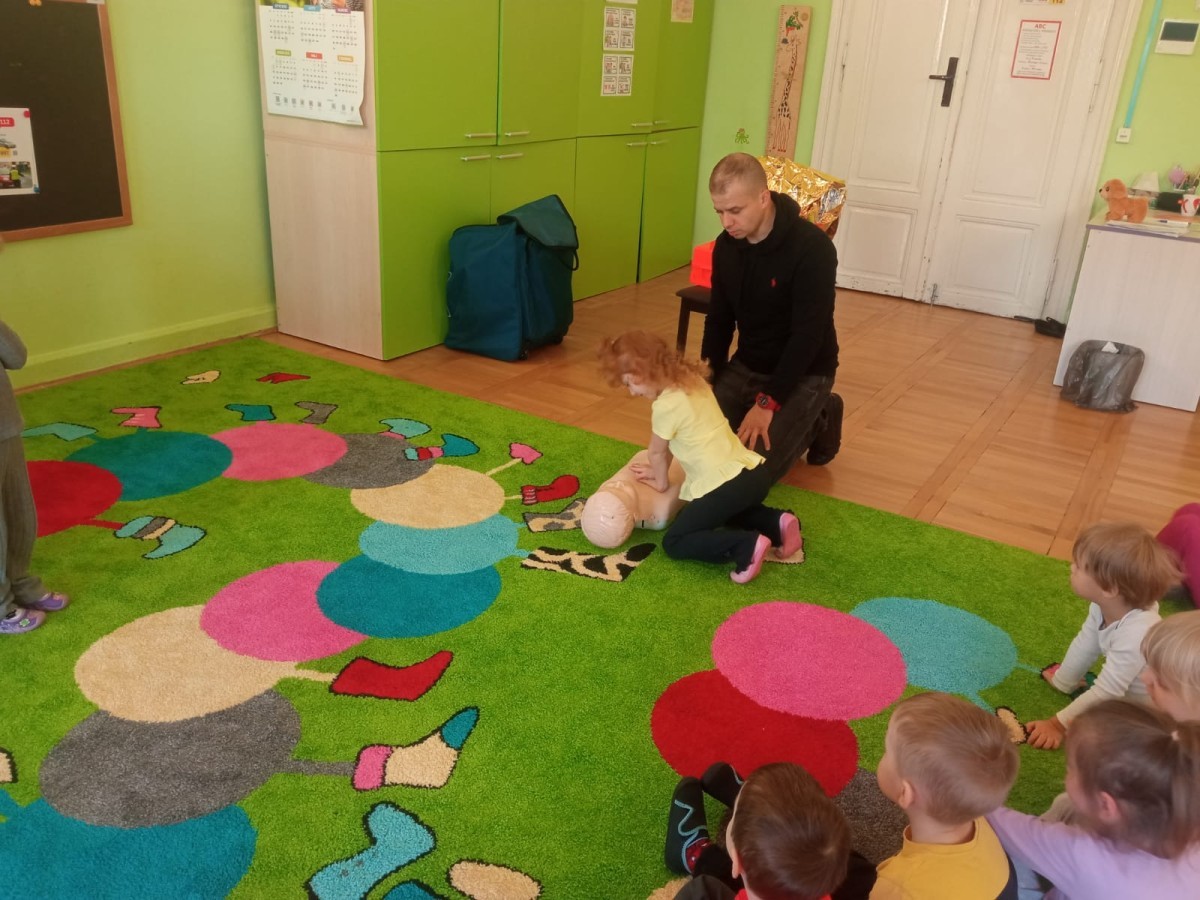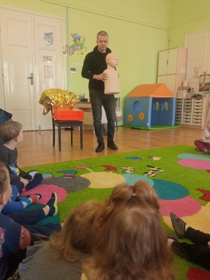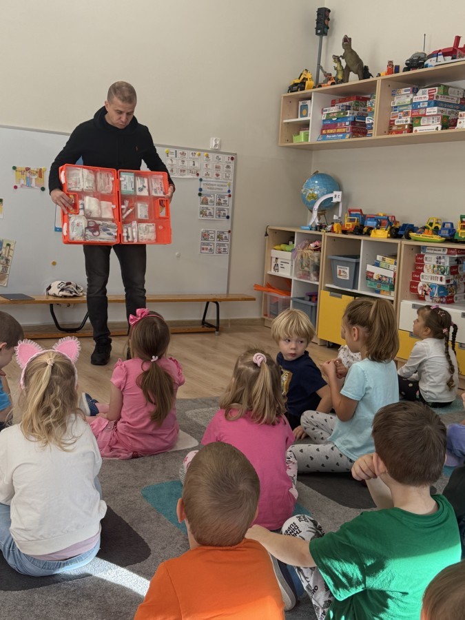 W naszym przedszkolu odbyło się niezwykle ciekawe i pouczające spotkanie z ratownikiem medycznym, który na co dzień pracuje również jako strażak. Nasz gość w bardzo przystępny sposób opowiedział dzieciom o swojej pracy, i wyjaśnił, jak ważna jest szybka reakcja w sytuacjach zagrożenia.