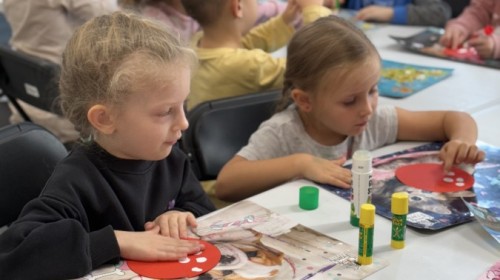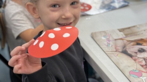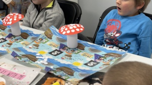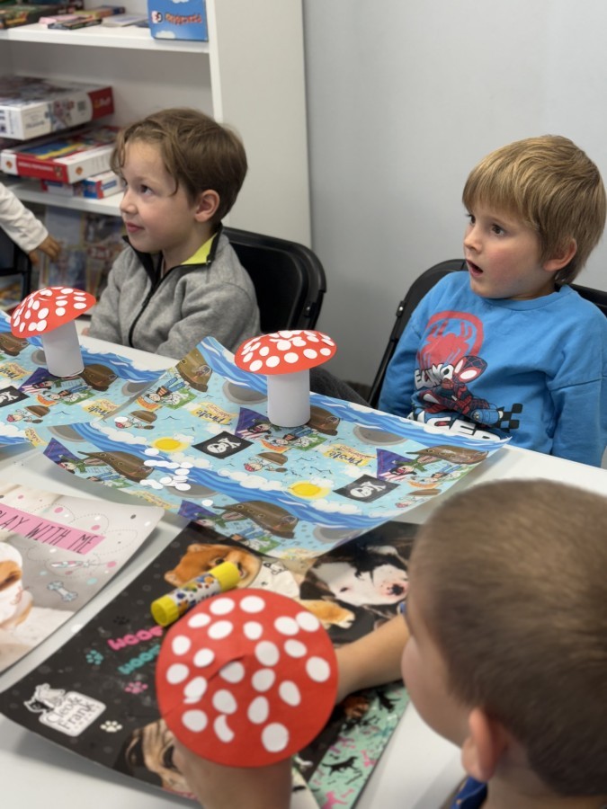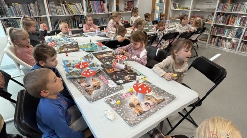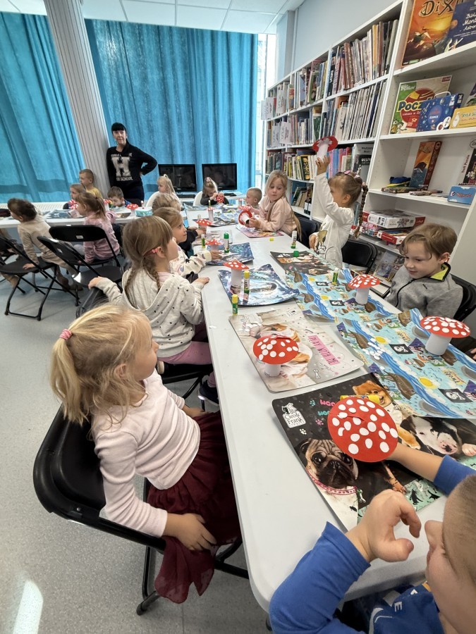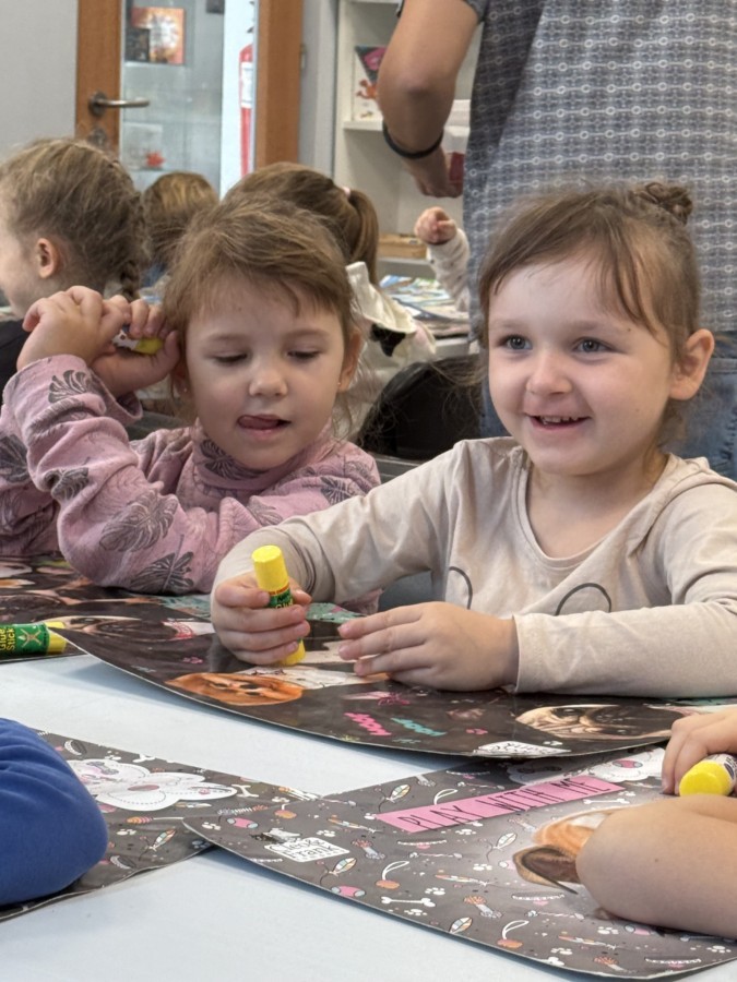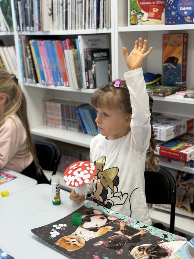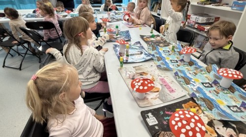 Teatrzyk ten to tradycyjna japońska forma opowiadania historii, w której narrator przedstawia opowieść, wsuwając i wysuwając karty z ilustracjami w drewnianej ramce — przypominającej małą scenę teatralną. Każda karta odpowiada fragmentowi tekstu czytanego przez opowiadacza. Po wysłuchaniu bajki o porach roku i miesiącach, dzieci wykonały pracę plastyczną-przestrzennego papierowego muchomora czerwonego.