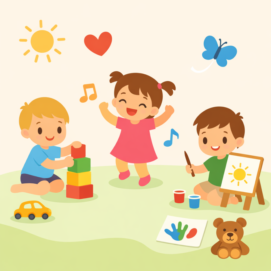 Dbamy o to, aby zajęcia były różnorodne i dostosowane do możliwości najmłodszych – rozwijają mowę, samodzielność, koordynację ruchową oraz umiejętności społeczne. W ciepłej, pełnej akceptacji atmosferze dzieci uczą się współpracy, budują poczucie bezpieczeństwa i z radością podejmują nowe wyzwania – a wszystko w rytmie dziecięcej ciekawości i uśmiechu.