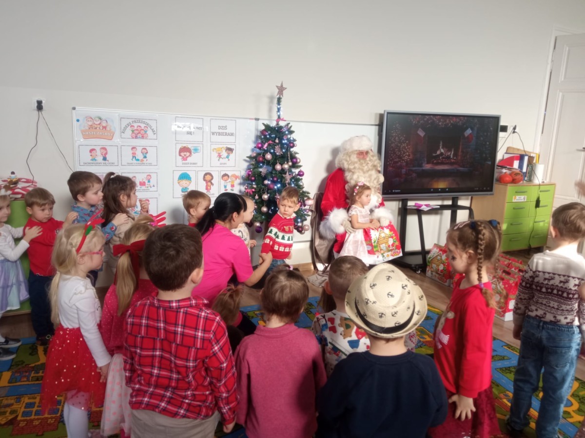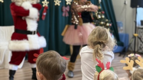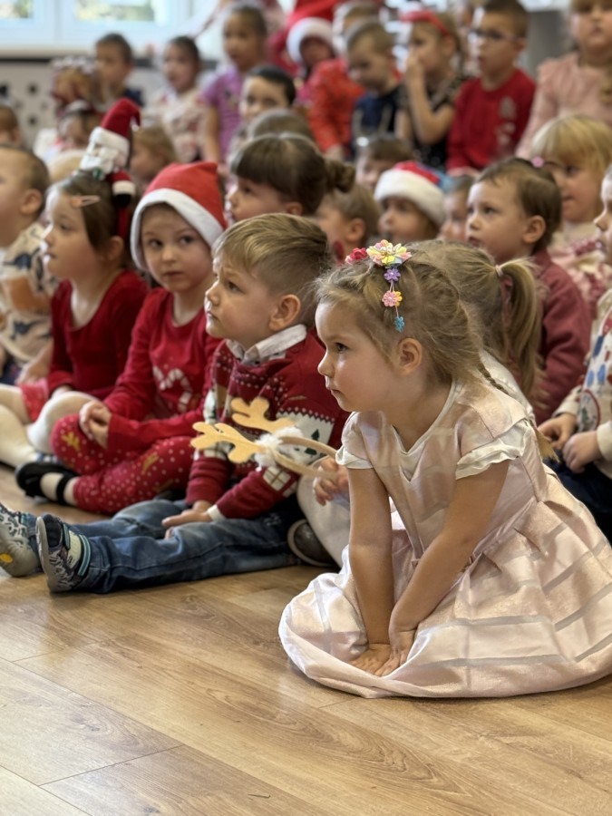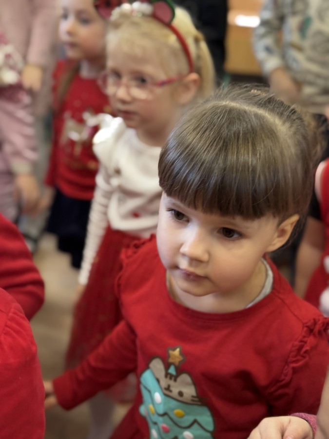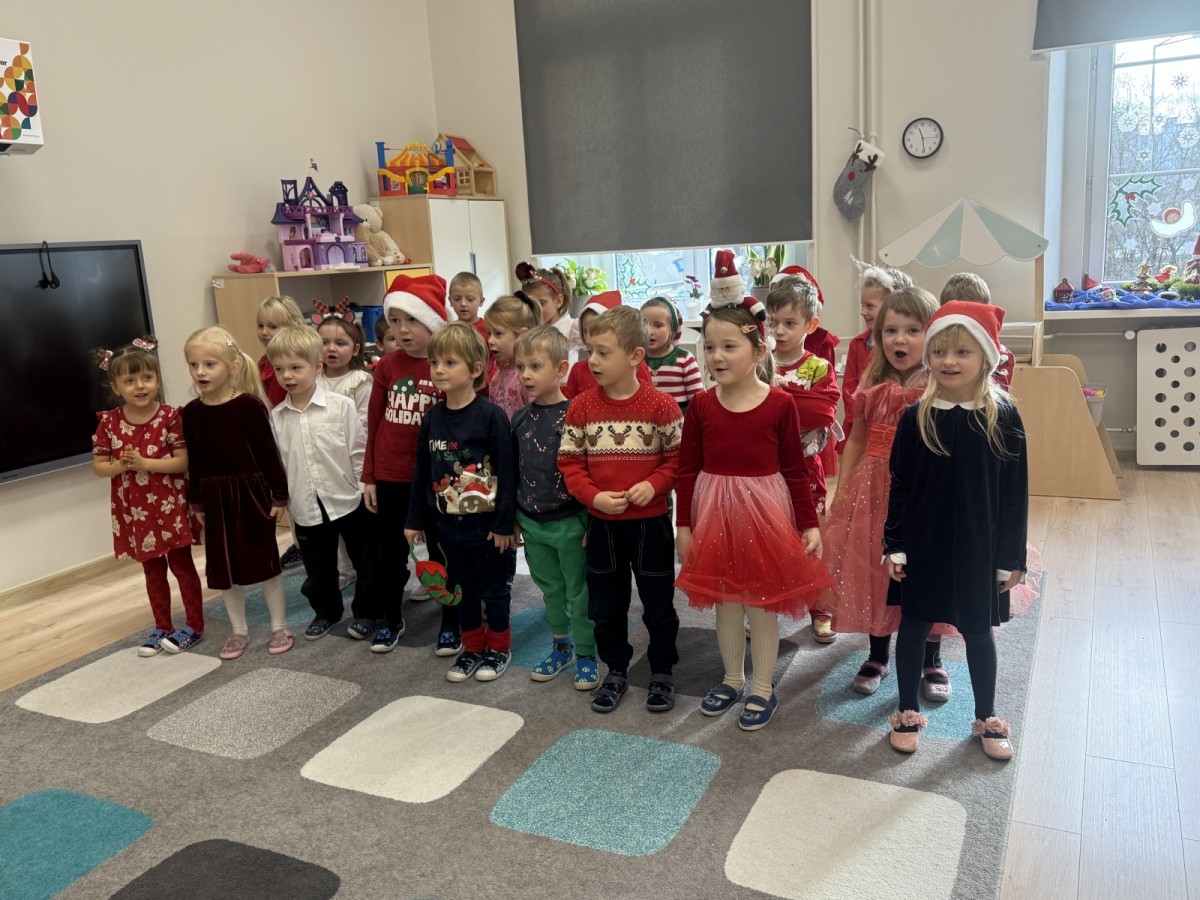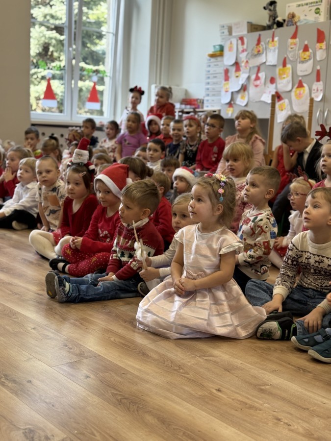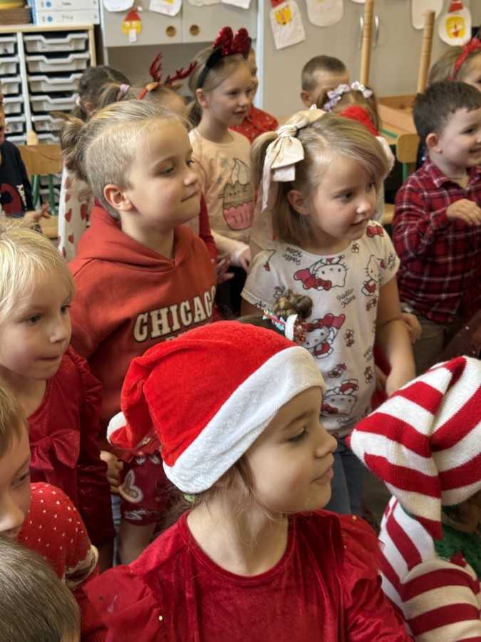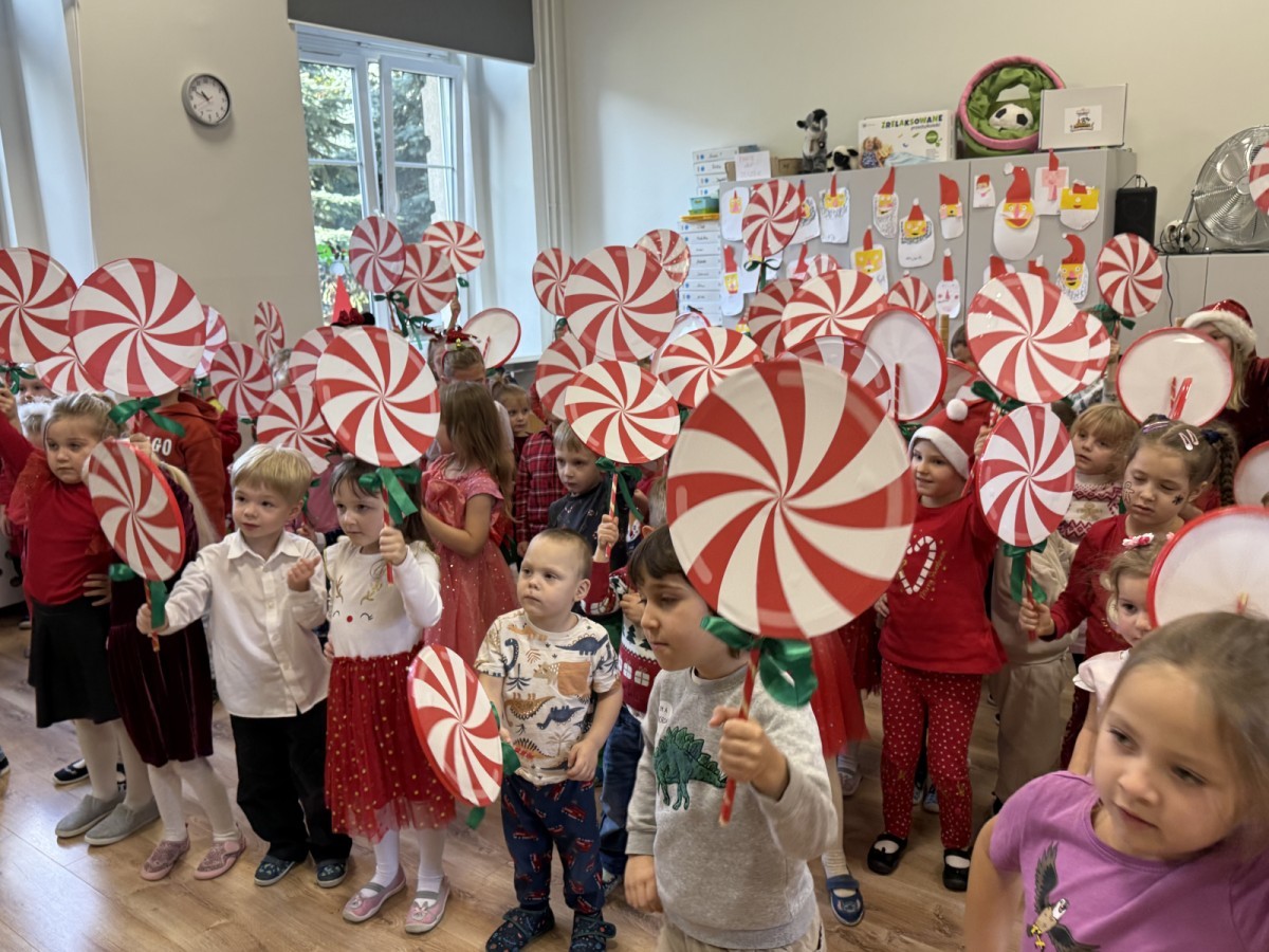 04.12 w naszym przedszkolu wydarzyło się coś naprawdę magicznego! Od samego rana dzieci z niecierpliwością wypatrywały wyjątkowego gościa – i wreszcie przybył Święty Mikołaj! Towarzyszył mu niezwykły przyjaciel – renifer, który okazał się prawdziwą gwiazdą disco! Spotkanie rozpoczęło się od radosnych okrzyków i świątecznych piosenek. Renifer rozkręcił zabawę niczym prawdziwy DJ – były taneczne animacje, wesoła muzyka i zabawy, w których dzieci brały udział z ogromnym entuzjazmem. Wspólnie tańczyliśmy, klaskaliśmy w rytm muzyki i uczyliśmy się śmiesznych układów tanecznych, które wywoływały salwy śmiechu. Nie zabrakło również mikołajkowych upominków.