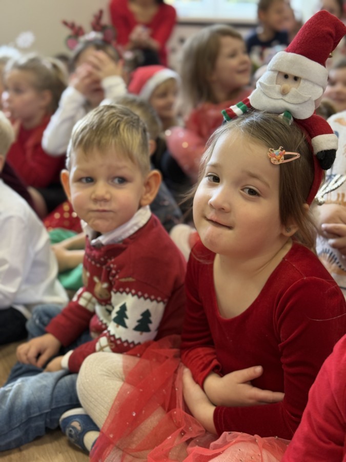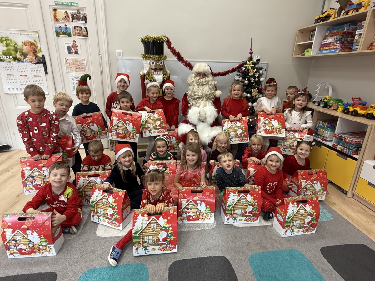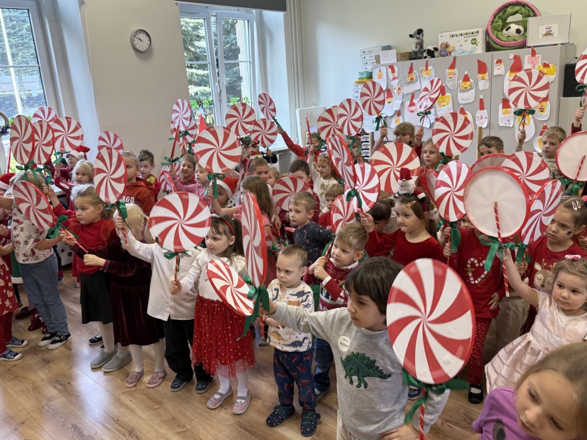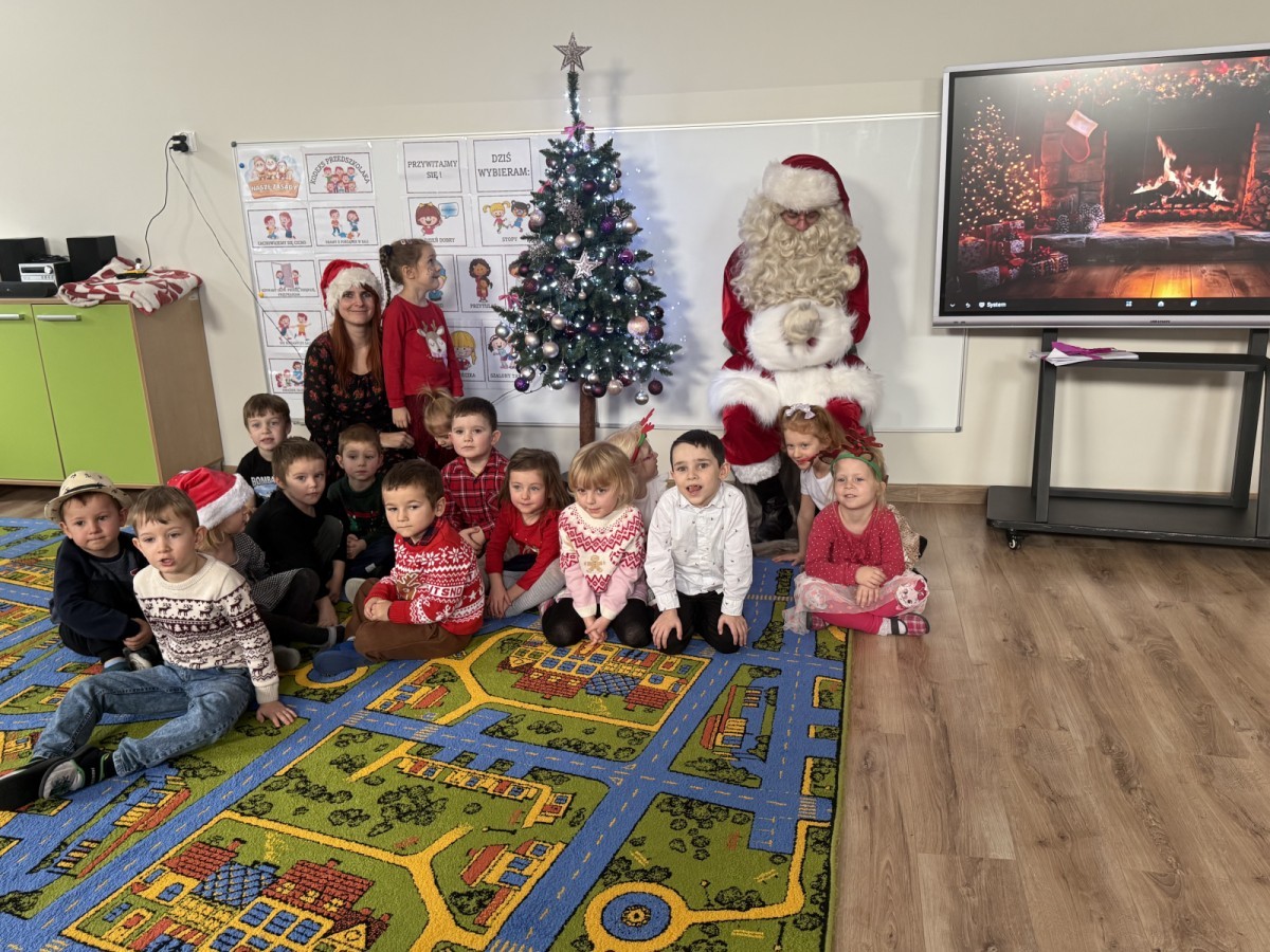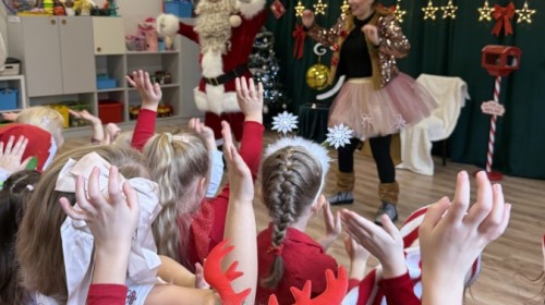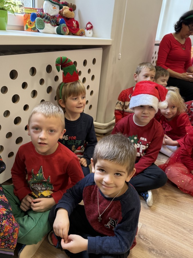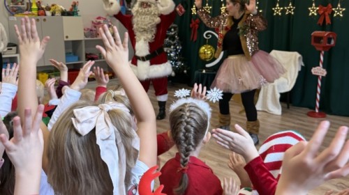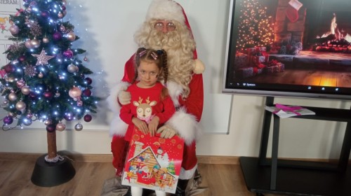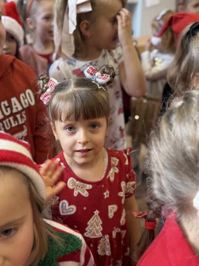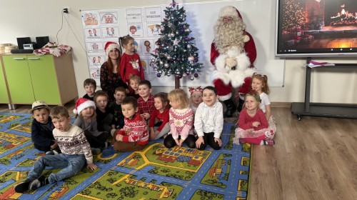 04.12 w naszym przedszkolu wydarzyło się coś naprawdę magicznego! Od samego rana dzieci z niecierpliwością wypatrywały wyjątkowego gościa – i wreszcie przybył Święty Mikołaj! Towarzyszył mu niezwykły przyjaciel – renifer, który okazał się prawdziwą gwiazdą disco! Spotkanie rozpoczęło się od radosnych okrzyków i świątecznych piosenek. Renifer rozkręcił zabawę niczym prawdziwy DJ – były taneczne animacje, wesoła muzyka i zabawy, w których dzieci brały udział z ogromnym entuzjazmem. Wspólnie tańczyliśmy, klaskaliśmy w rytm muzyki i uczyliśmy się śmiesznych układów tanecznych, które wywoływały salwy śmiechu. Nie zabrakło również mikołajkowych upominków.