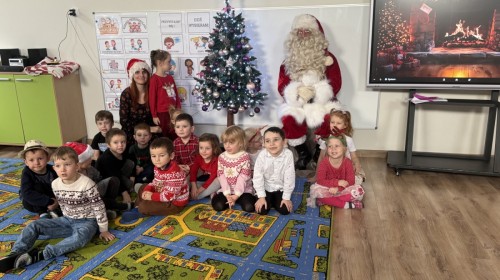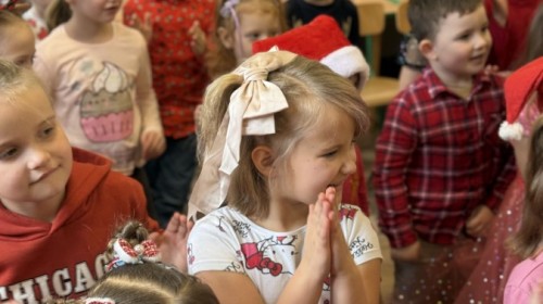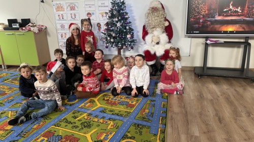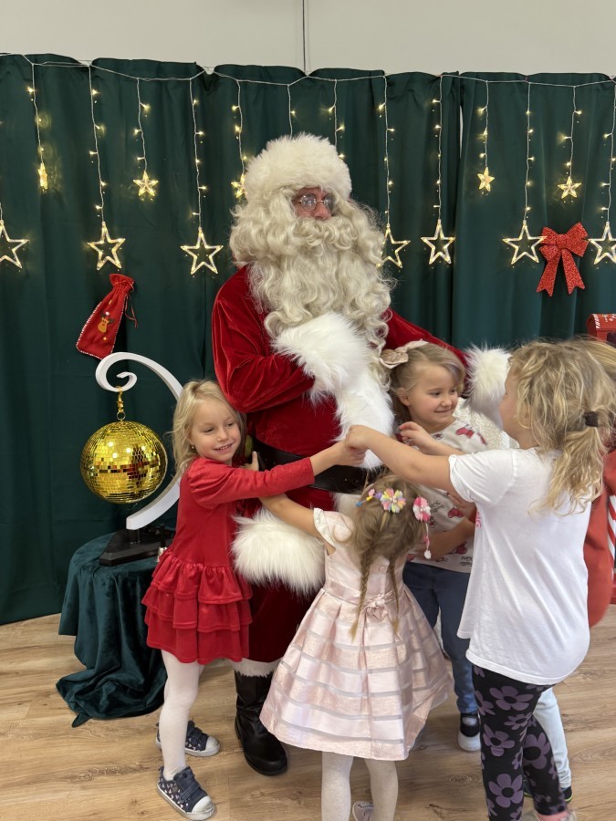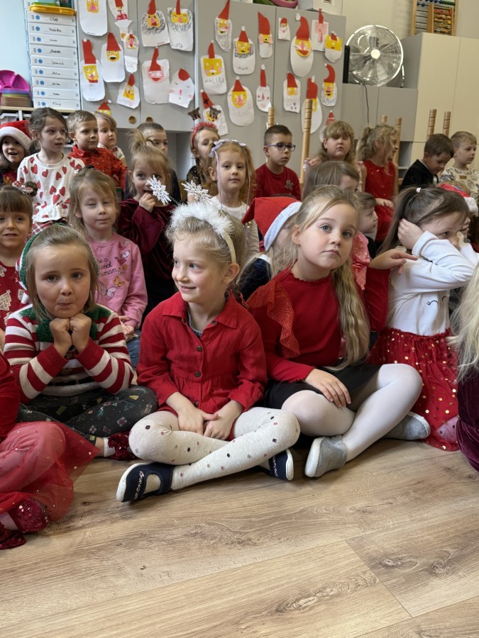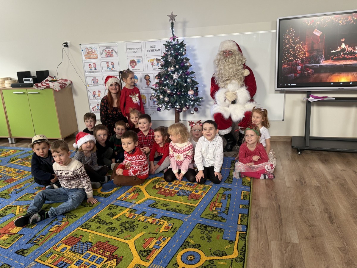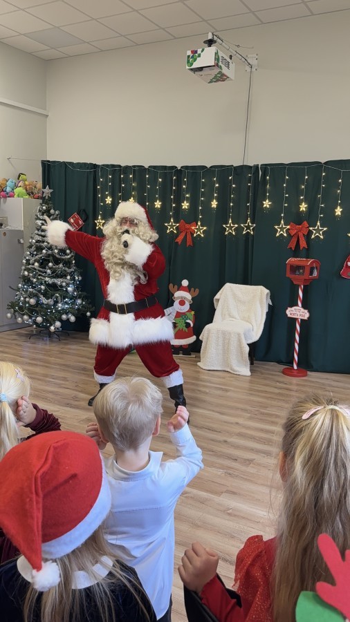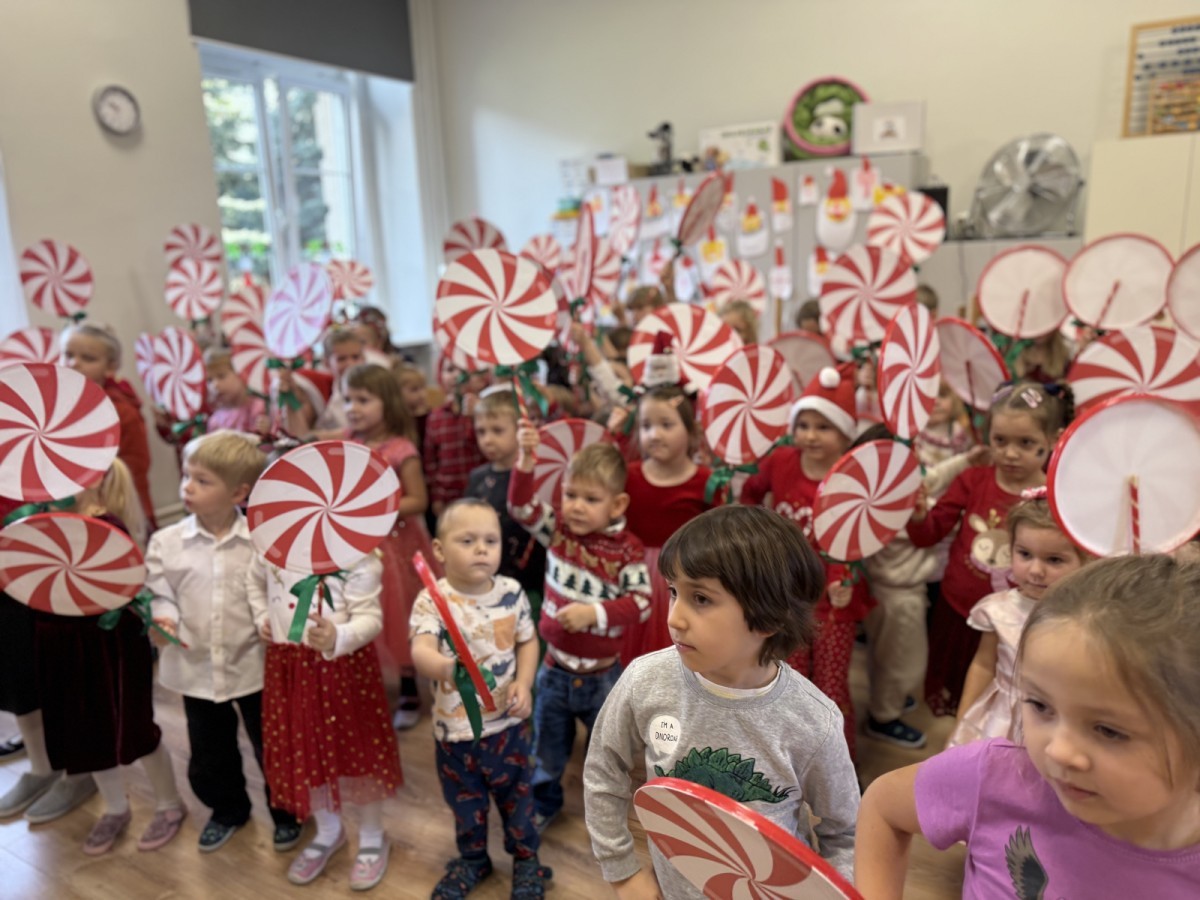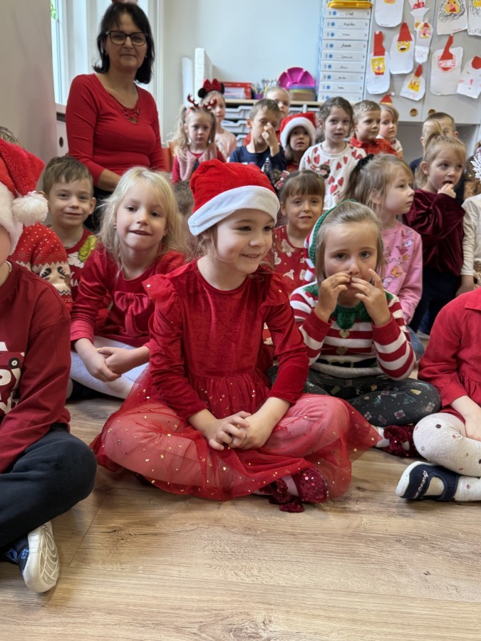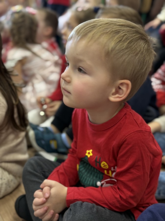 04.12 w naszym przedszkolu wydarzyło się coś naprawdę magicznego! Od samego rana dzieci z niecierpliwością wypatrywały wyjątkowego gościa – i wreszcie przybył Święty Mikołaj! Towarzyszył mu niezwykły przyjaciel – renifer, który okazał się prawdziwą gwiazdą disco! Spotkanie rozpoczęło się od radosnych okrzyków i świątecznych piosenek. Renifer rozkręcił zabawę niczym prawdziwy DJ – były taneczne animacje, wesoła muzyka i zabawy, w których dzieci brały udział z ogromnym entuzjazmem. Wspólnie tańczyliśmy, klaskaliśmy w rytm muzyki i uczyliśmy się śmiesznych układów tanecznych, które wywoływały salwy śmiechu. Nie zabrakło również mikołajkowych upominków.