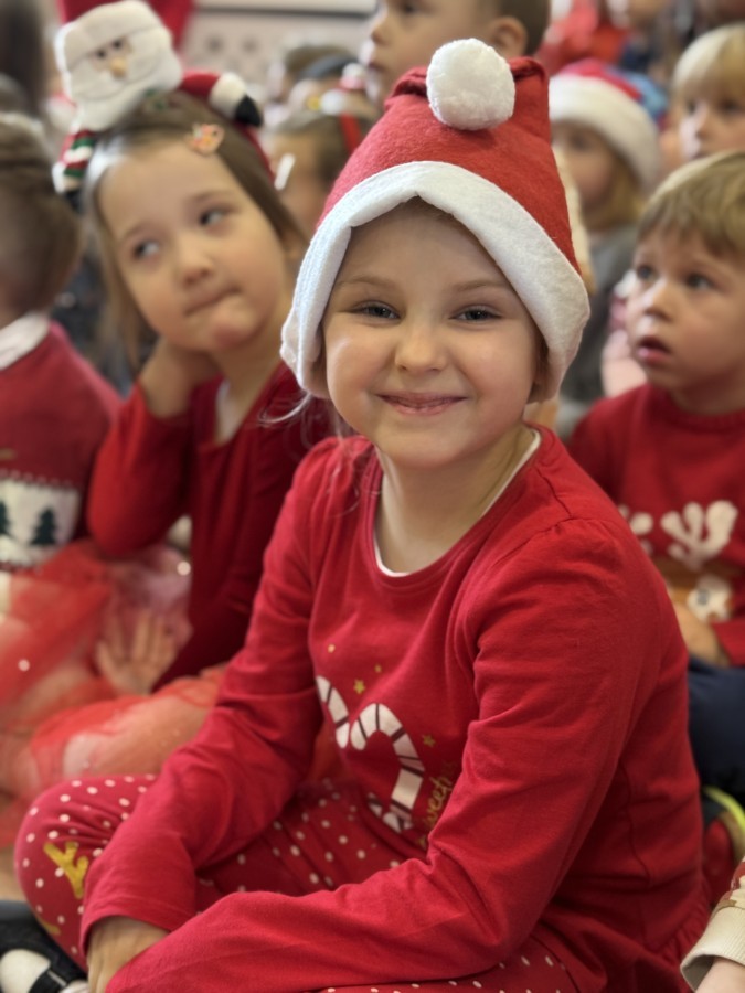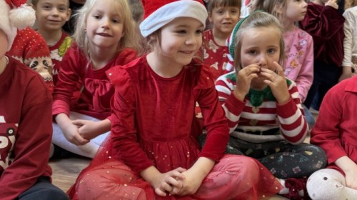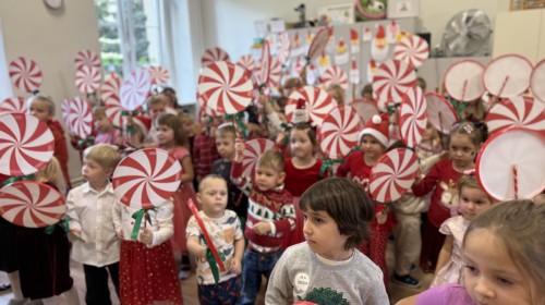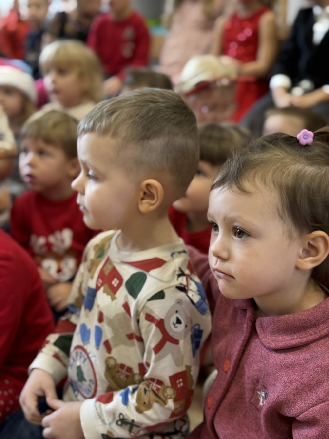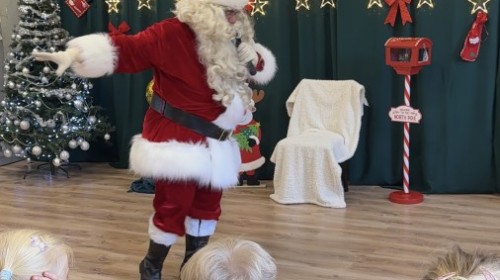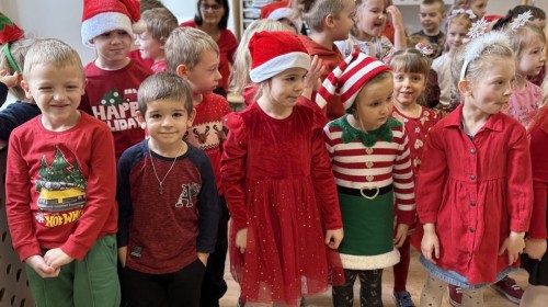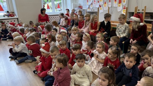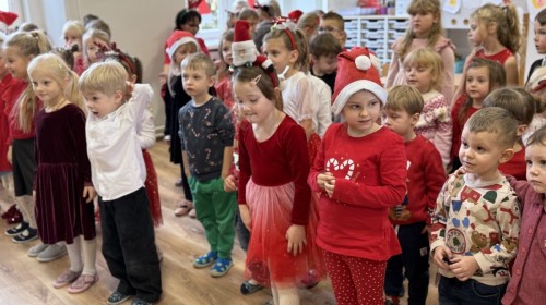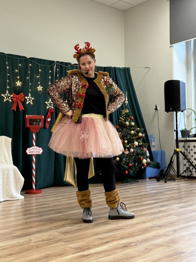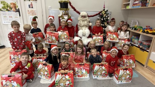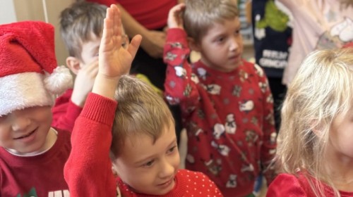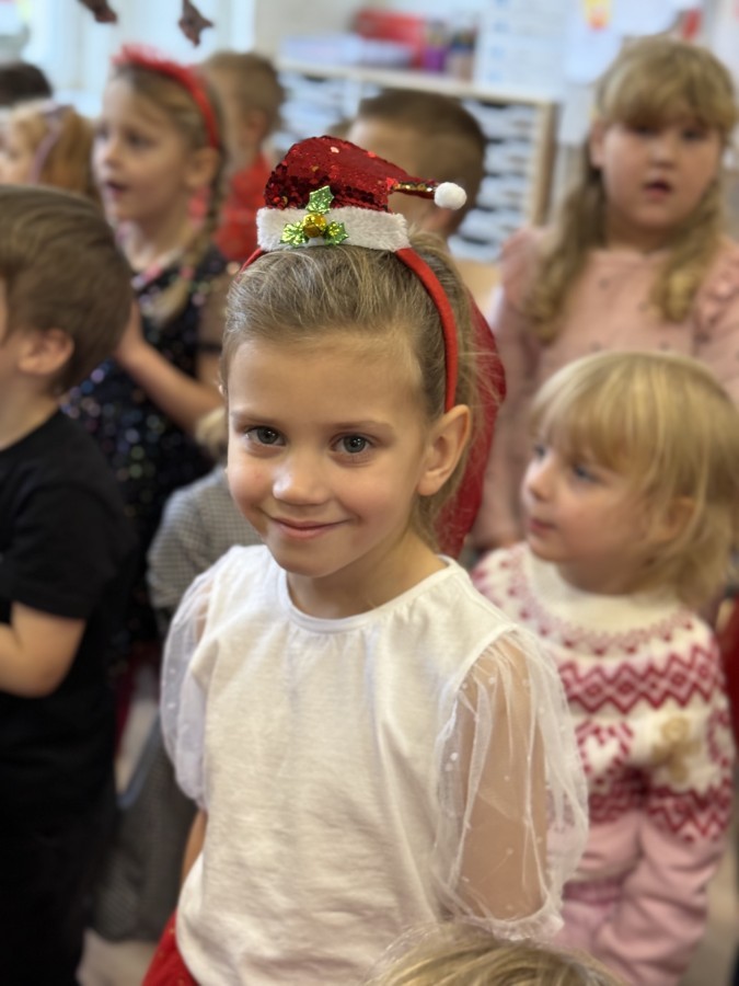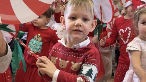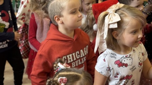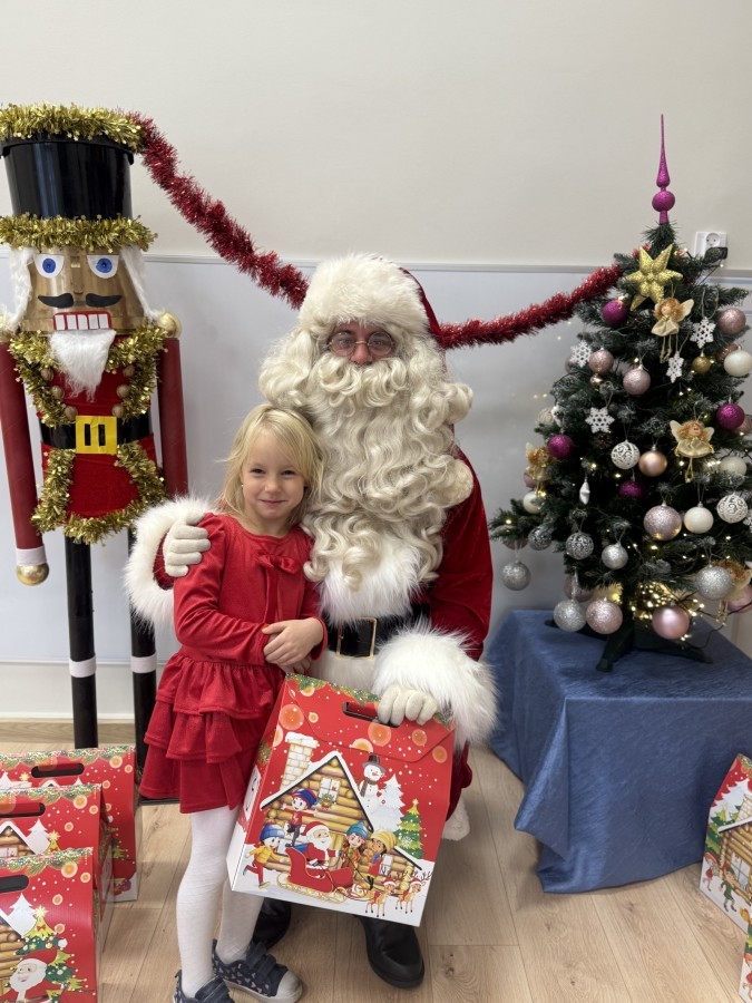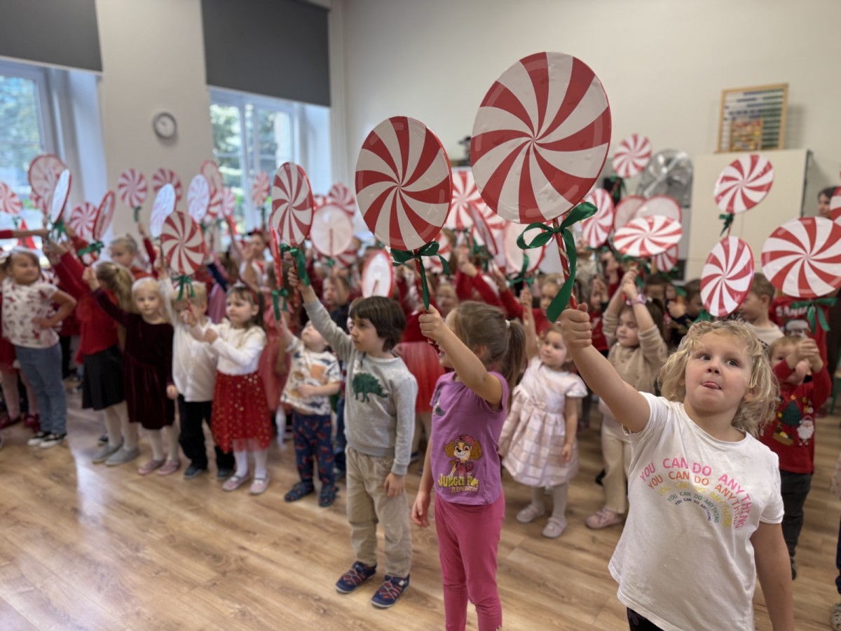 04.12 w naszym przedszkolu wydarzyło się coś naprawdę magicznego! Od samego rana dzieci z niecierpliwością wypatrywały wyjątkowego gościa – i wreszcie przybył Święty Mikołaj! Towarzyszył mu niezwykły przyjaciel – renifer, który okazał się prawdziwą gwiazdą disco! Spotkanie rozpoczęło się od radosnych okrzyków i świątecznych piosenek. Renifer rozkręcił zabawę niczym prawdziwy DJ – były taneczne animacje, wesoła muzyka i zabawy, w których dzieci brały udział z ogromnym entuzjazmem. Wspólnie tańczyliśmy, klaskaliśmy w rytm muzyki i uczyliśmy się śmiesznych układów tanecznych, które wywoływały salwy śmiechu. Nie zabrakło również mikołajkowych upominków.