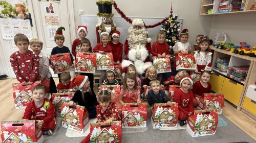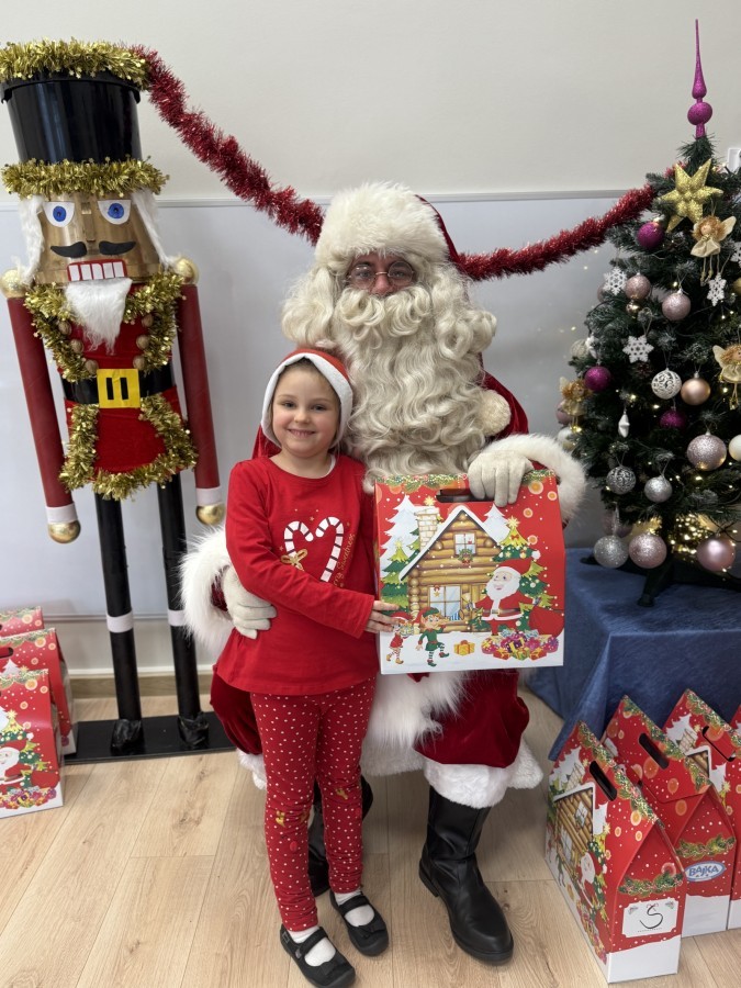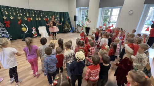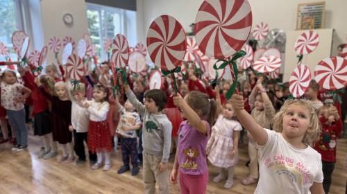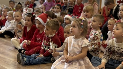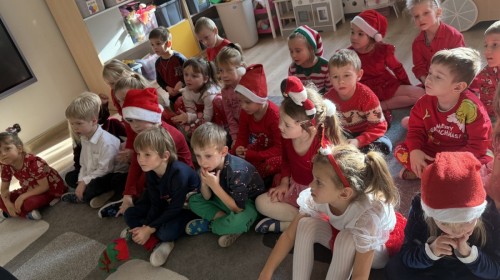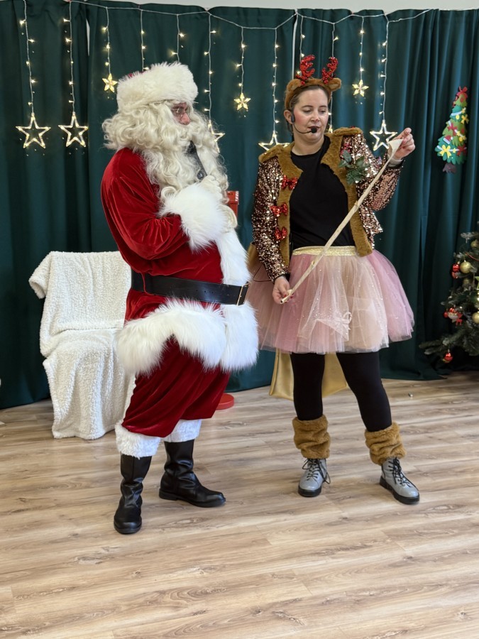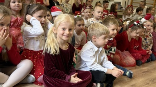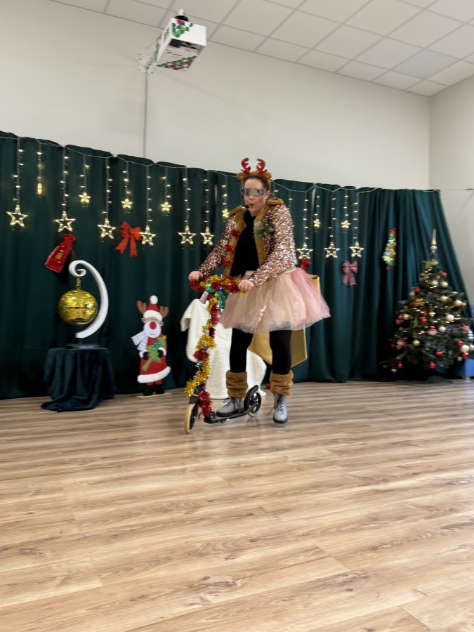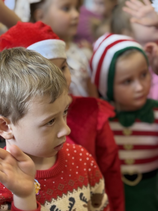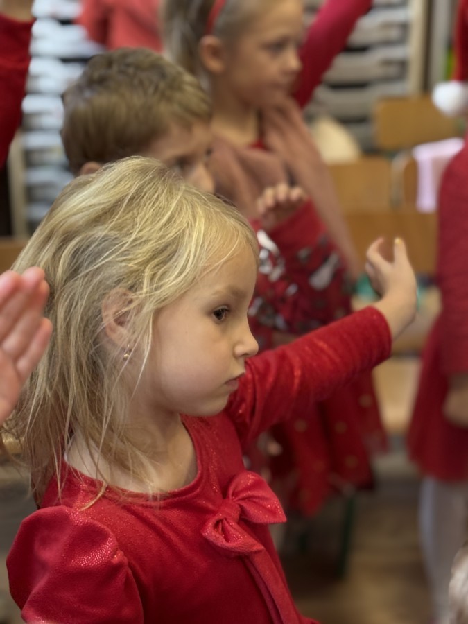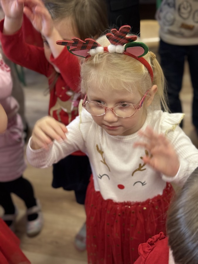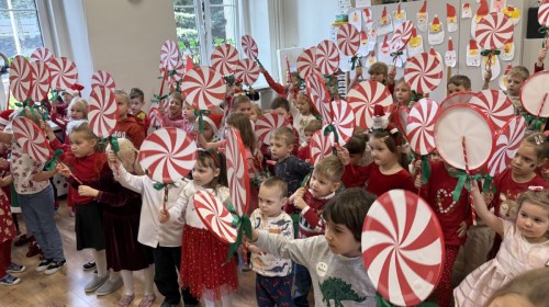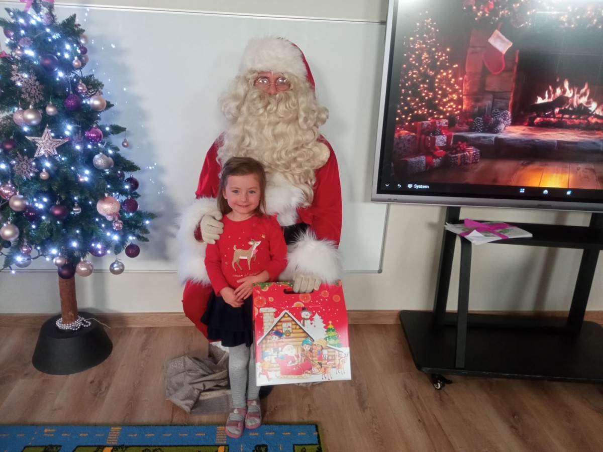 04.12 w naszym przedszkolu wydarzyło się coś naprawdę magicznego! Od samego rana dzieci z niecierpliwością wypatrywały wyjątkowego gościa – i wreszcie przybył Święty Mikołaj! Towarzyszył mu niezwykły przyjaciel – renifer, który okazał się prawdziwą gwiazdą disco! Spotkanie rozpoczęło się od radosnych okrzyków i świątecznych piosenek. Renifer rozkręcił zabawę niczym prawdziwy DJ – były taneczne animacje, wesoła muzyka i zabawy, w których dzieci brały udział z ogromnym entuzjazmem. Wspólnie tańczyliśmy, klaskaliśmy w rytm muzyki i uczyliśmy się śmiesznych układów tanecznych, które wywoływały salwy śmiechu. Nie zabrakło również mikołajkowych upominków.