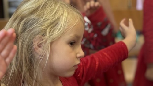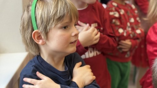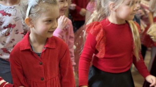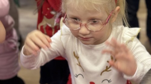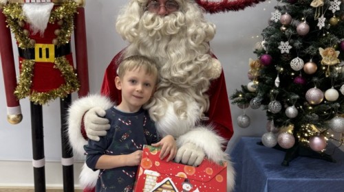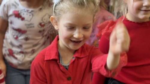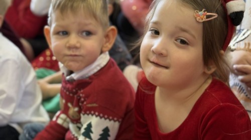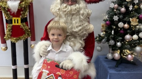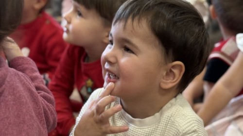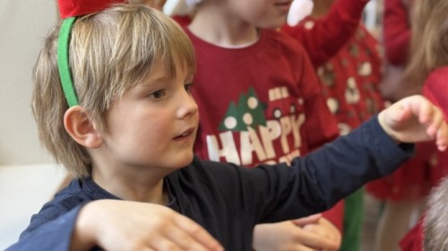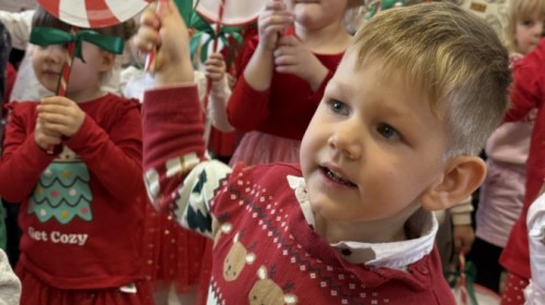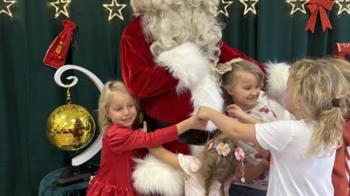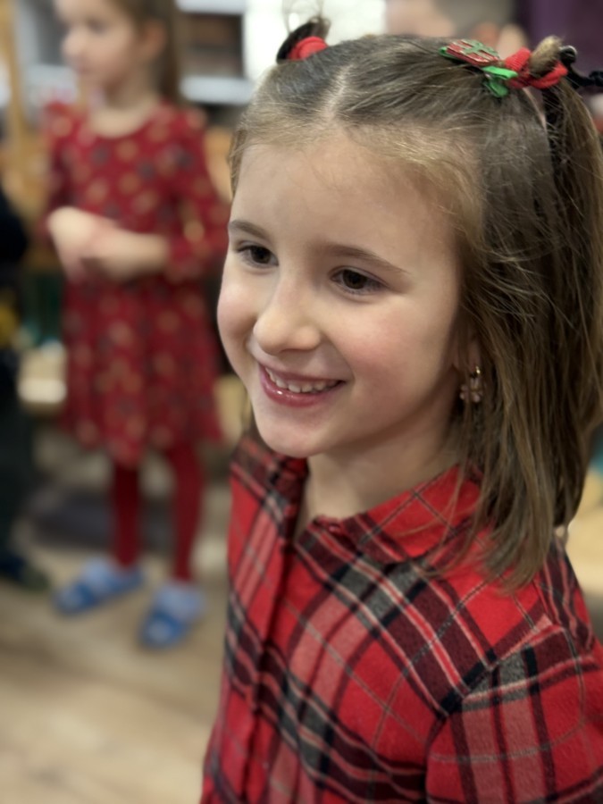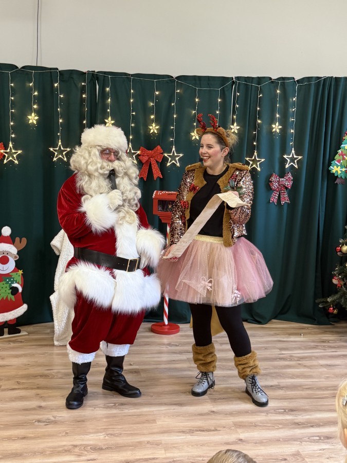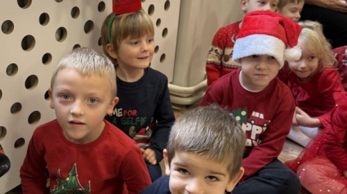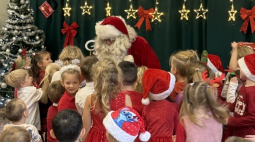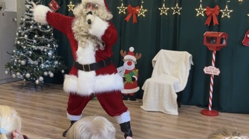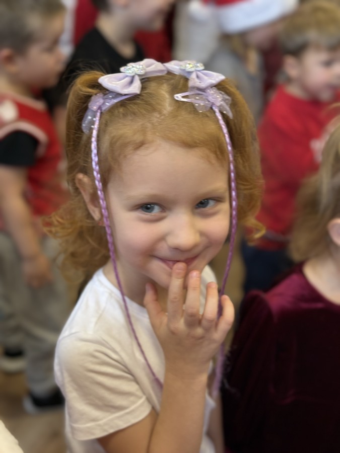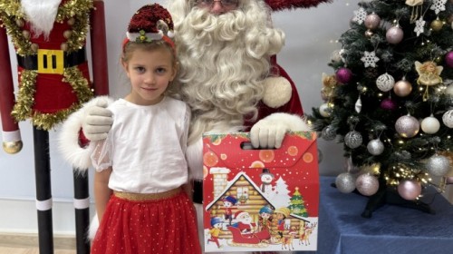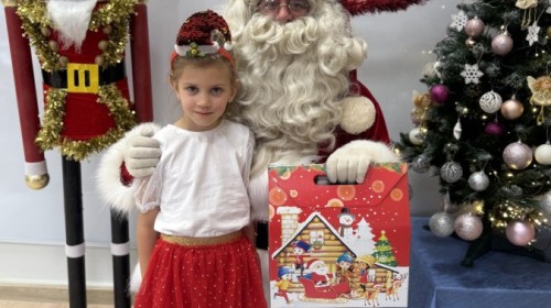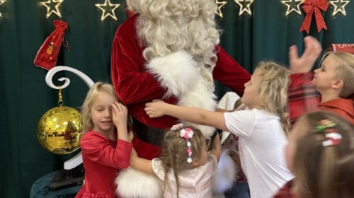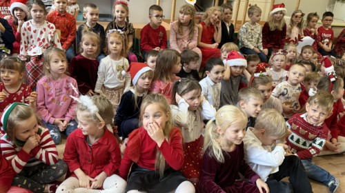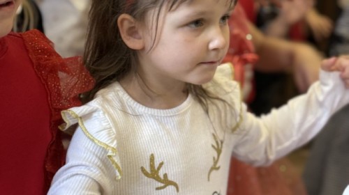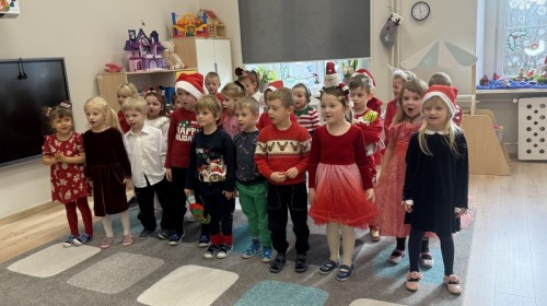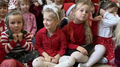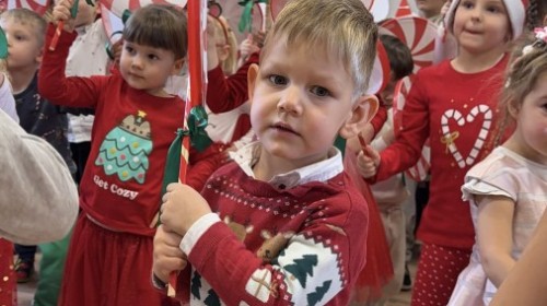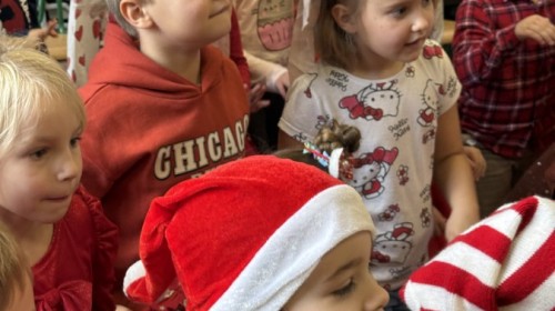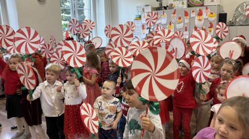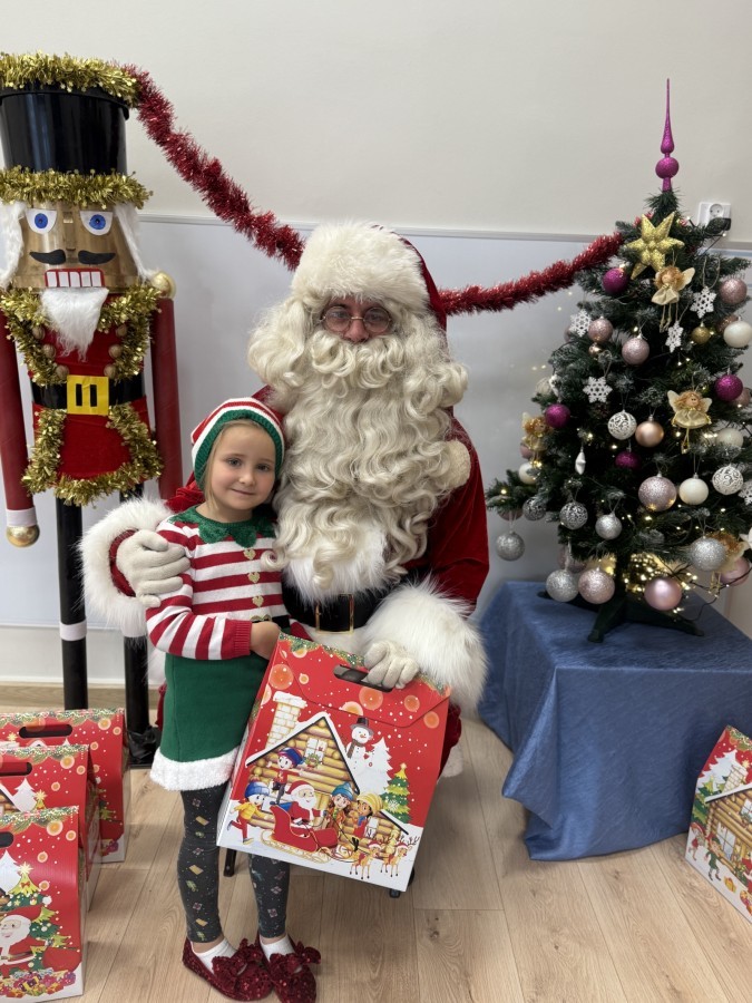 04.12 w naszym przedszkolu wydarzyło się coś naprawdę magicznego! Od samego rana dzieci z niecierpliwością wypatrywały wyjątkowego gościa – i wreszcie przybył Święty Mikołaj! Towarzyszył mu niezwykły przyjaciel – renifer, który okazał się prawdziwą gwiazdą disco! Spotkanie rozpoczęło się od radosnych okrzyków i świątecznych piosenek. Renifer rozkręcił zabawę niczym prawdziwy DJ – były taneczne animacje, wesoła muzyka i zabawy, w których dzieci brały udział z ogromnym entuzjazmem. Wspólnie tańczyliśmy, klaskaliśmy w rytm muzyki i uczyliśmy się śmiesznych układów tanecznych, które wywoływały salwy śmiechu. Nie zabrakło również mikołajkowych upominków.