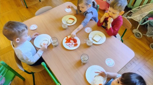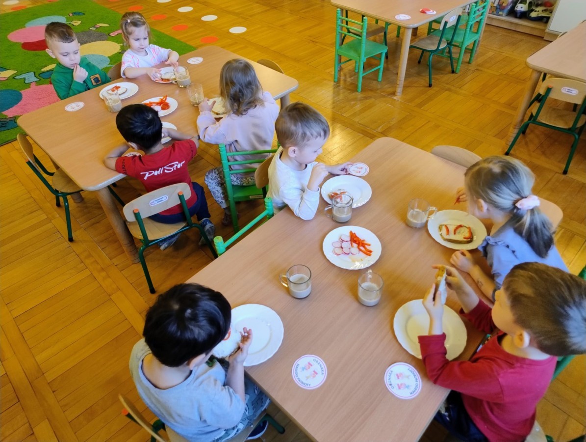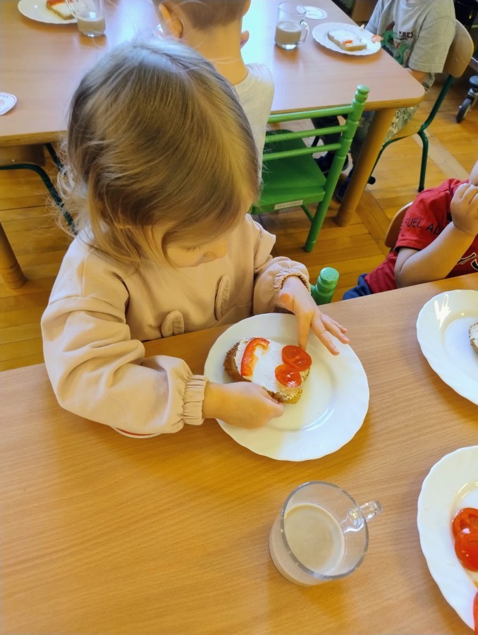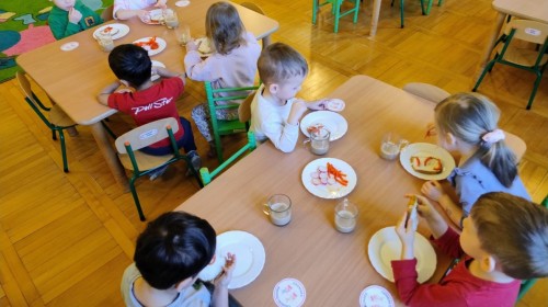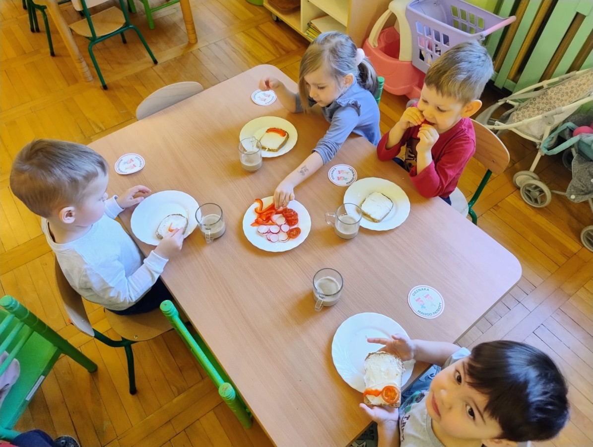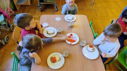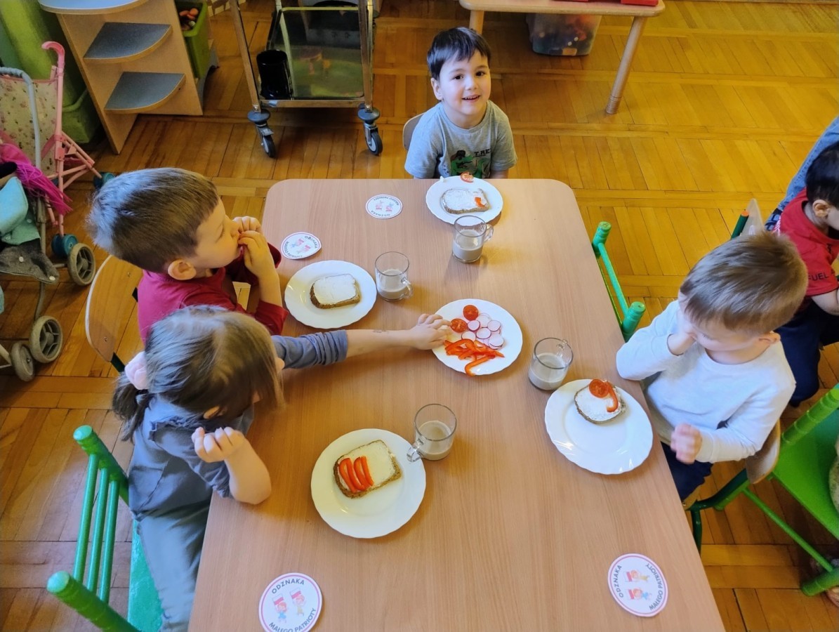 Już od najmłodszej grupy dbamy o wychowanie patriotyczne naszych przedszkolaków. Maluszki poznały na zajęciach symbole narodowe Polski, a następnie zrobiły patriotyczne biało-czerwone kanapeczki, które zjadły na śniadanie.