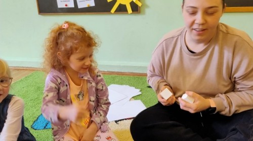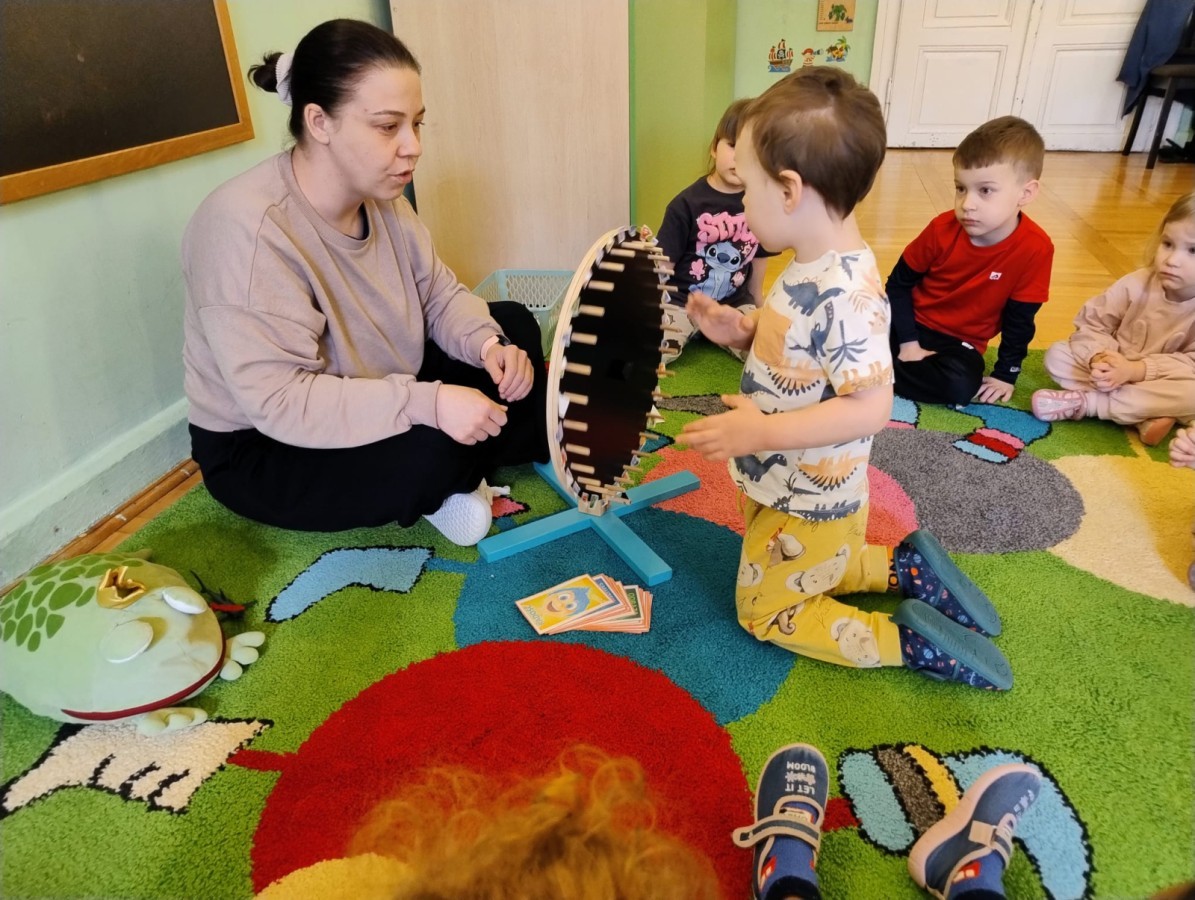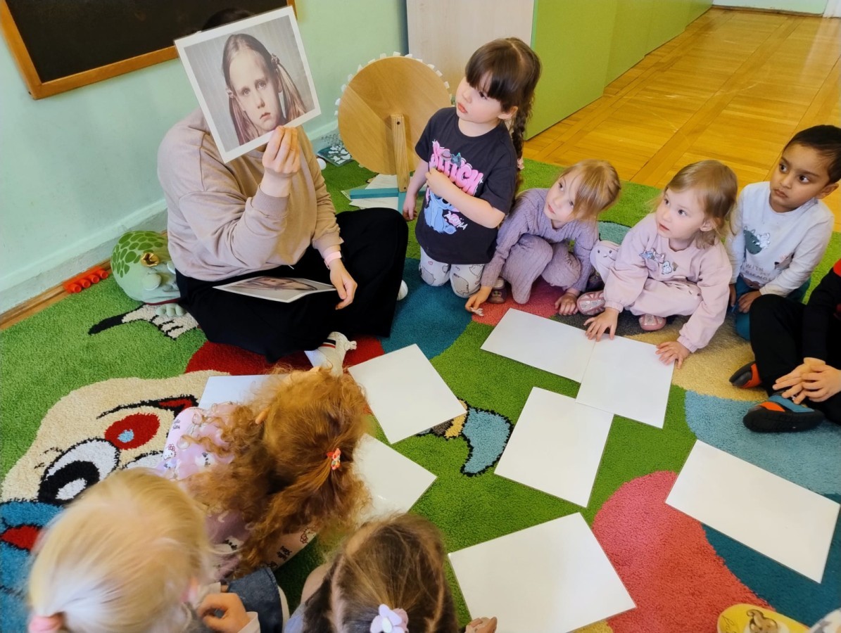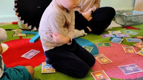 Podczas spotkań dużo uwagi poświęcamy rozmowom o emocjach – dzieci uczą się je rozpoznawać, nazywać oraz wyrażać w bezpieczny i akceptowany sposób. Poprzez zabawę, scenki sytuacyjne i wspólne rozmowy budujemy empatię oraz uczymy współpracy w grupie.