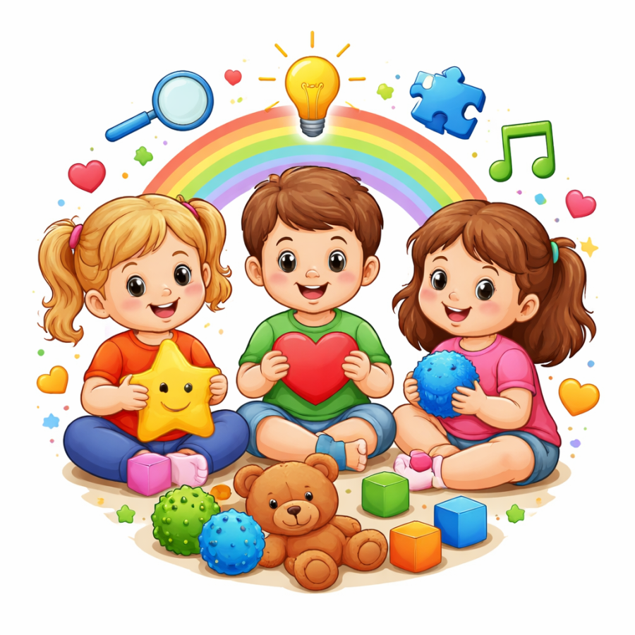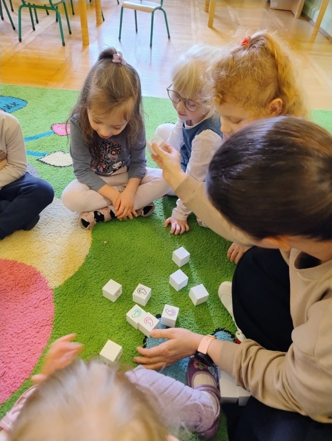 Zajęcia obejmują również różnorodne ćwiczenia wspierające percepcję wzrokową i słuchową, które pomagają dzieciom lepiej koncentrować się, zapamiętywać i przetwarzać informacje. Wprowadzamy działania wielozmysłowe – angażujące dotyk, ruch, wzrok i słuch – dzięki którym nauka staje się naturalna, ciekawa i dostosowana do potrzeb każdego dziecka.