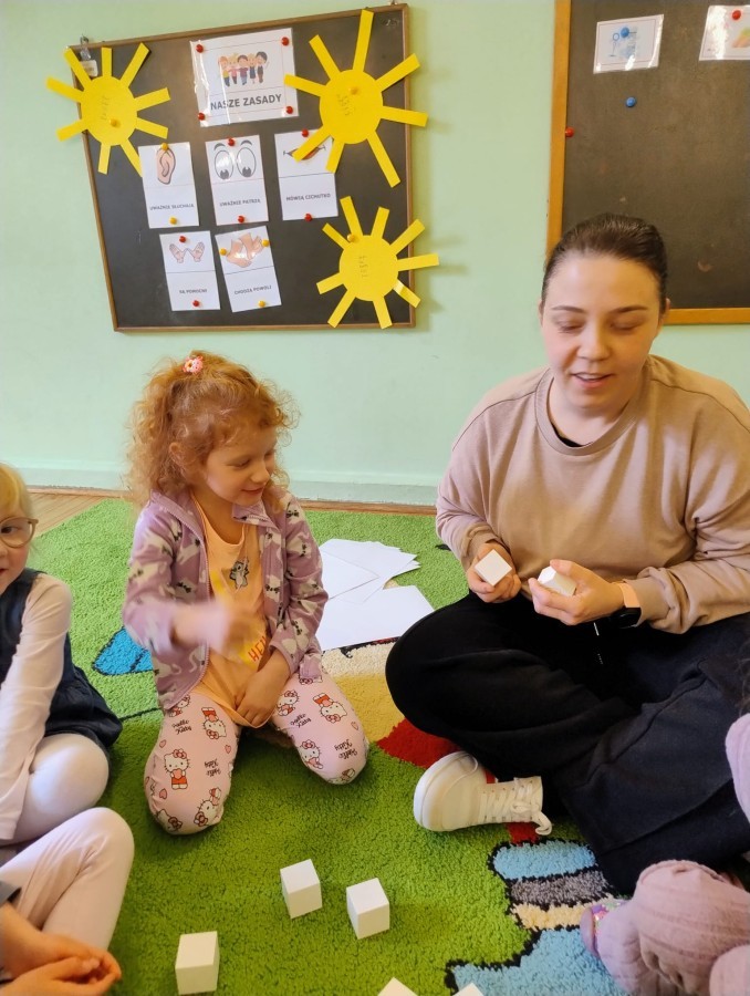 W naszym przedszkolu odbywają się zajęcia z elementami Treningu Umiejętności Społecznych prowadzone przez pedagoga specjalnego. To wyjątkowy czas, w którym dzieci uczą się lepiej rozumieć siebie i innych, a także rozwijają umiejętności potrzebne w codziennych relacjach.